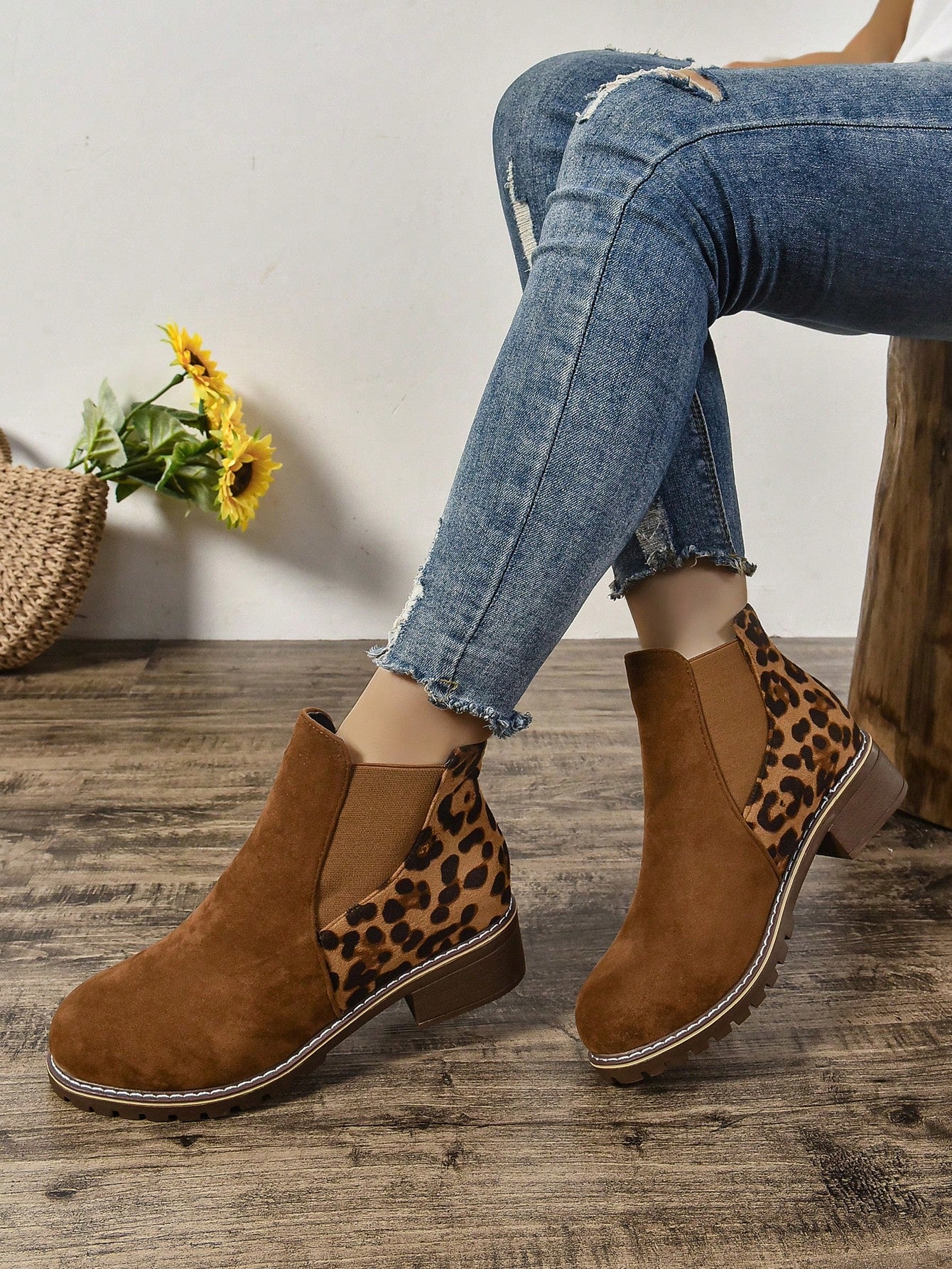 Chic Women's Round Toe Chelsea Ankle Boots with Chunky Low Heels
