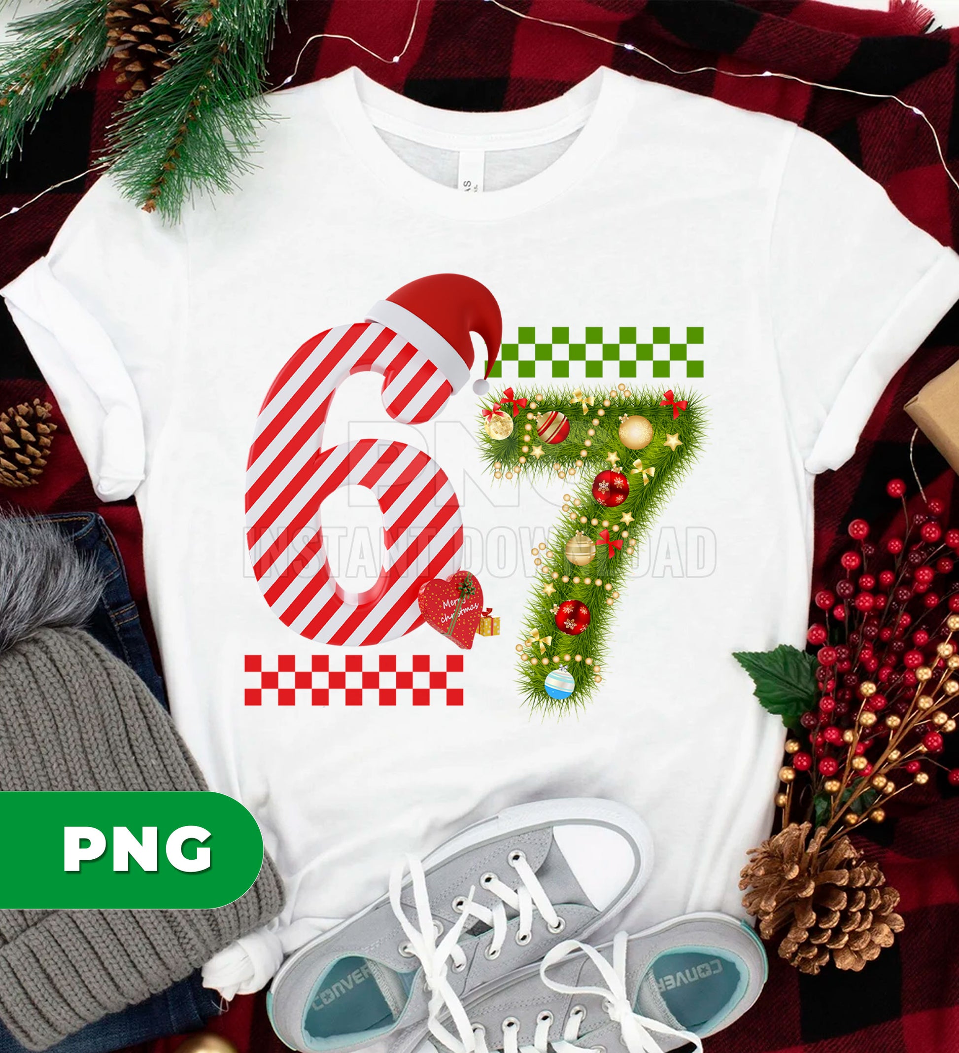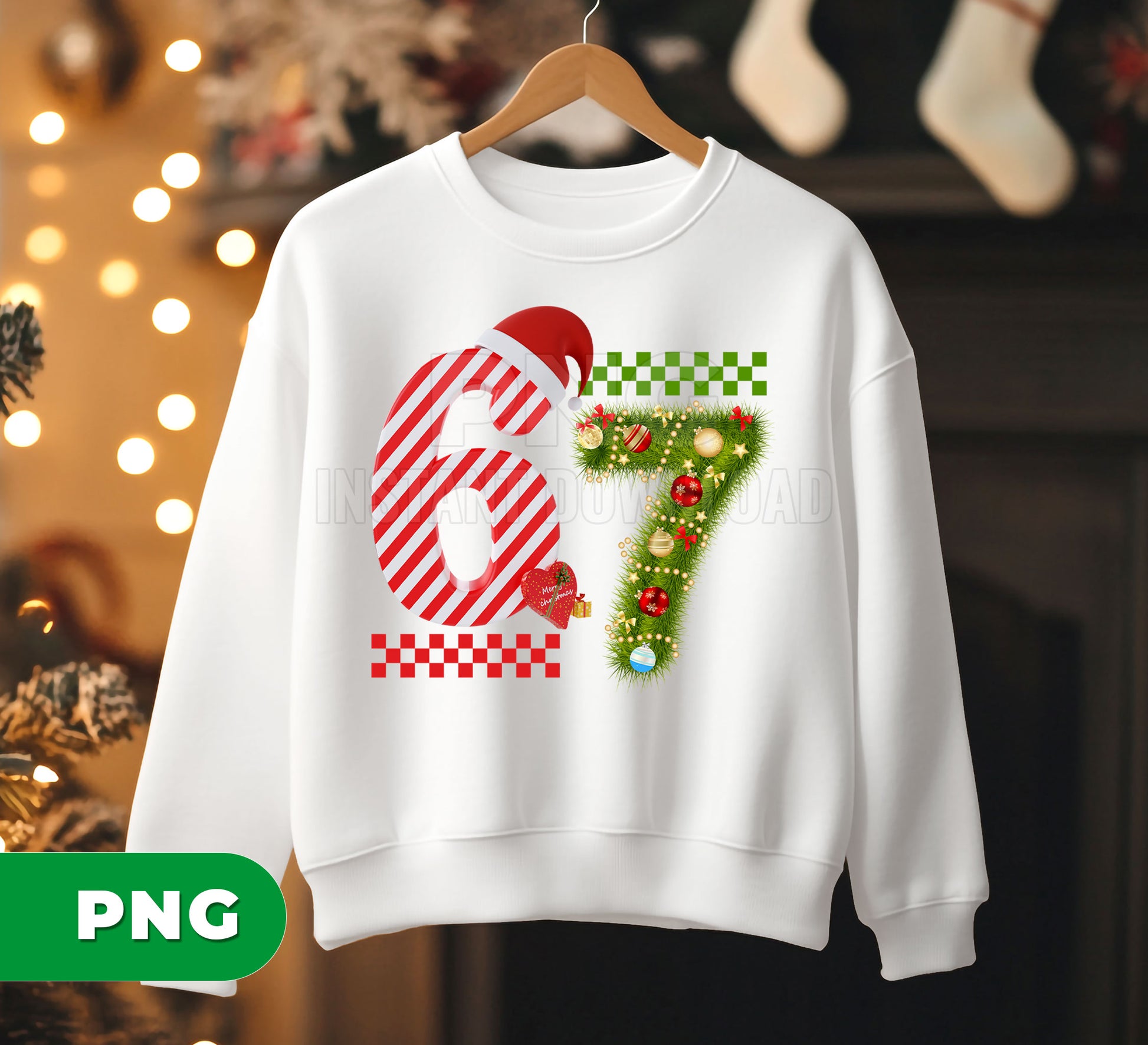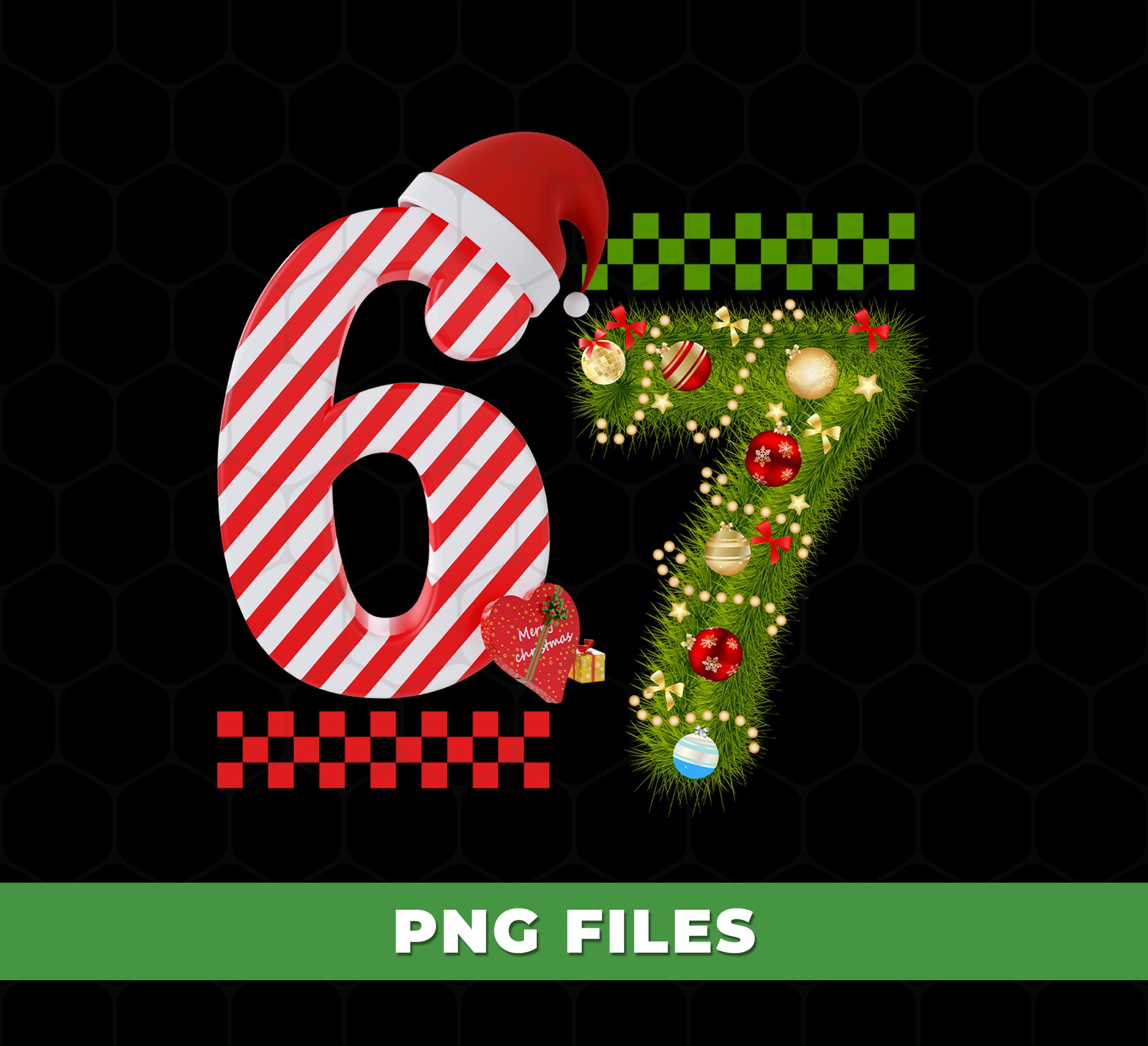 Christmas 67 Number PNG, Candy Cane 6 Tree Ornament 7 Christmas Birthday PNG, Xmas Age Number Sublimation, Holiday Festive Digital Download