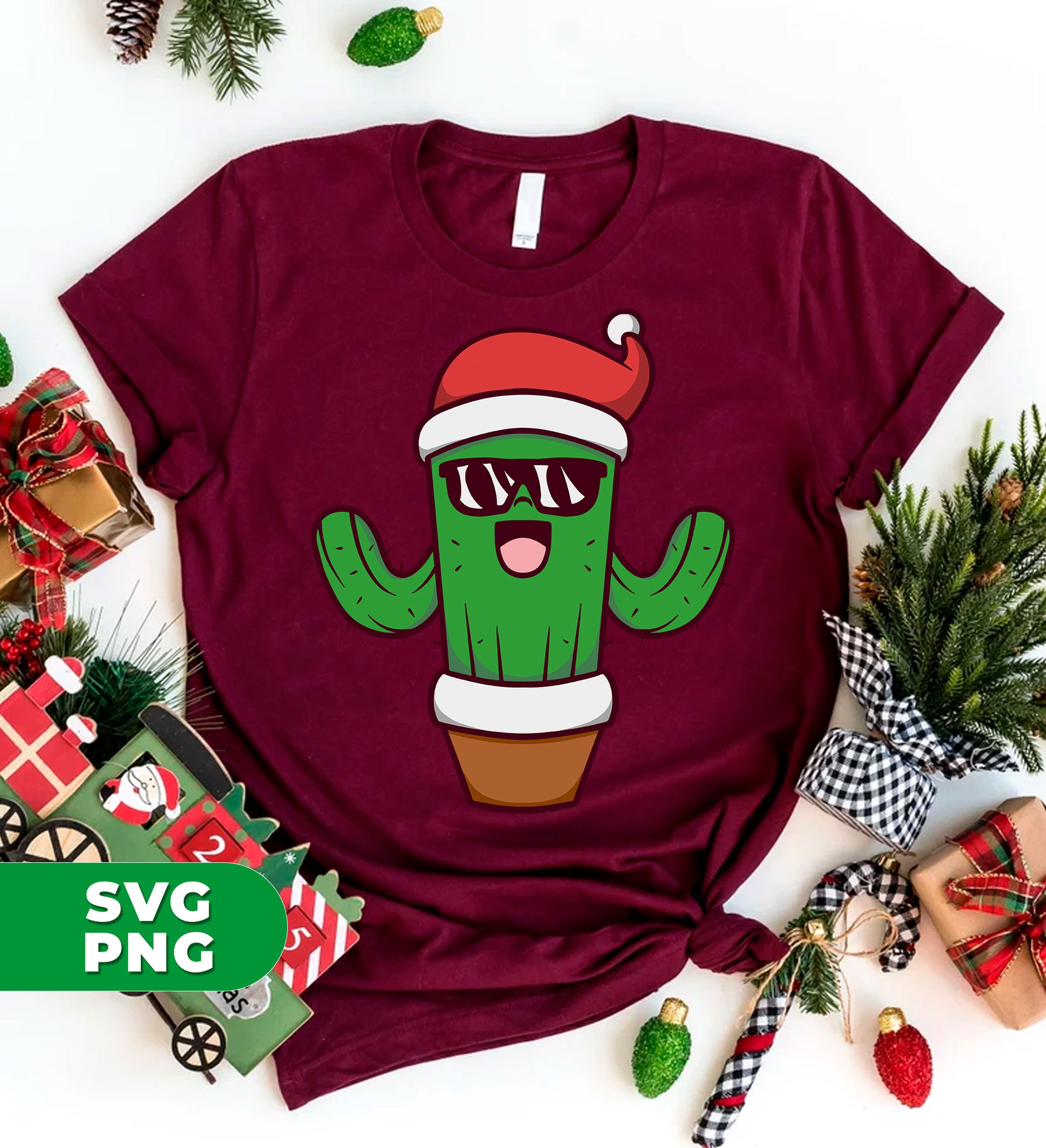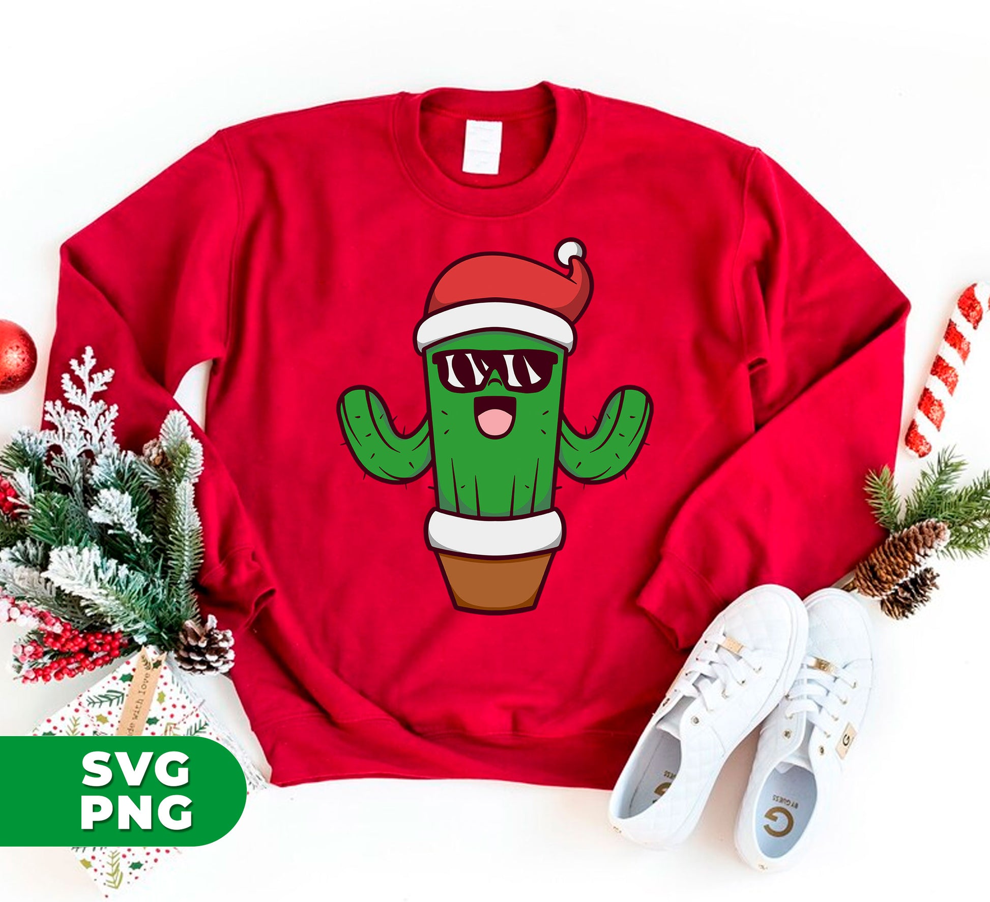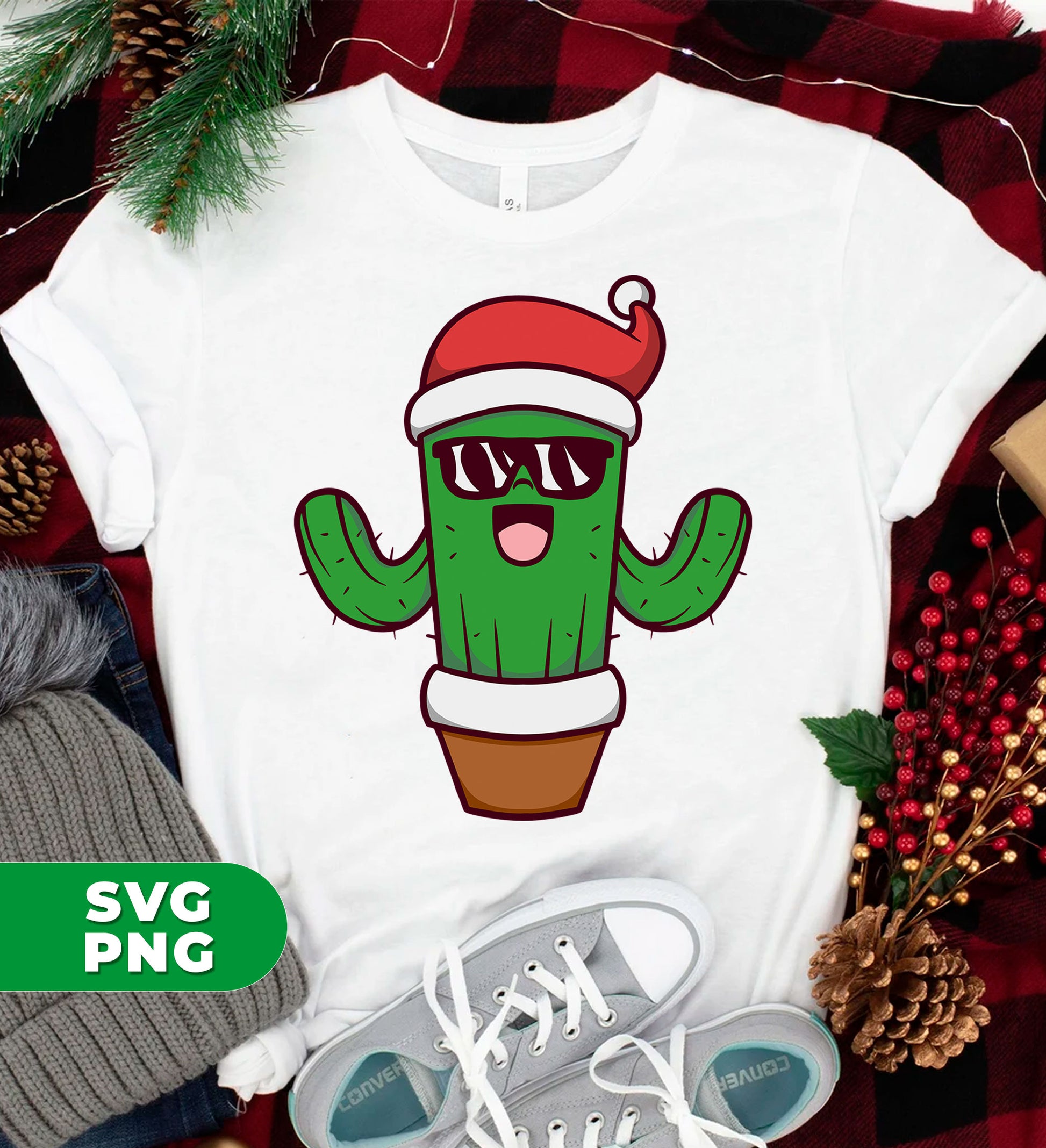This holiday season, add some festive flair to your home with our Christmas Cactus in a flowerpot. These cacti even come equipped with sunglasses, making them the perfect addition to any sunny spot. With our digital files and PNG sublimation, you can easily create your own cactus-themed decor.