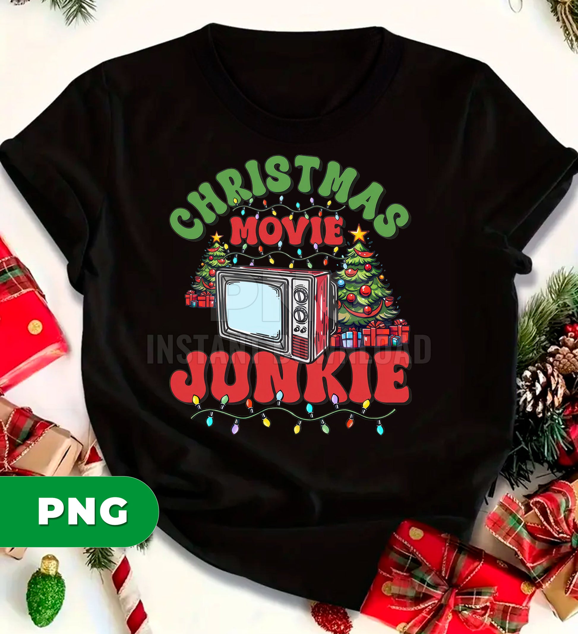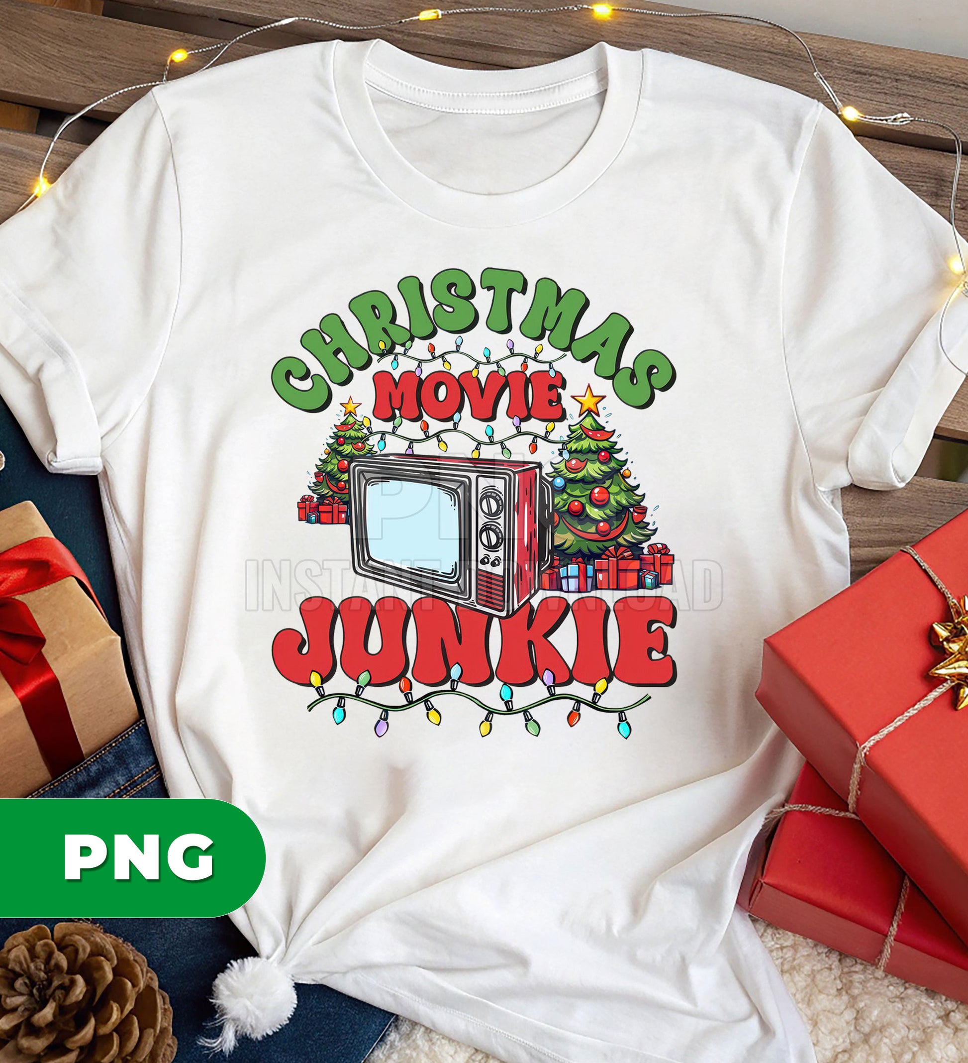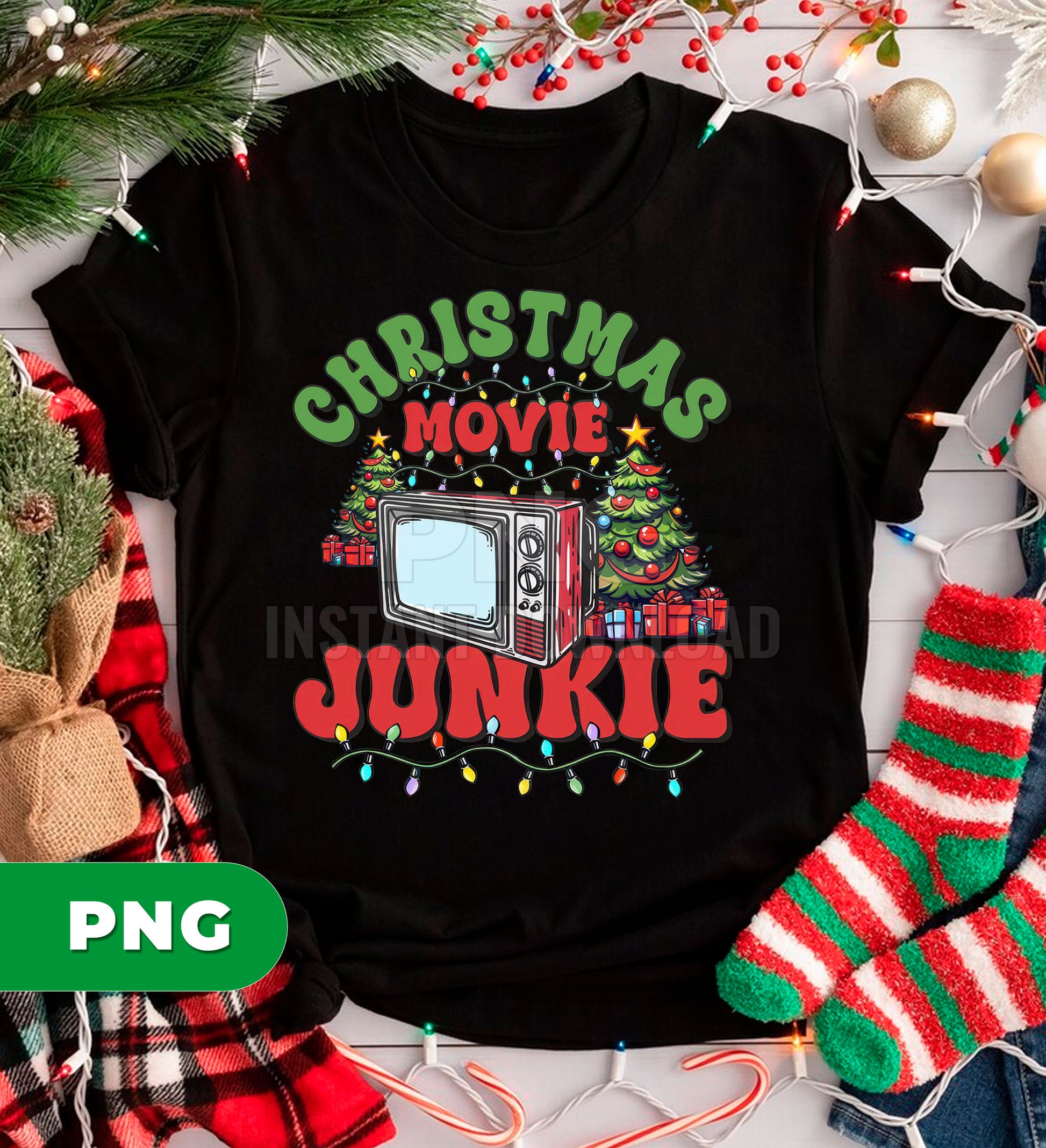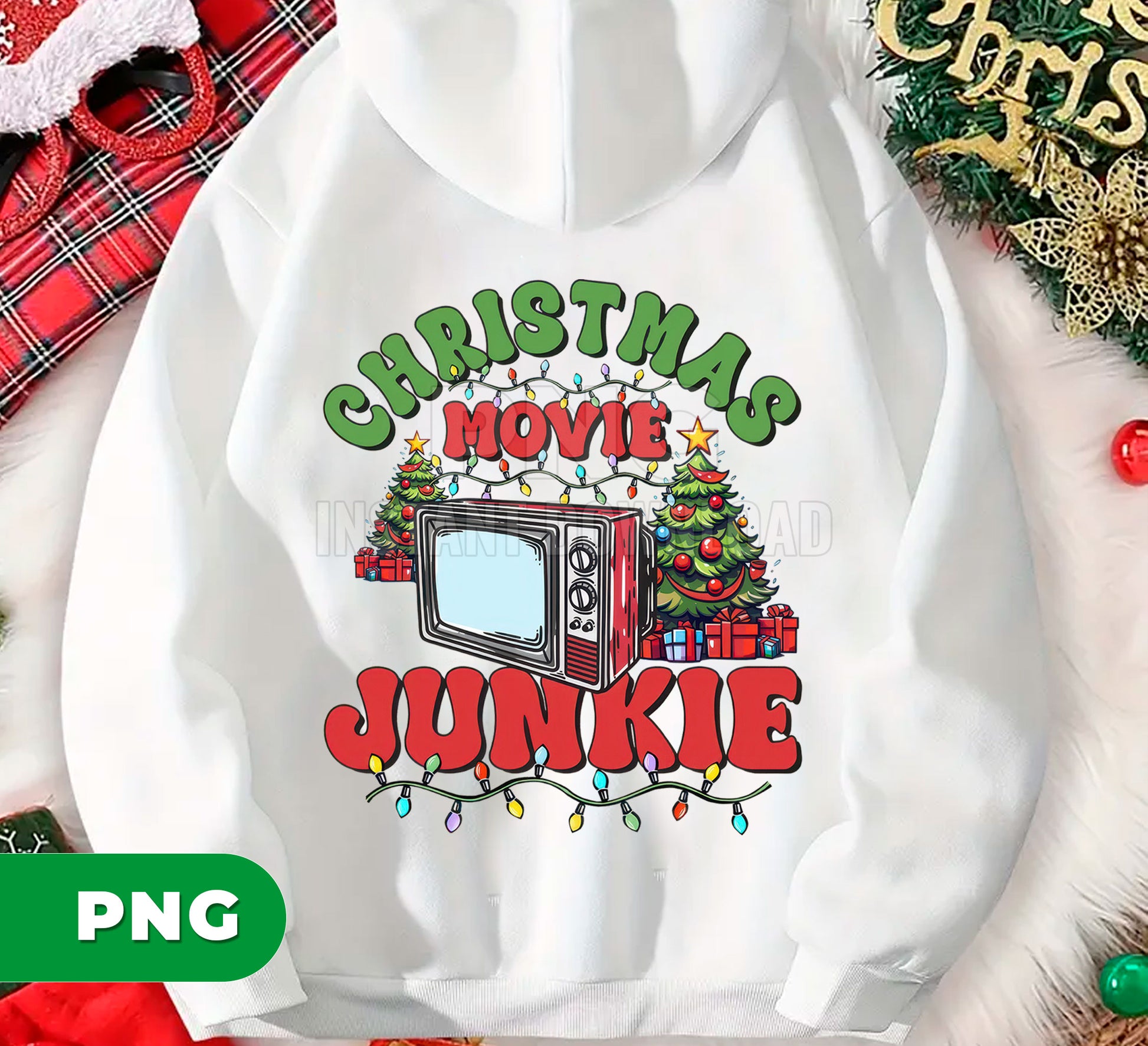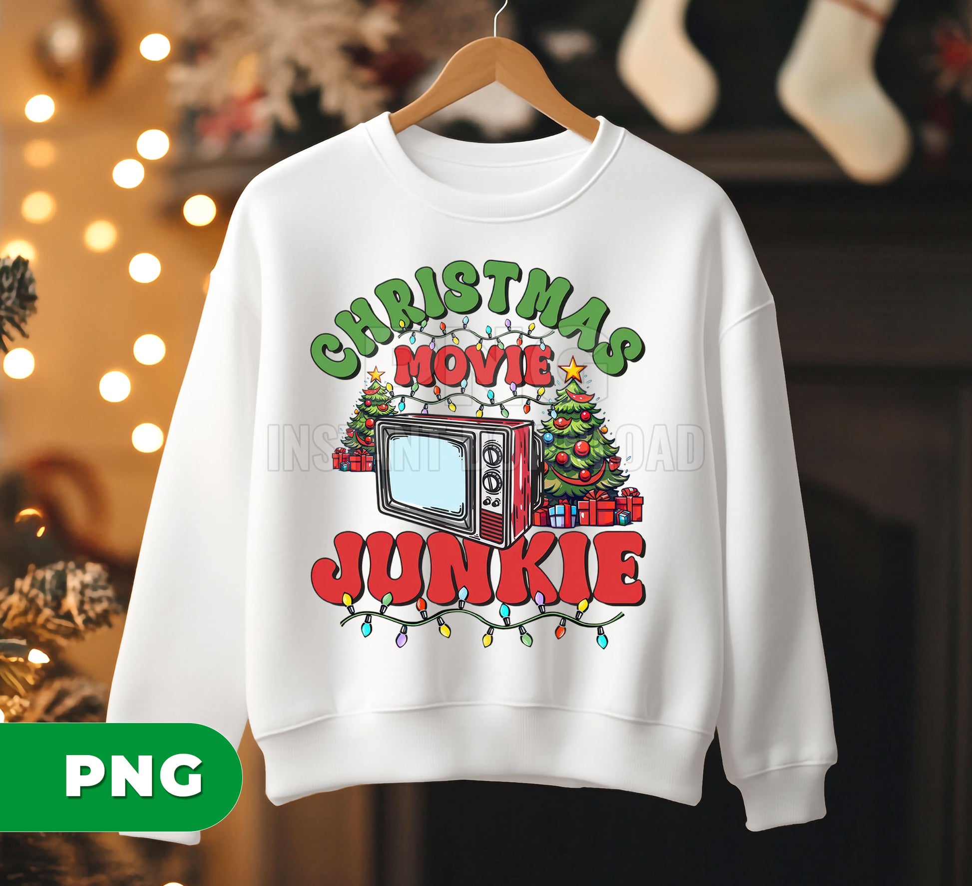 Christmas Movie Junkie, Retro TV Christmas Lights Sublimation, Holiday Movie Lover Clipart, Funny Xmas Watching Movies Digital Download