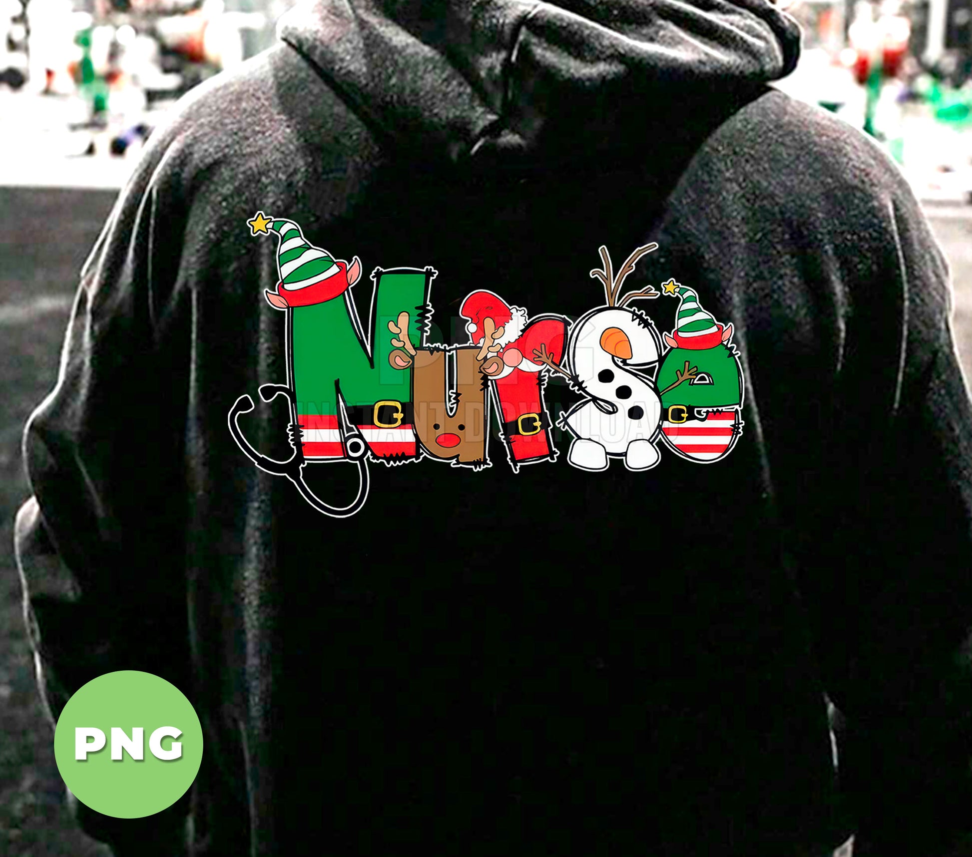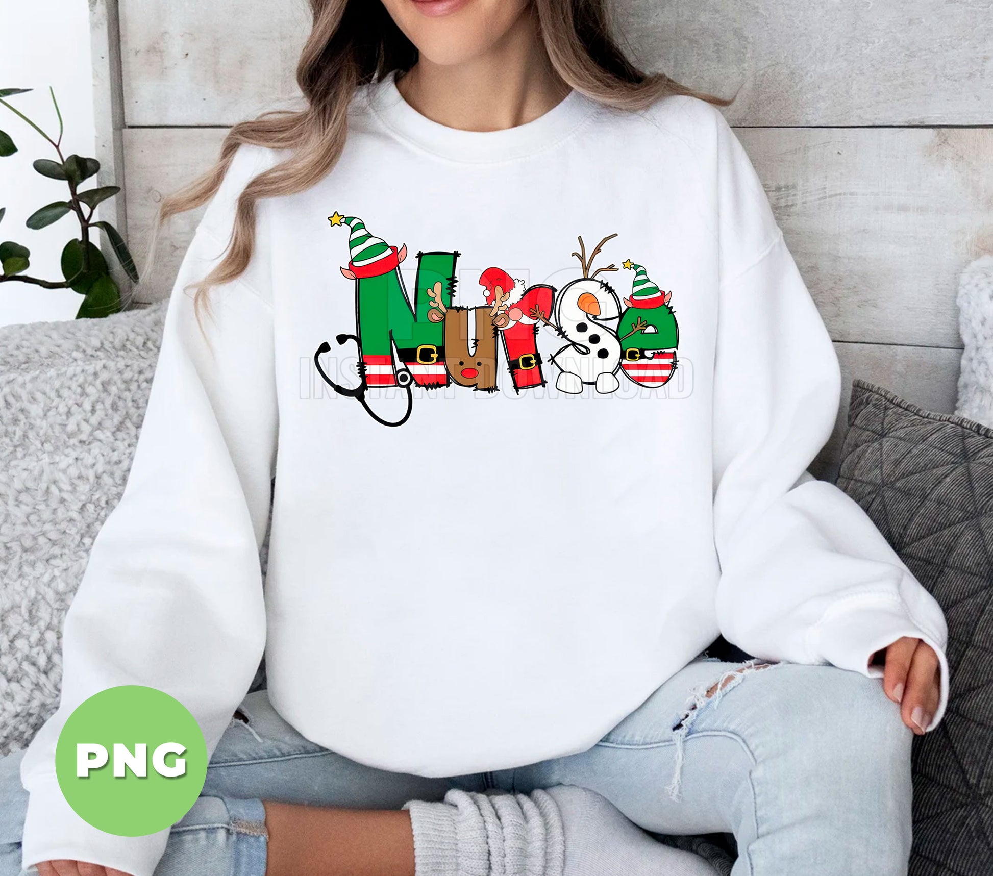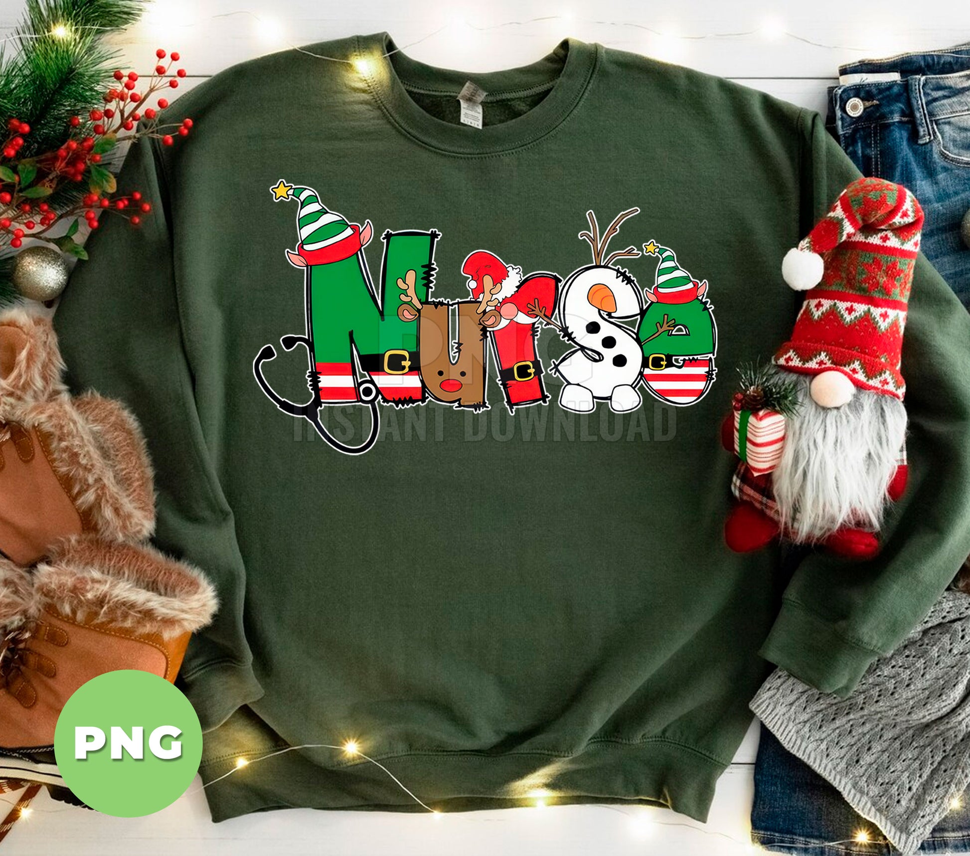Christmas Nurse PNG, Cute Nurse Sublimation Design, Holiday Medical Clipart, Santa Reindeer Snowman Letters, Funny Xmas Digital Download