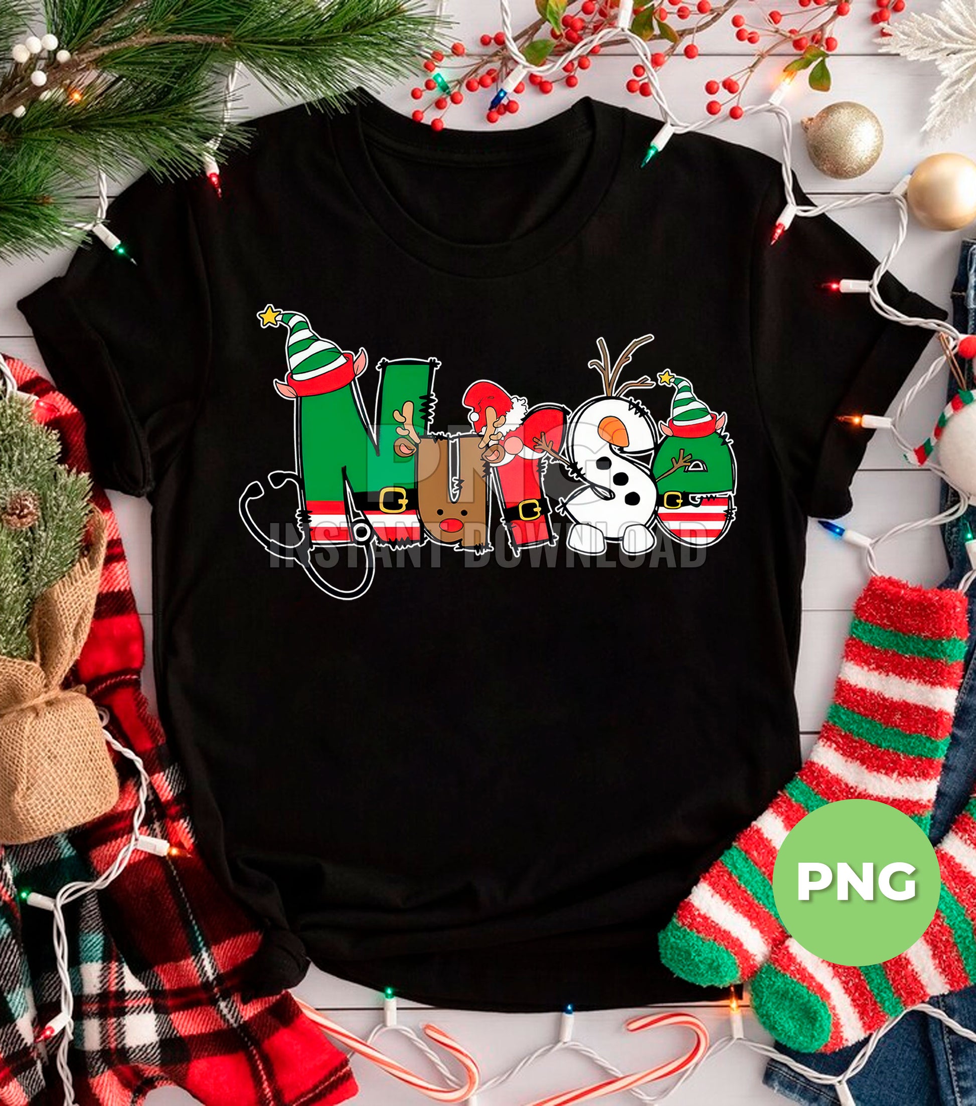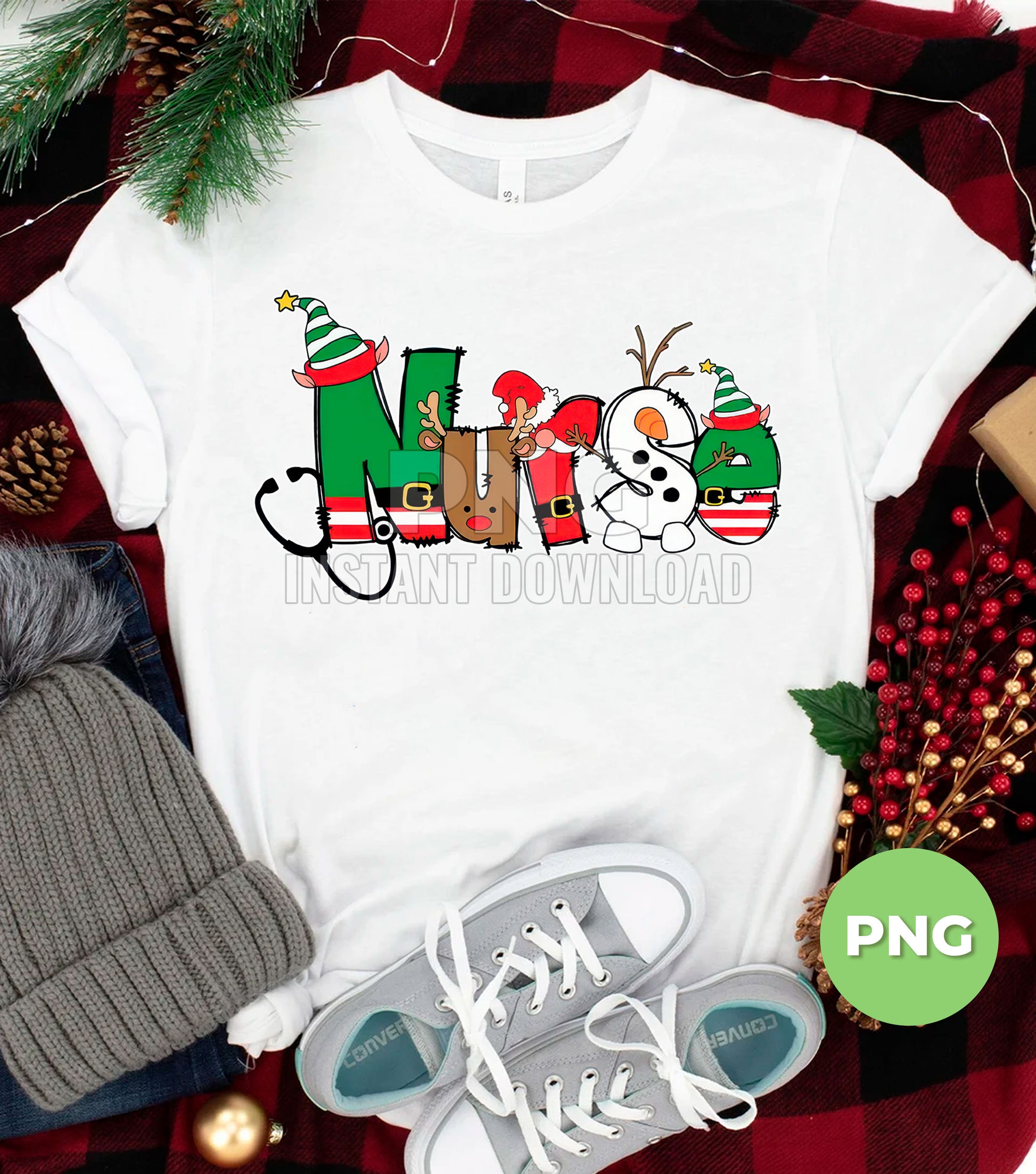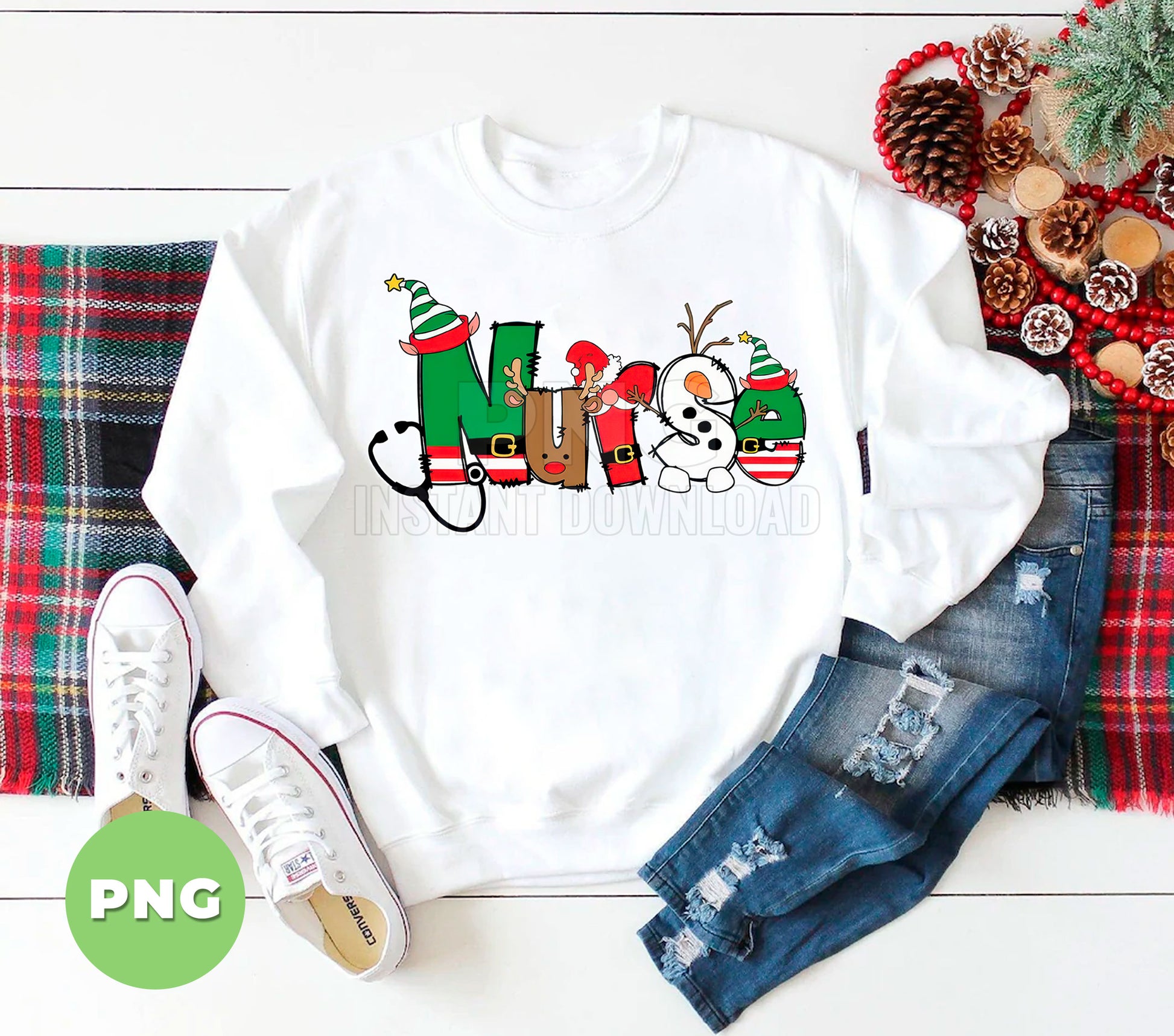 Christmas Nurse PNG, Cute Nurse Sublimation Design, Holiday Medical Clipart, Santa Reindeer Snowman Letters, Funny Xmas Digital Download