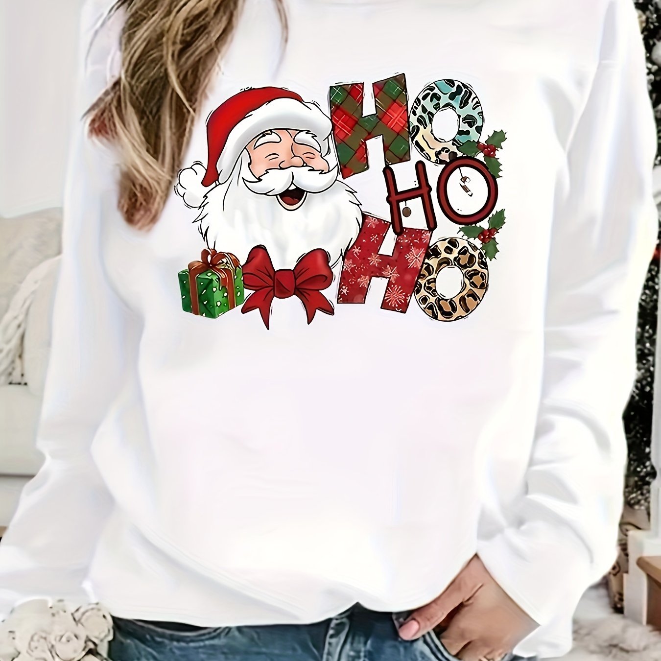 Christmas Santa and Ho Ho Ho Letter Print Sweatshirt: Cozy and Stylish Women's Crew Neck Sweater for Fall/Winter