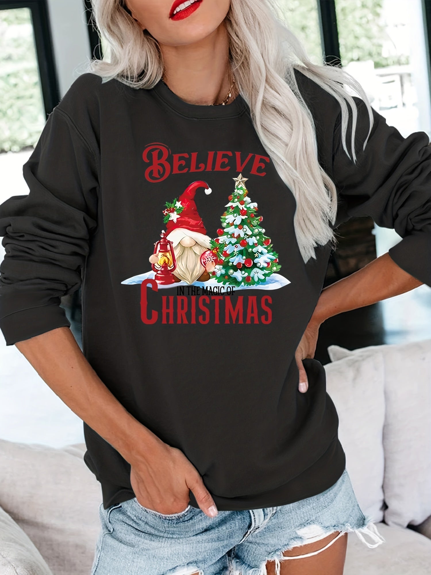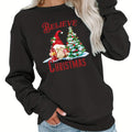 Christmas Santa & Tree Pattern Pullover Sweatshirt, Casual Long Sleeve Crew Neck Sweatshirt For Fall & Winter, Women's Clothing
