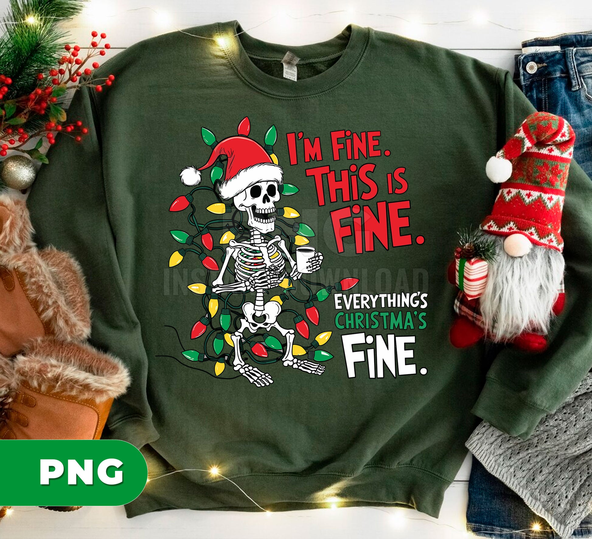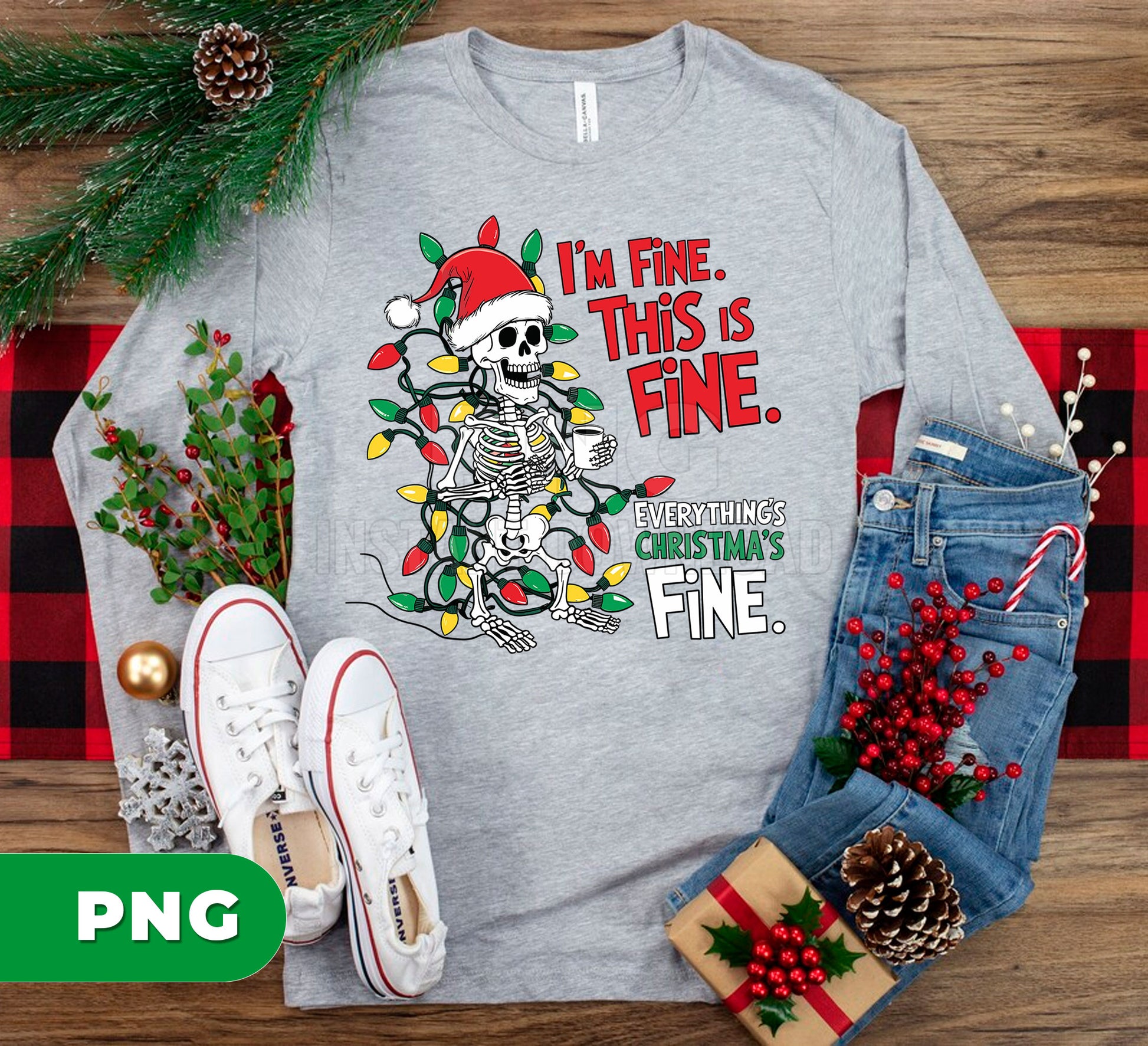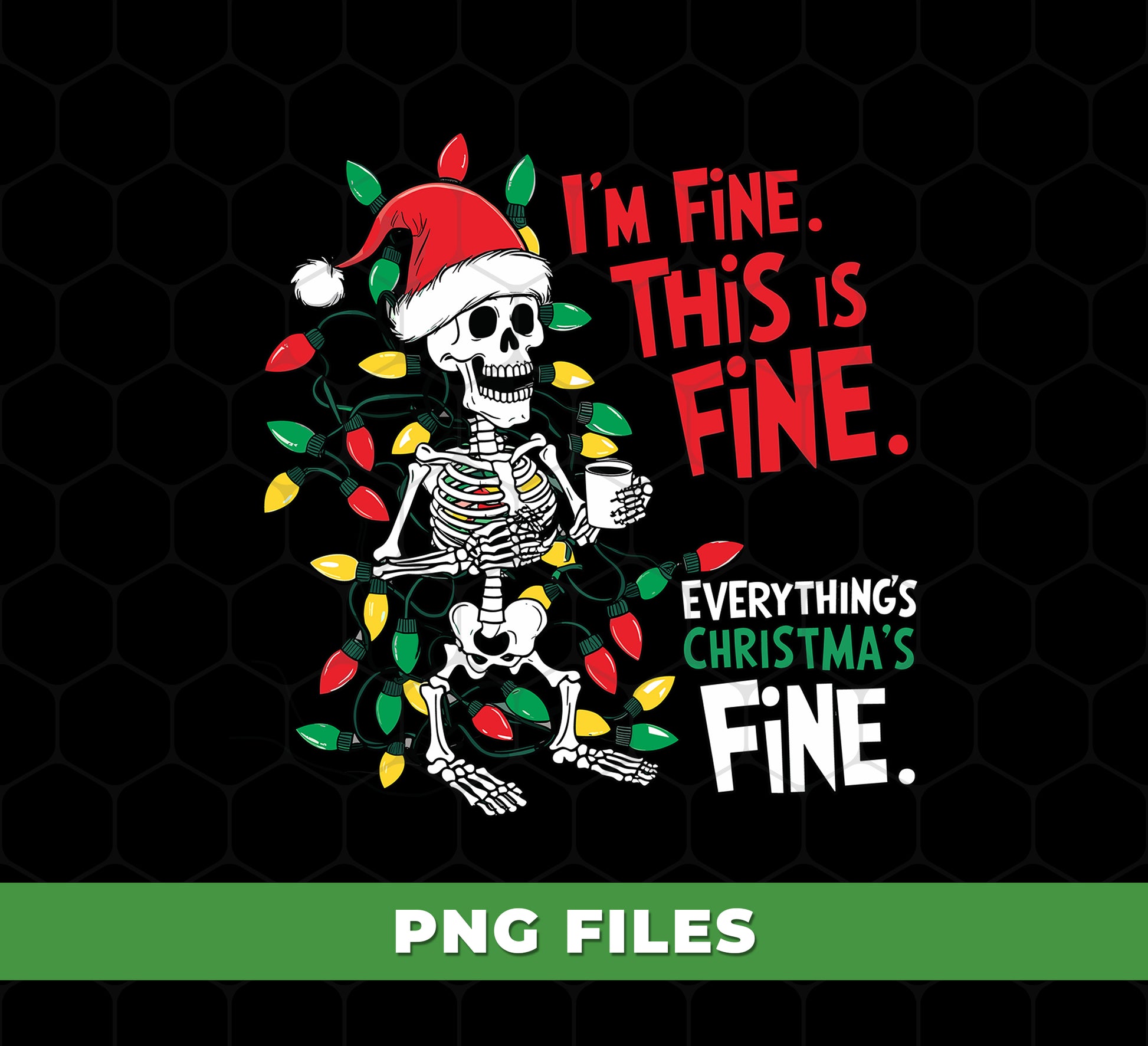 Christmas Skeleton PNG, Funny Skeleton Christmas Lights Clipart, I'm Fine This Is Fine PNG, Santa Hat Skull, Holiday Humor, Merry Christmas