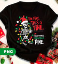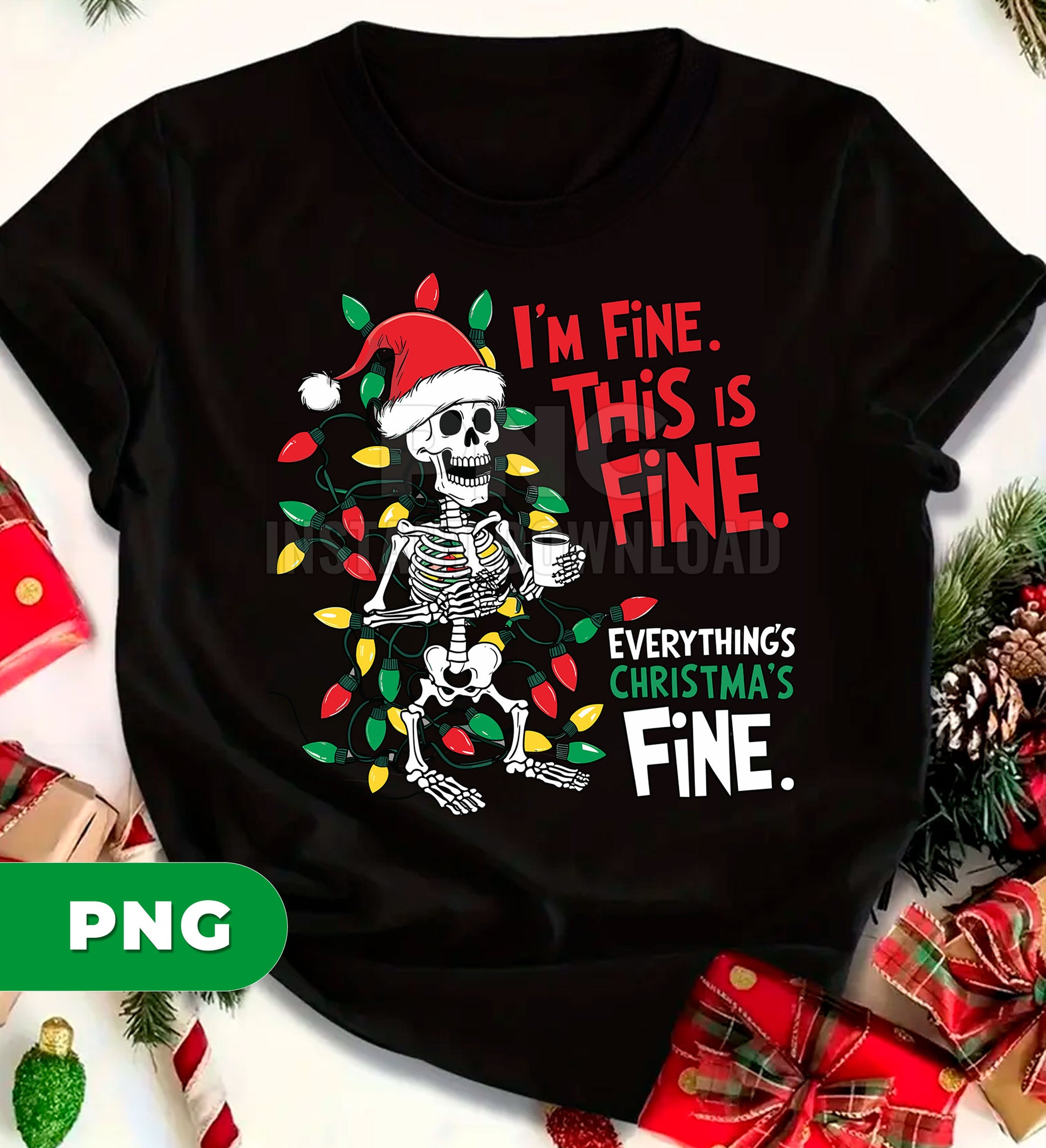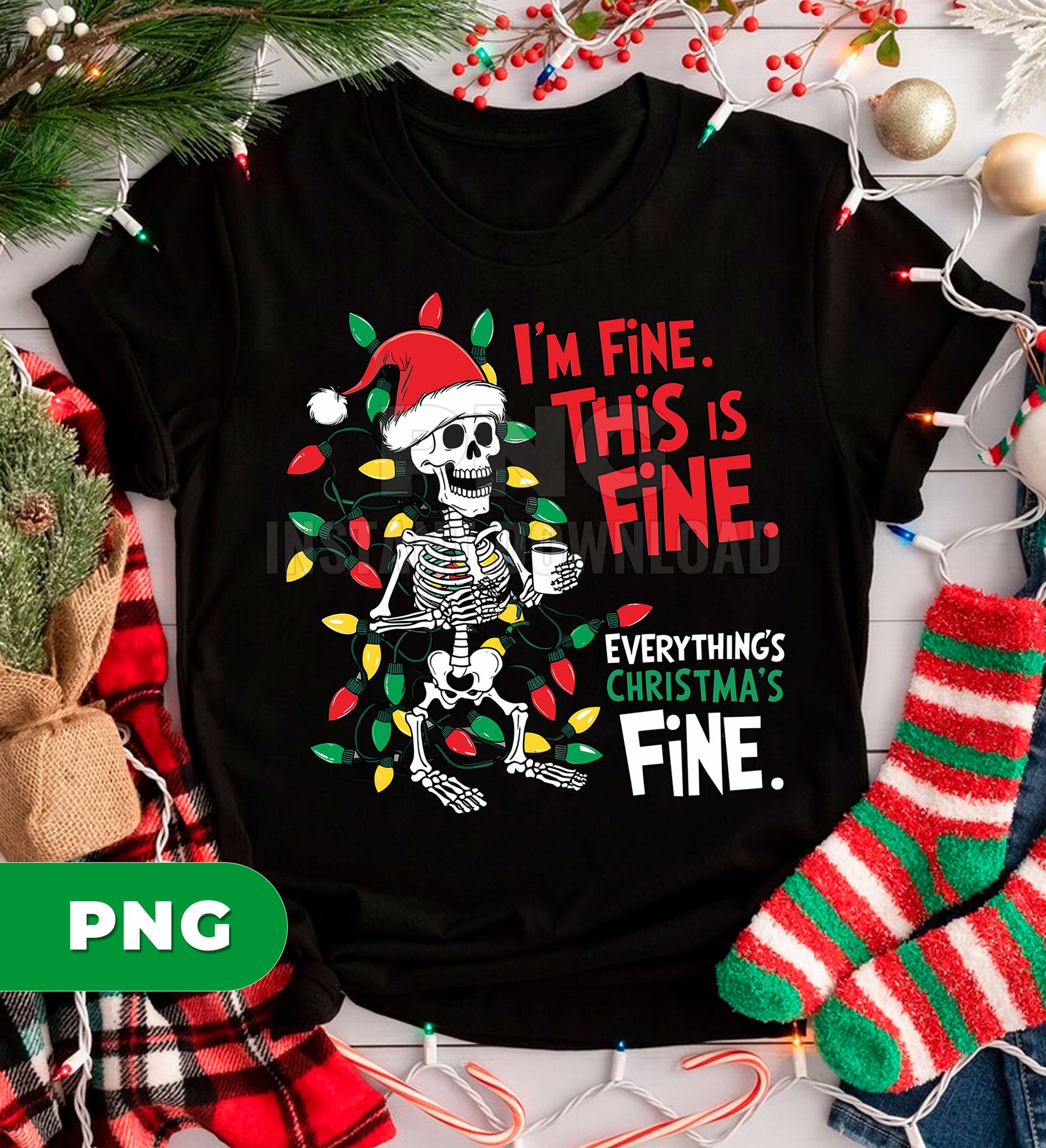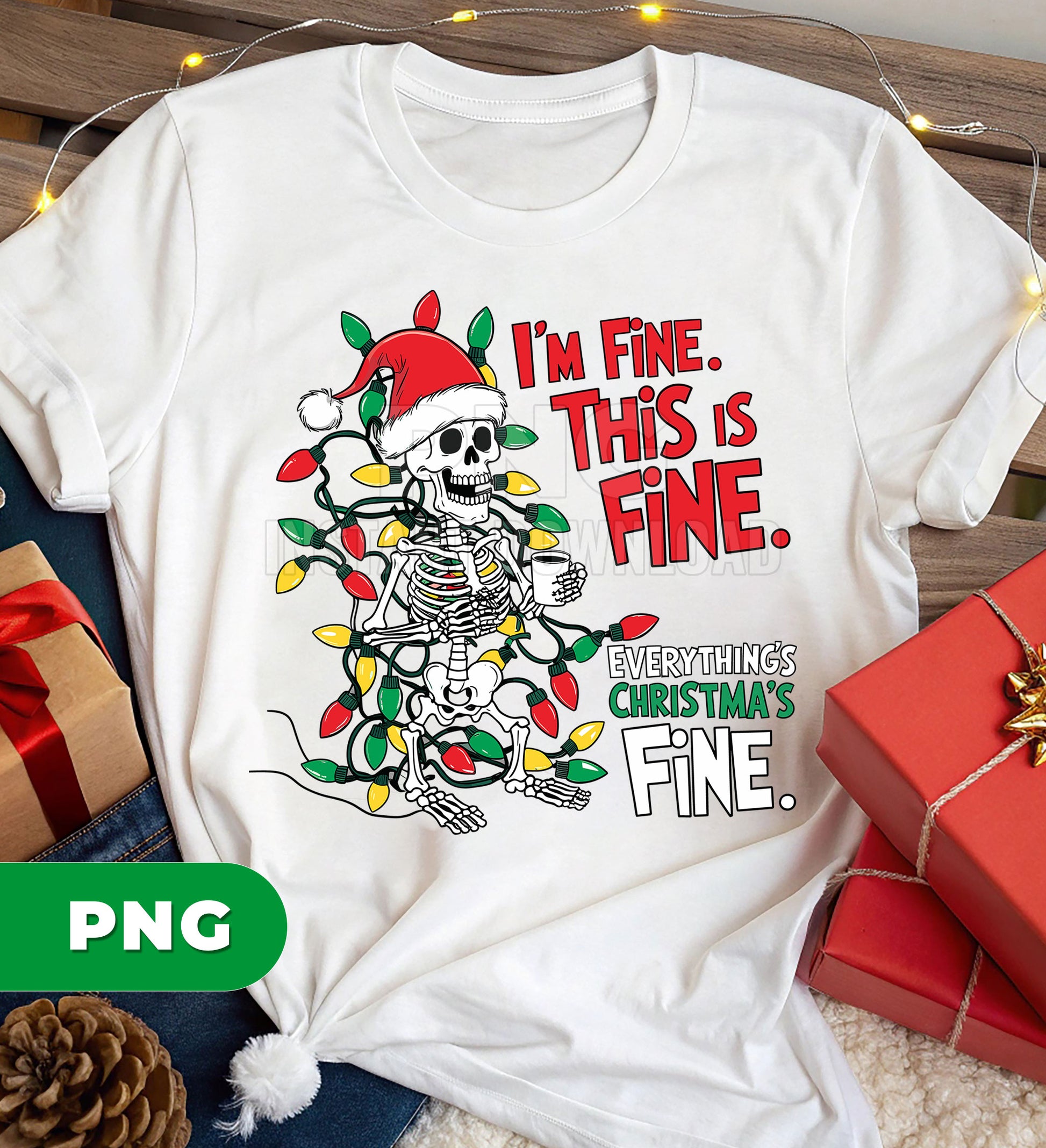 Christmas Skeleton PNG, Funny Skeleton Christmas Lights Clipart, I'm Fine This Is Fine PNG, Santa Hat Skull, Holiday Humor, Merry Christmas