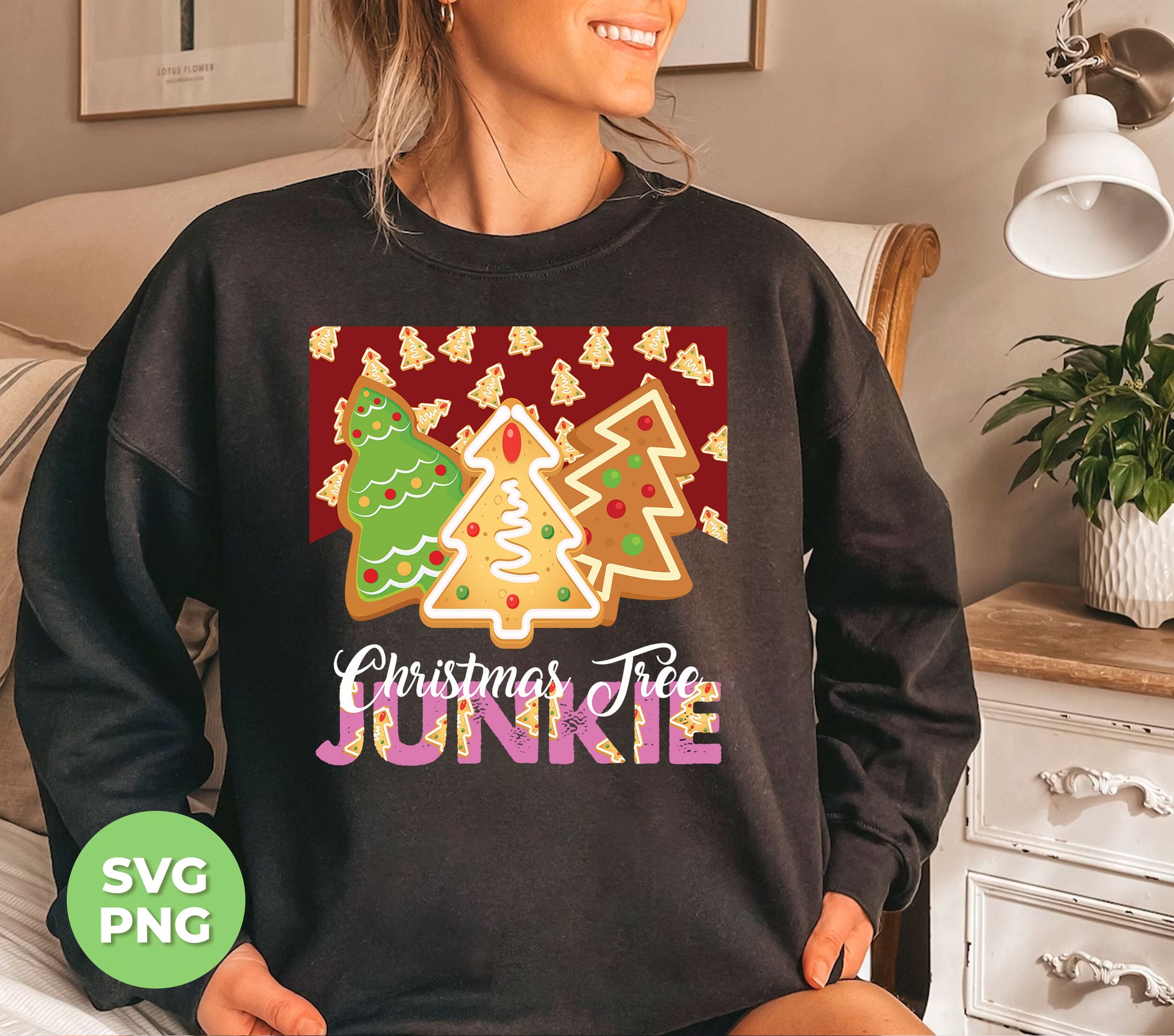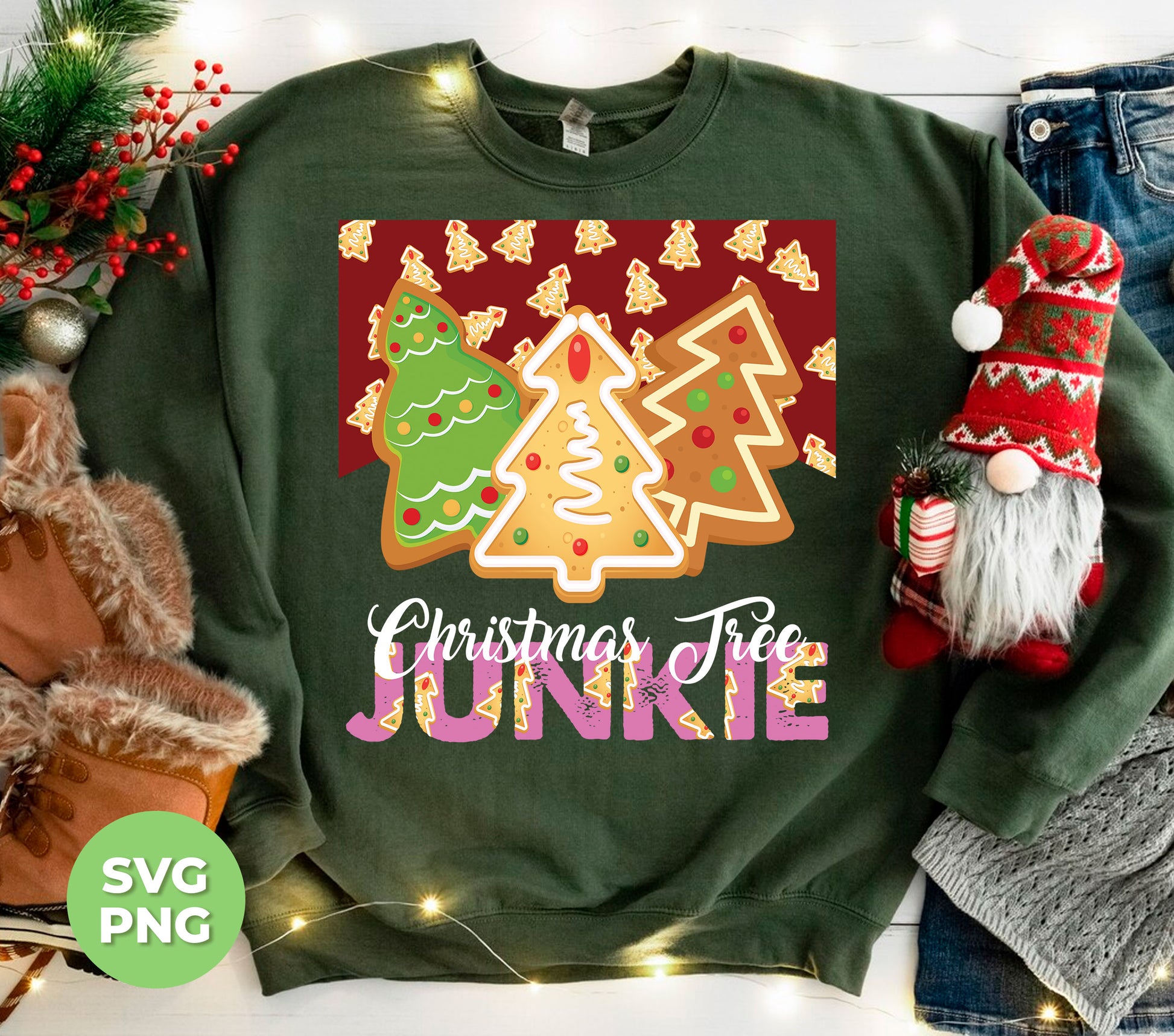 Christmas Tree Junkie, Xmas Tree Gingerbread, Gingerbread Lover, Digital Files, Png Sublimation