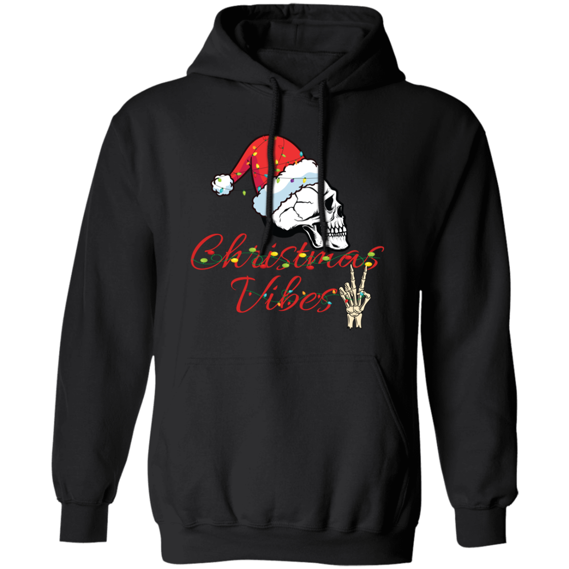 Christmas Vibes, Skull In Christmas, Skull Wear Christmas Hat, Merry Christmas, Trendy Christmas Pullover Hoodie