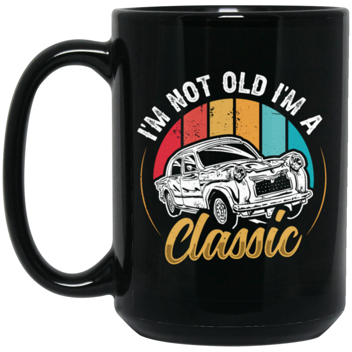 Classic Car Gift, I Am Not Old, I Am A Classic, Not Old But Classic, Car Vintage Black Mug