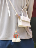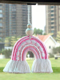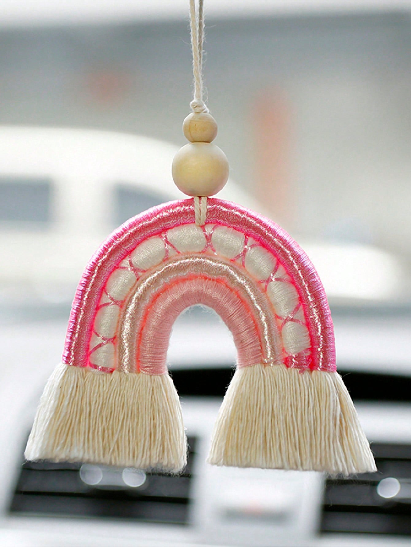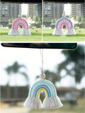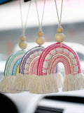 Colorful Charm: Handmade Rainbow Woven Pendant for Car Rearview Mirror
