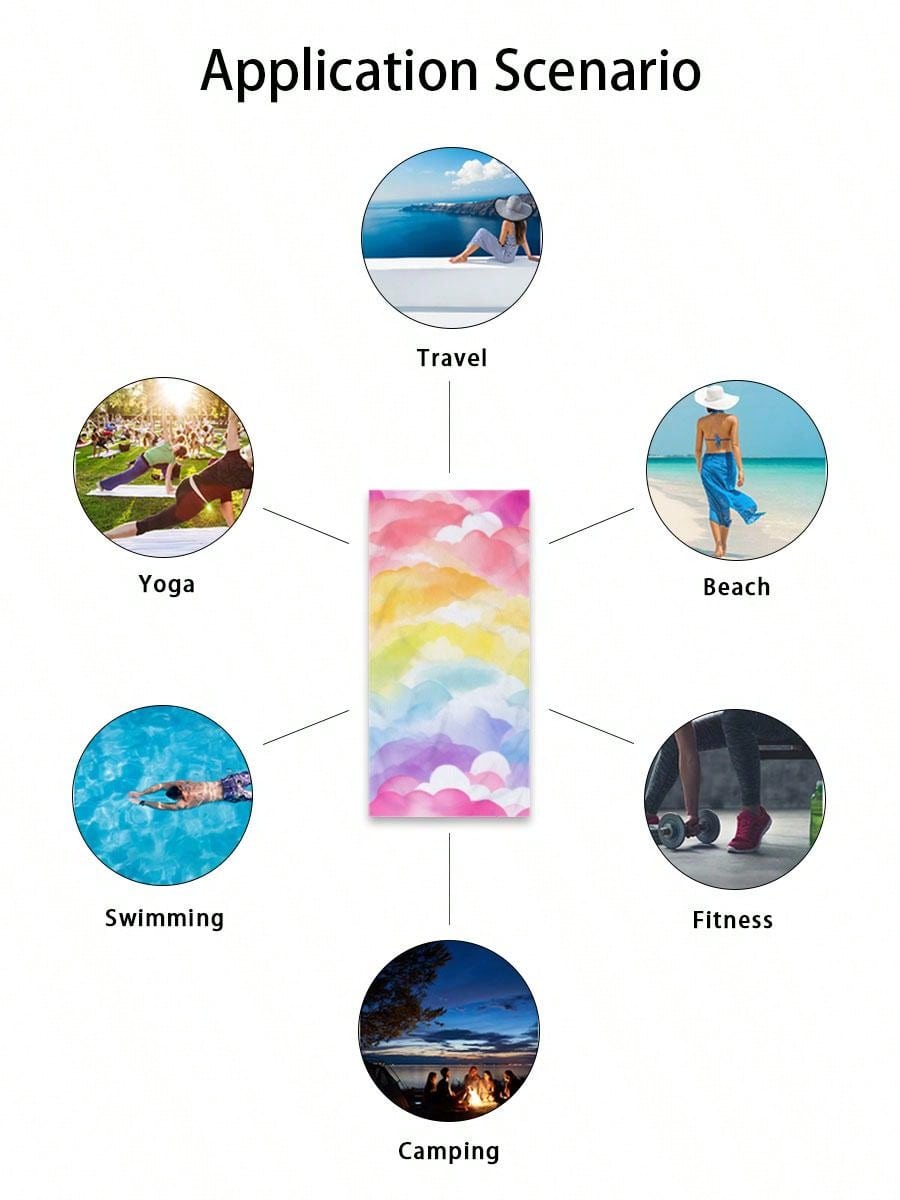 Introducing the Colorful Cloud Pattern Beach Towel - your perfect travel companion! This towel not only features a vibrant and eye-catching cloud pattern, but it is also lightweight and highly absorbent, making it perfect for your adventures. With this towel by your side, you can say goodbye to bulky and inefficient towels.