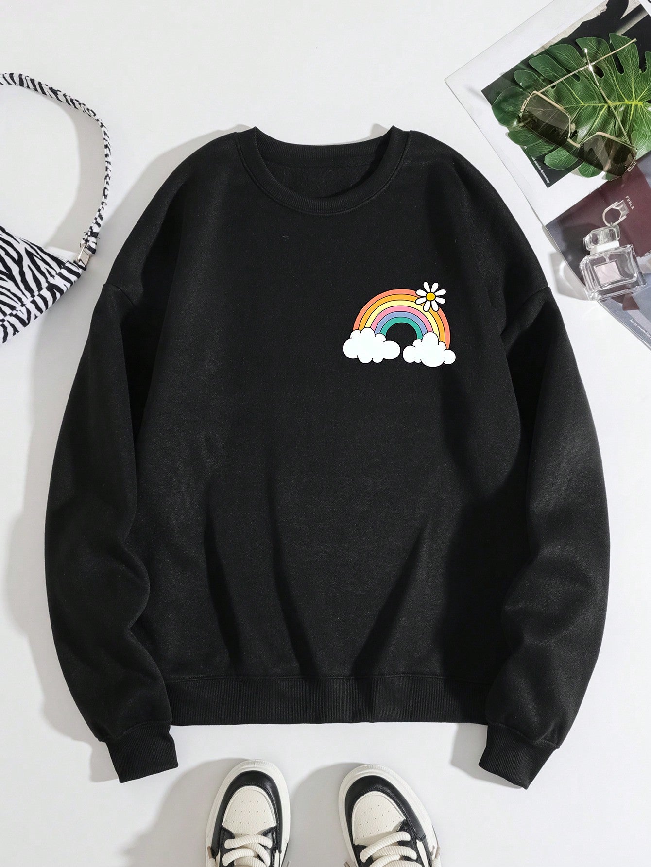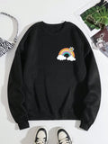 Colorful Comfort: Rainbow Slogan Graphic Thermal-Lined Sweatshirt for Vibrant Style and Warmth