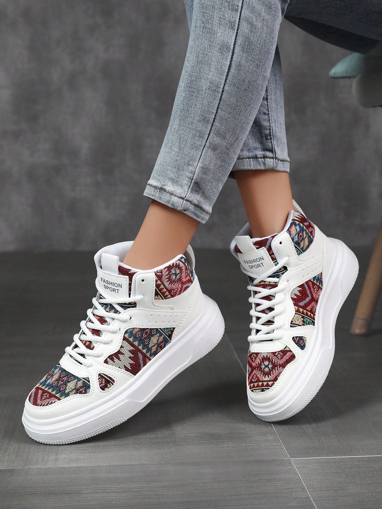 Colorful Comfort: Women's High Top Athletic Sneakers with Lace-Up Design
