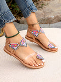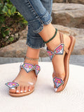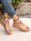 Colorful Embroidered Geometric Slide Sandals: Retro Chic for Big Size Feet