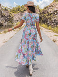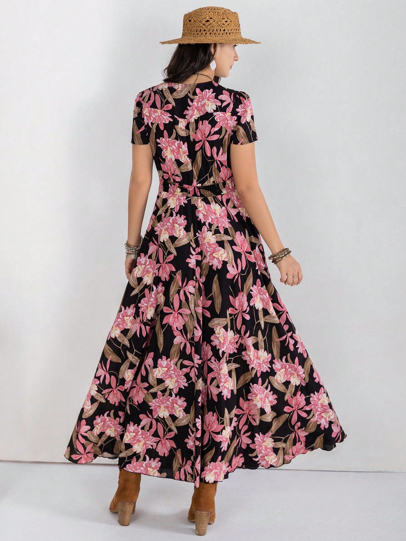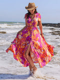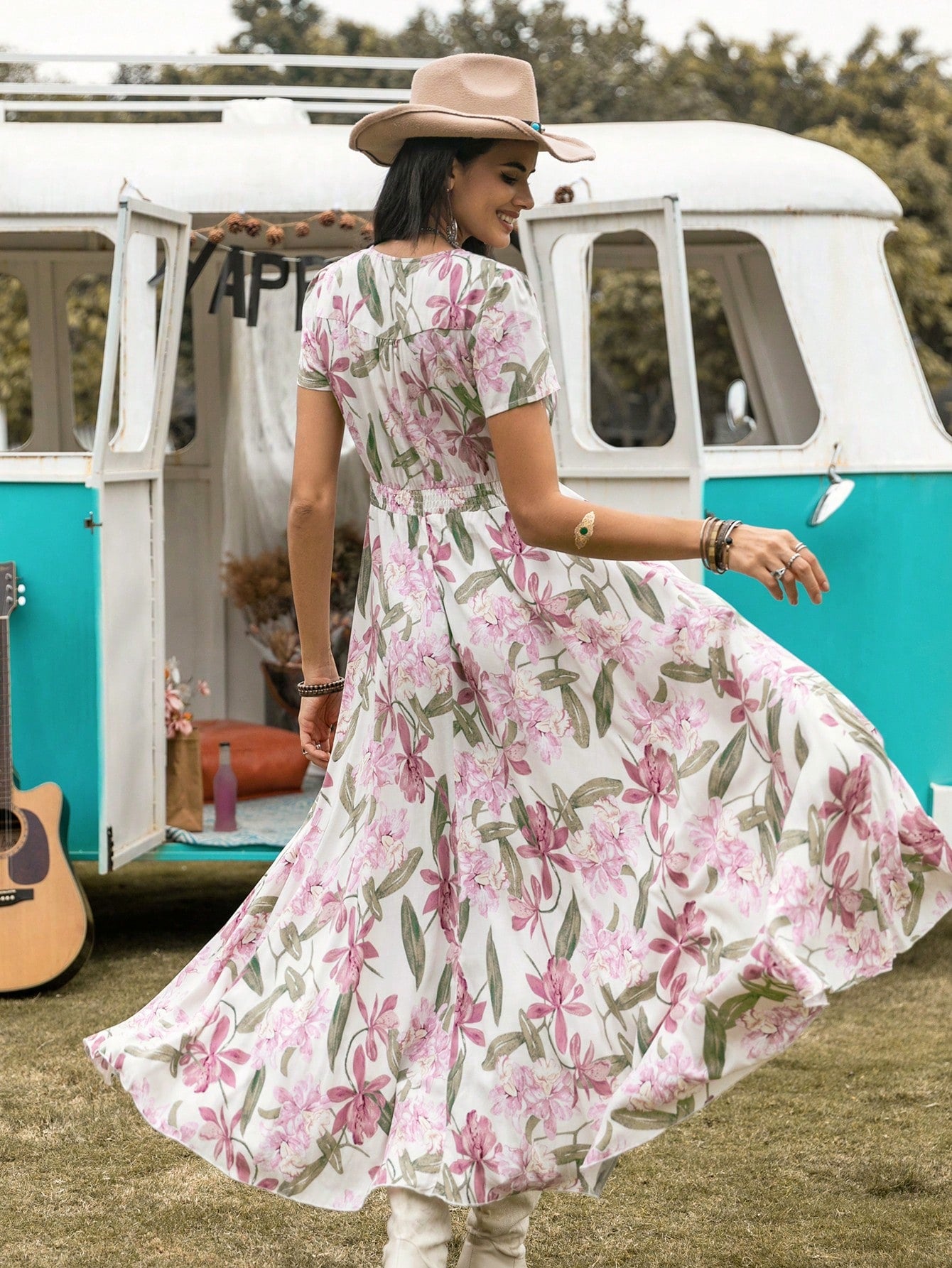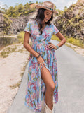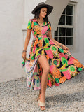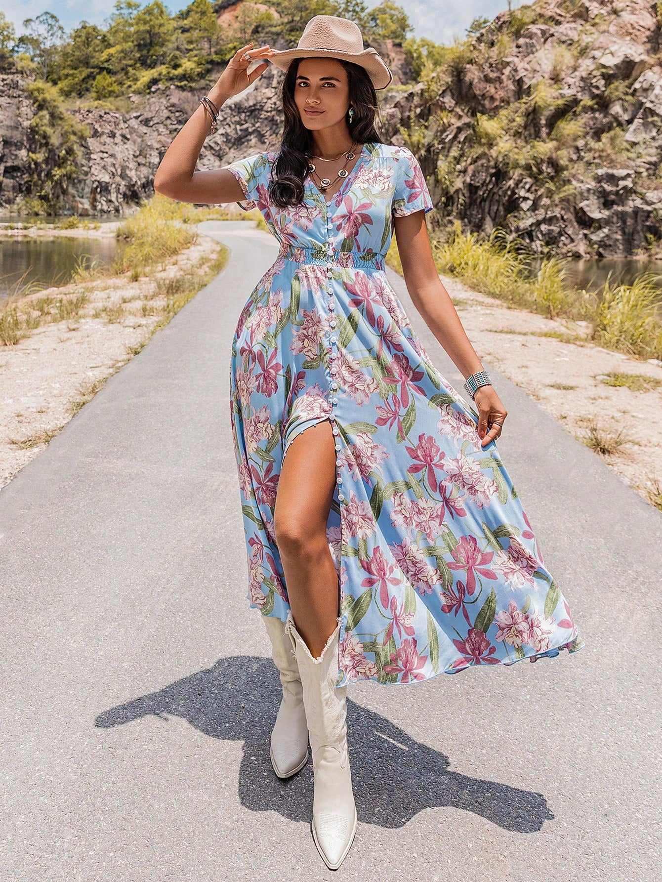 Colorful Floral Printed High-Waisted Slit Dress: The Perfect Spring Look