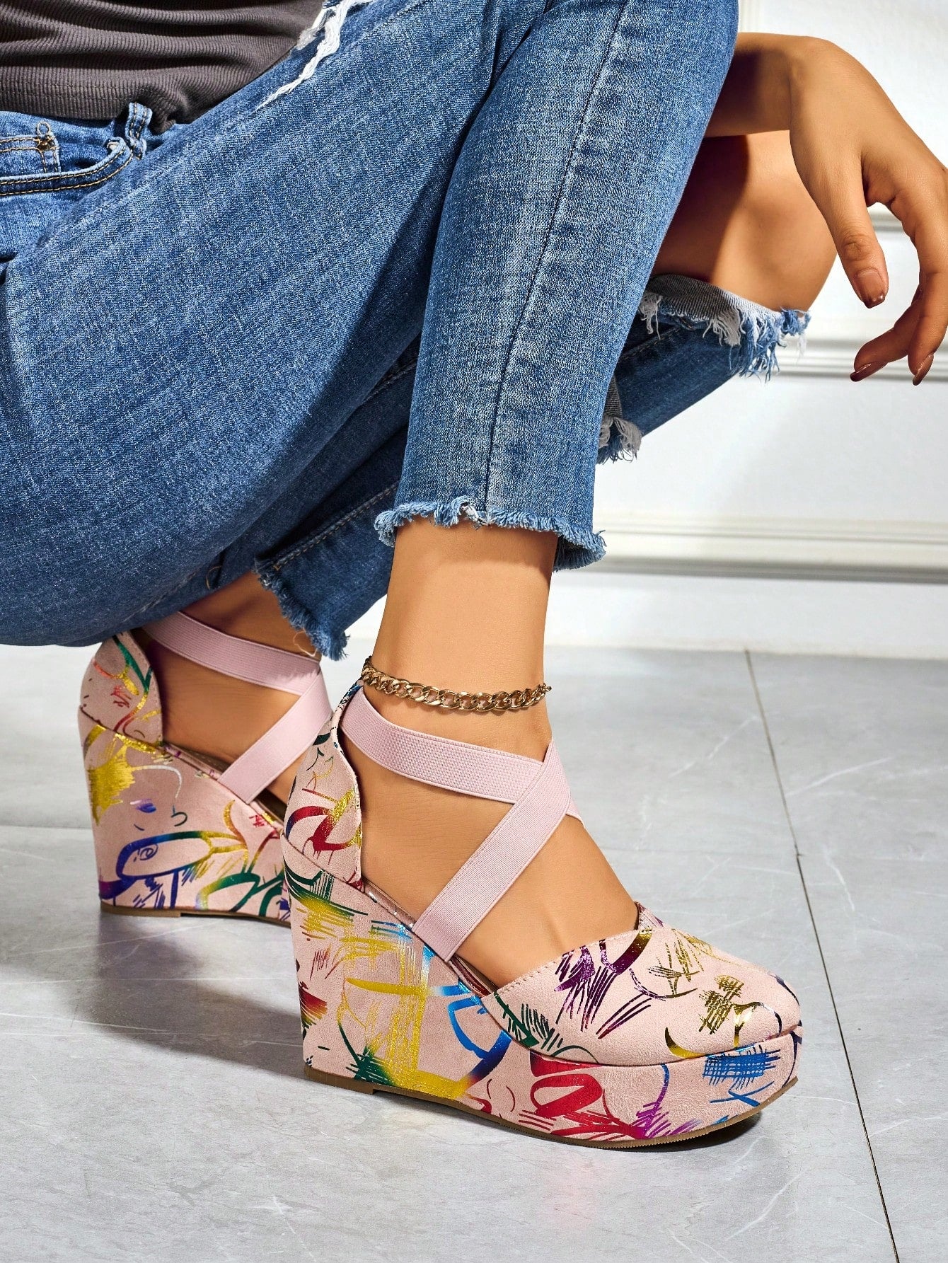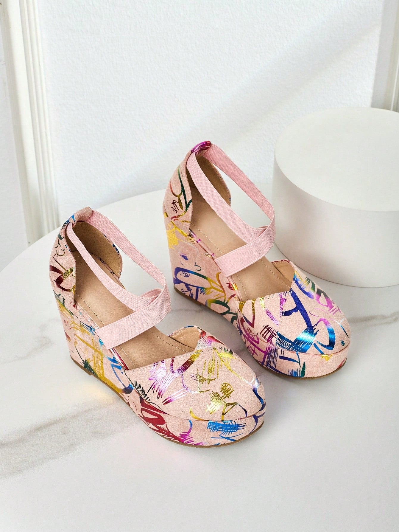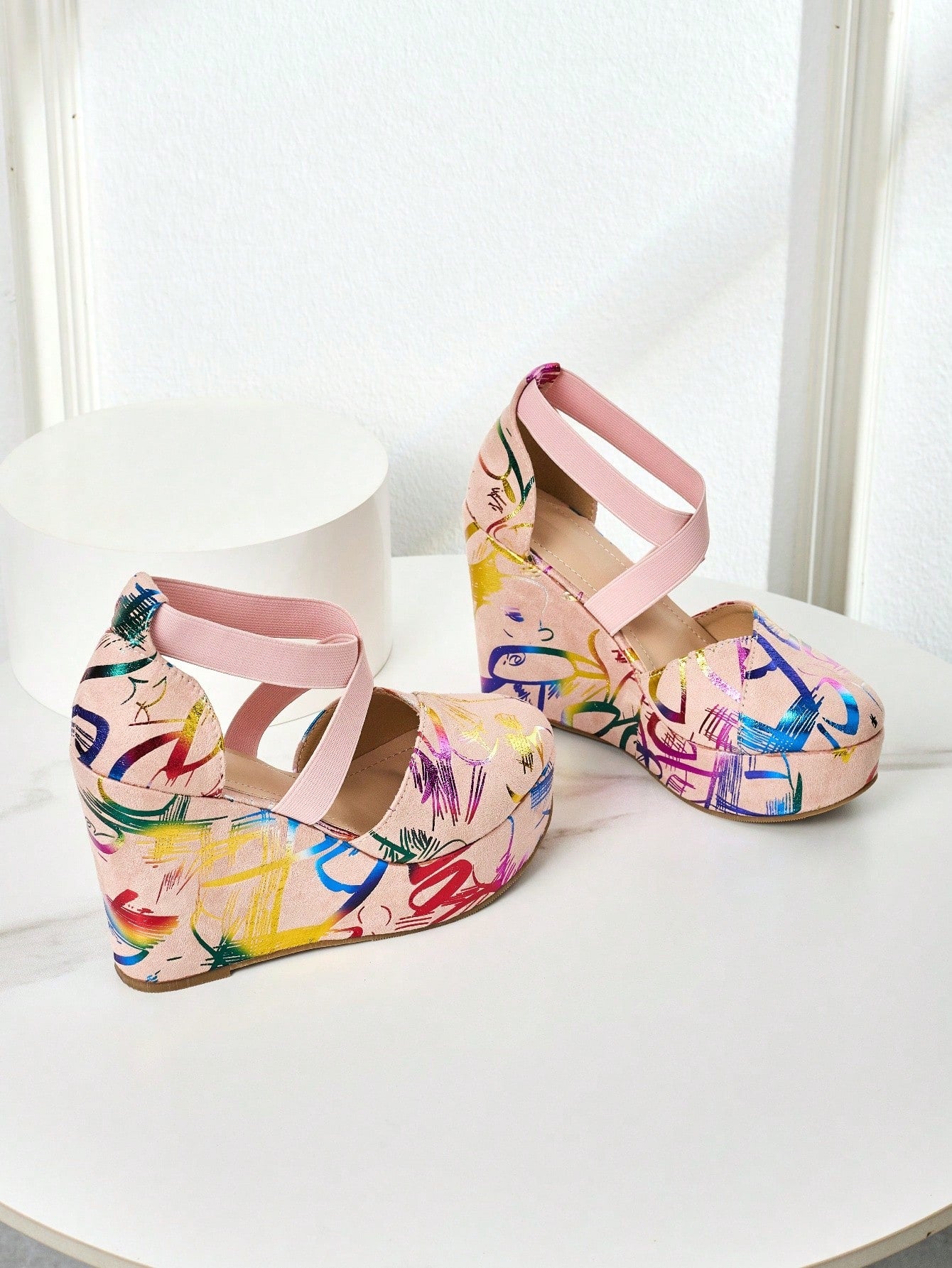 Elevate your fashion game with our Colorful Music Party Platform Sandals. These unique shoes feature a vibrant design perfect for any music party. The platform adds height and comfort, while the colorful pattern adds a touch of fun to any outfit. Step up your style and stand out from the crowd with these must-have sandals.