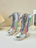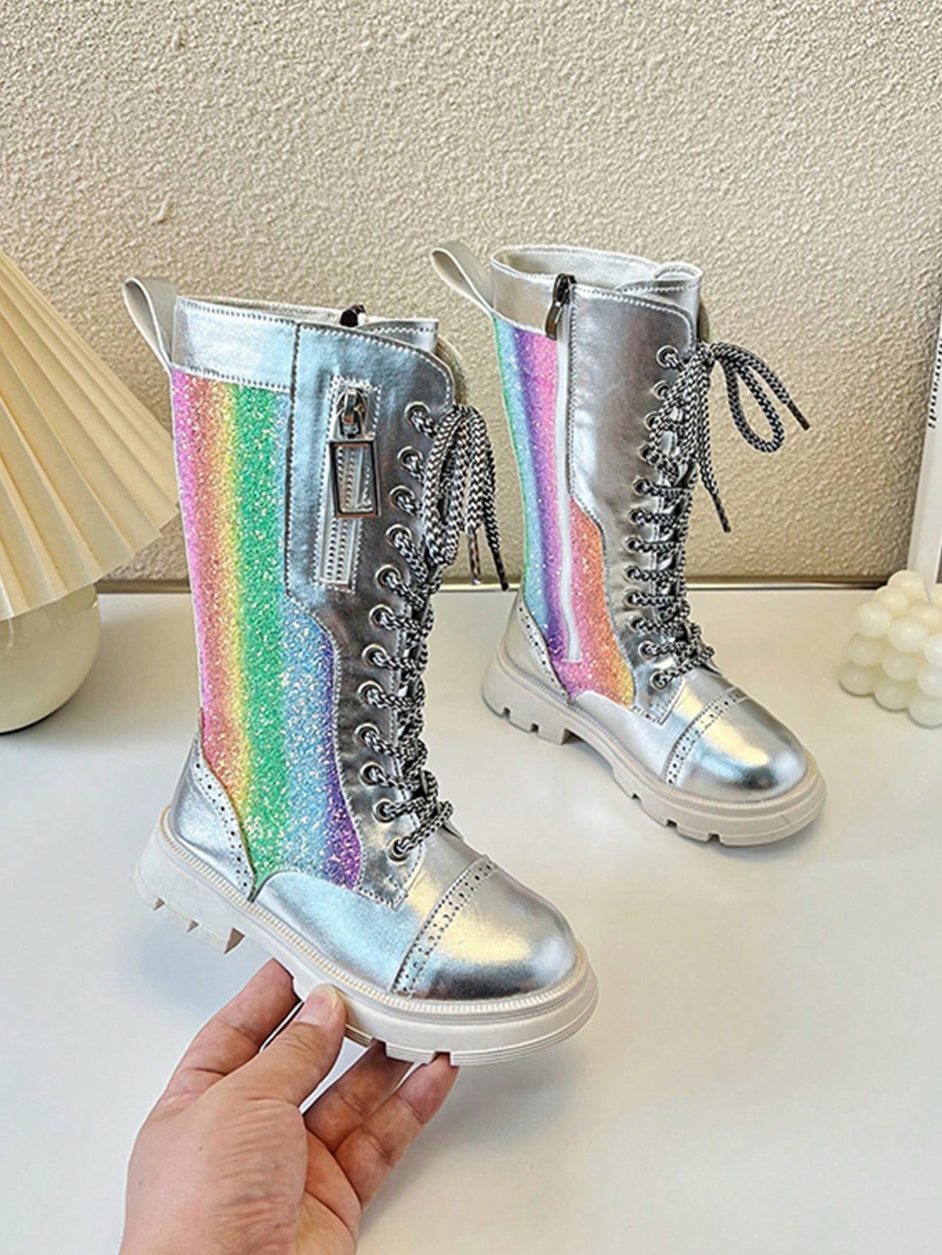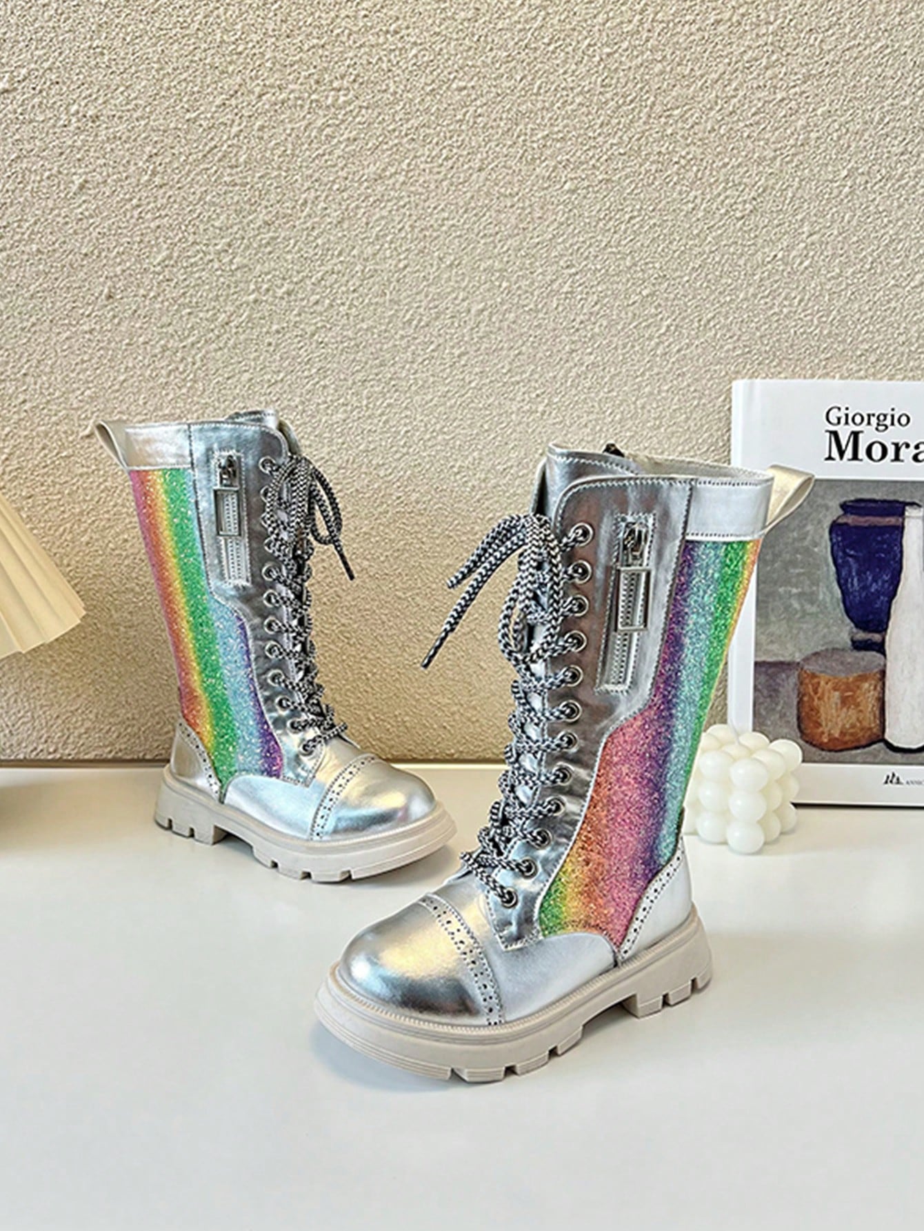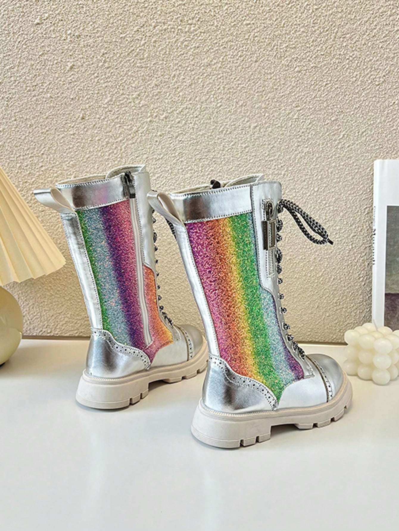 Colorful Rainbow Strap Tall Boots for Kids - Perfect for Autumn, Winter, and Halloween Fun!