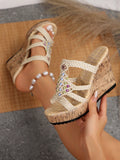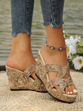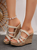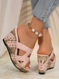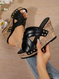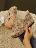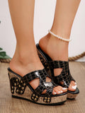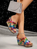 Colorful Snake Print Butterfly Flower Plus Size Wedge Sandals with Platform