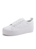 Comfy and Stylish Leather Lace-Up Platform Sneakers for Casual Walking and Tennis