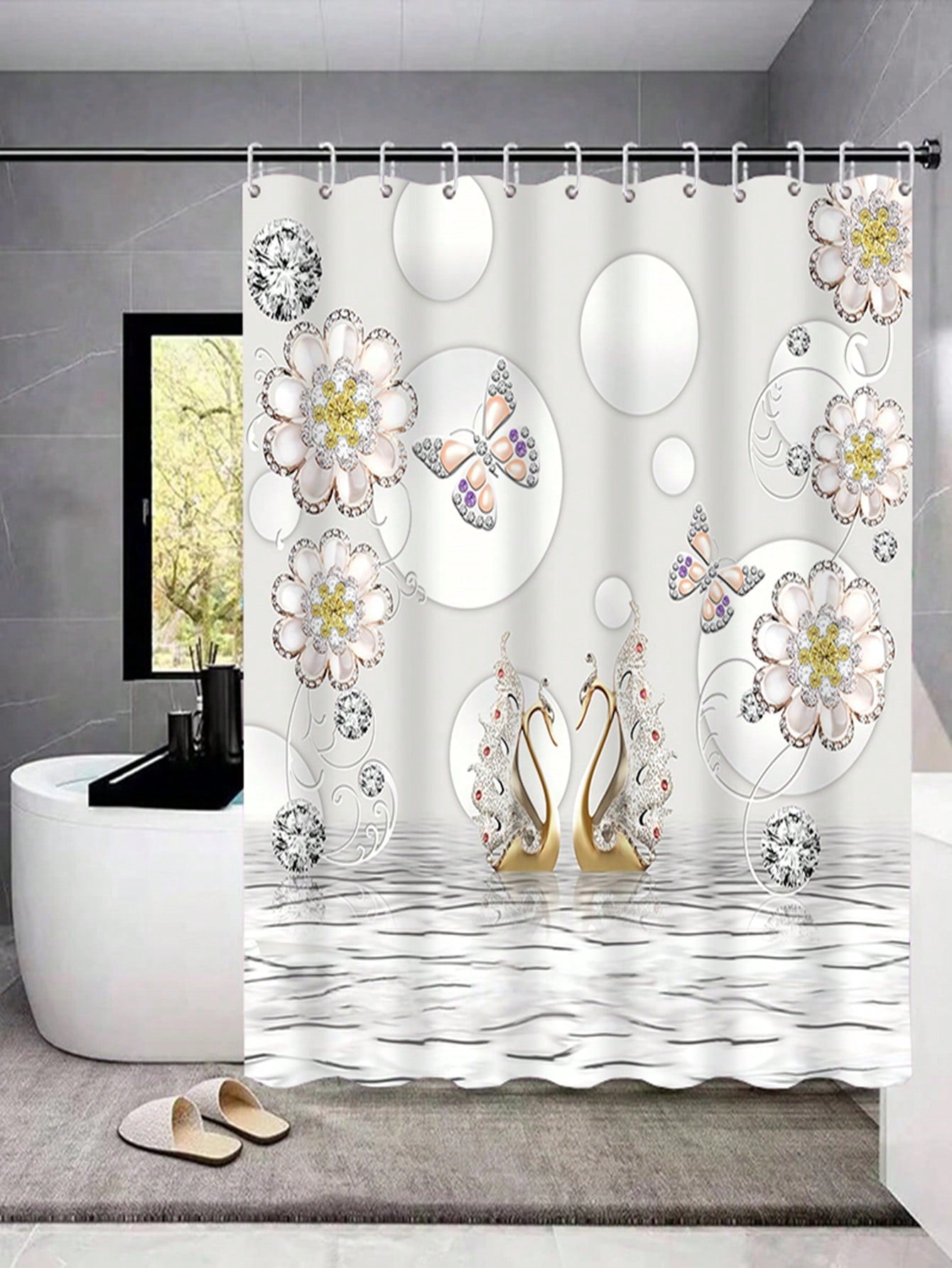 Upgrade your bathroom with our Complete Bathroom Makeover Set. This set includes a waterproof shower curtain, toilet covers, and bath mats with non-slip rugs. Made of high-quality polyester fabric, this set is durable and perfect for any windows in your bathroom. Enjoy a cozy and functional bathroom with our all-in-one set.