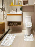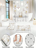 Complete Bathroom Makeover Set: Waterproof Shower Curtain, Toilet Covers, and Bath Mats with Non-Slip Rug - Polyester Fabric Curtain for Windows