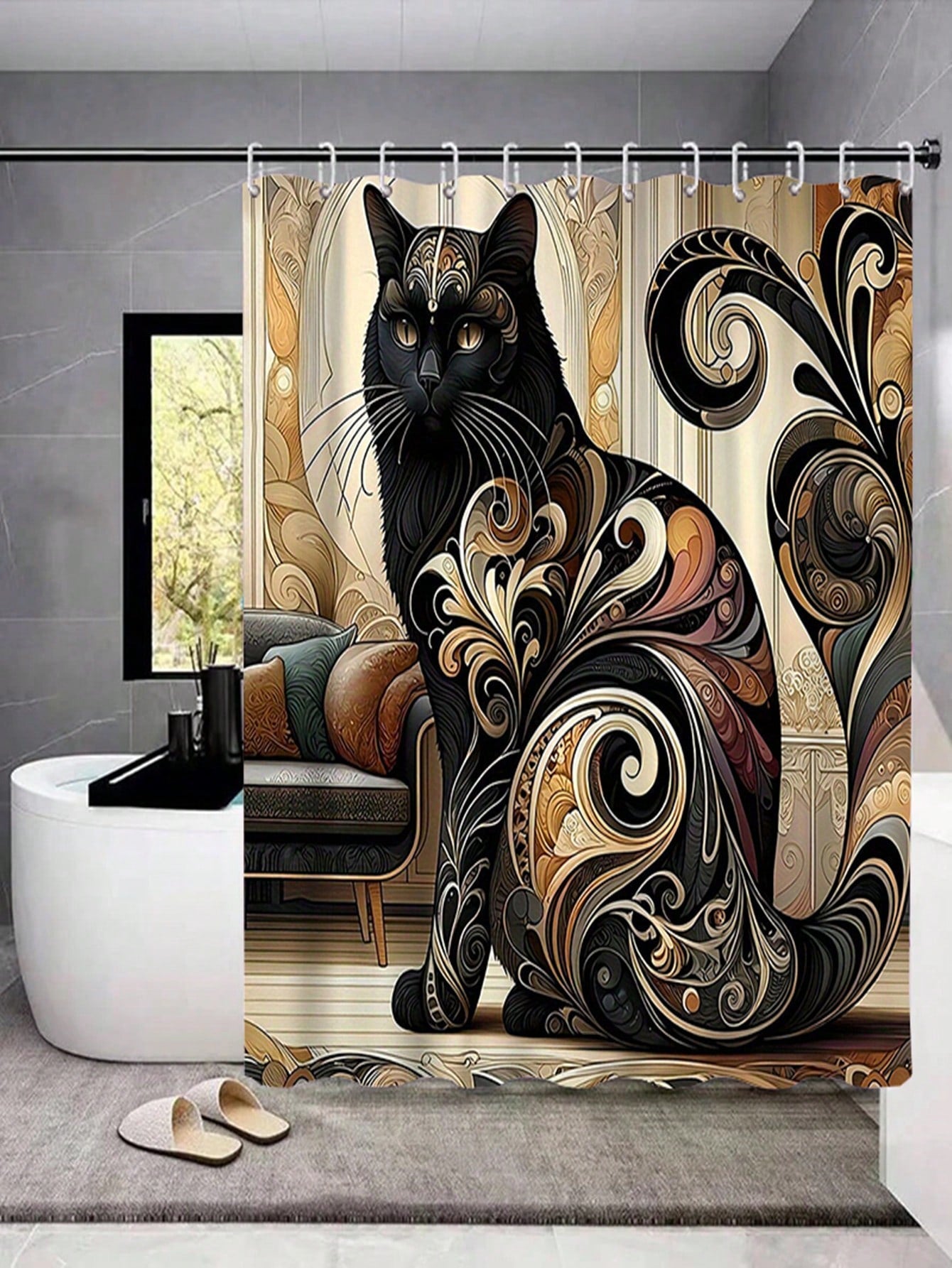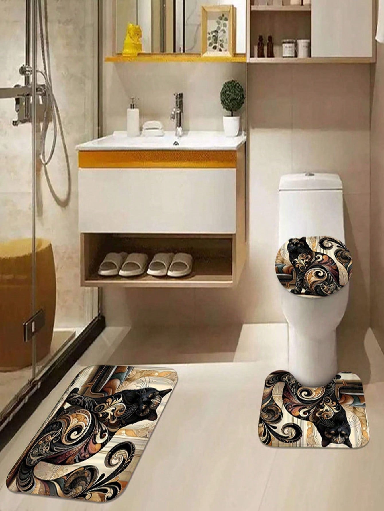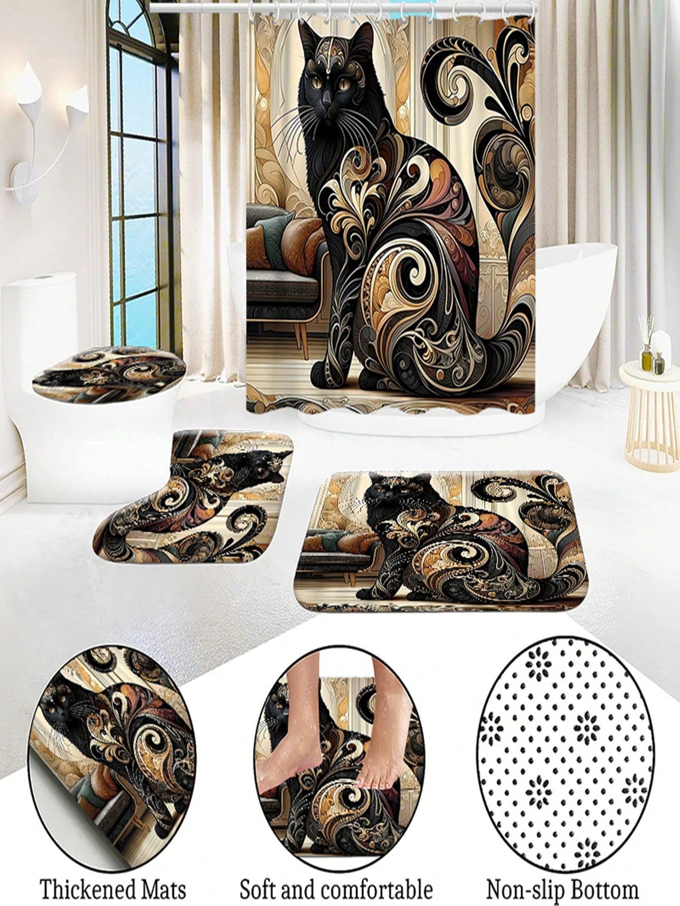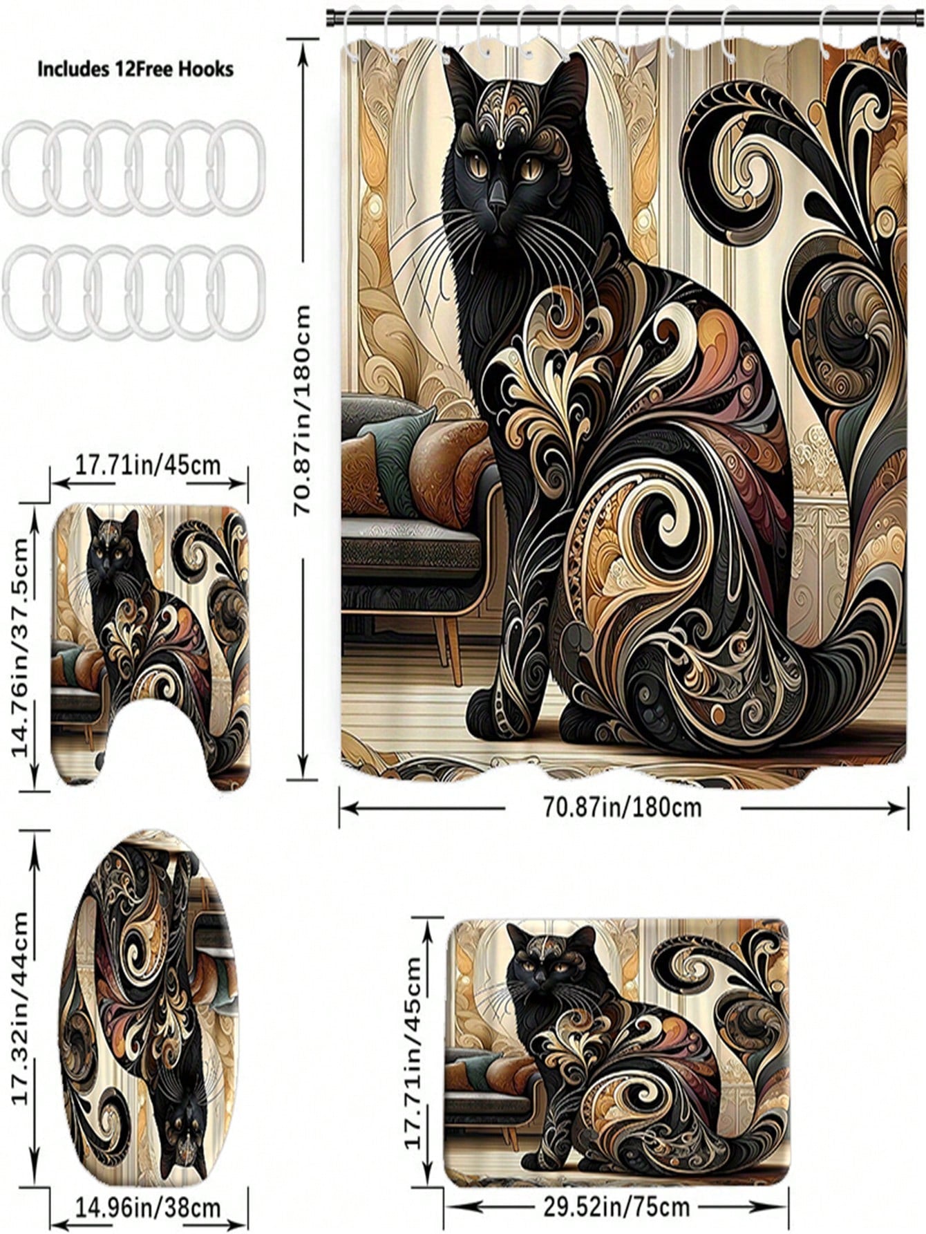 Complete Bathroom Makeover: Waterproof Shower Curtain Set with 12 Hooks, Toilet Covers, Seat, Bath Mats, Non-Slip Rug, Polyester Fabric Curtain for Windows - Stylish Bathroom Accessories Included!