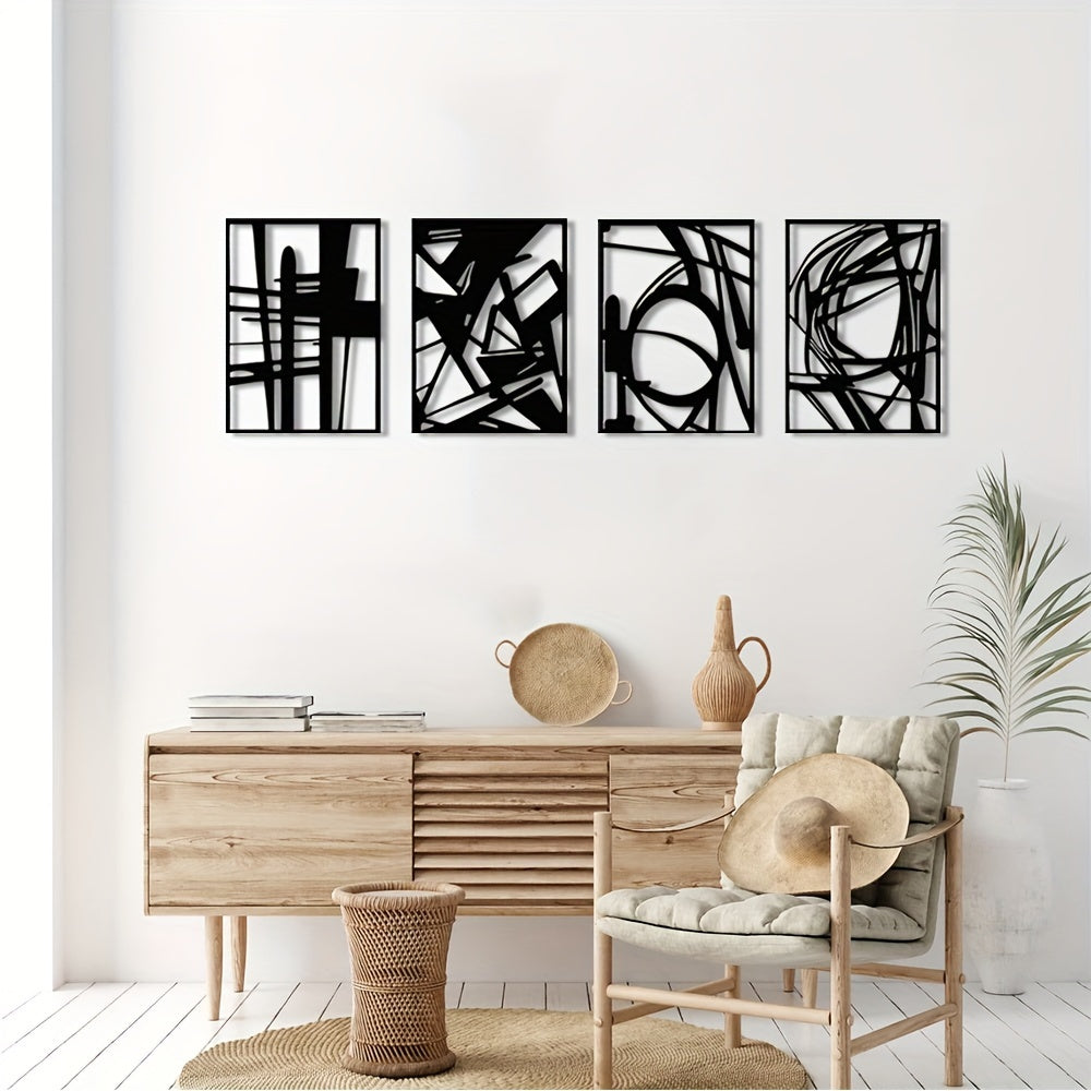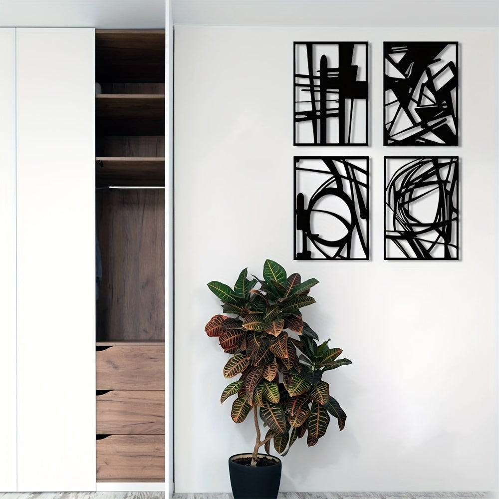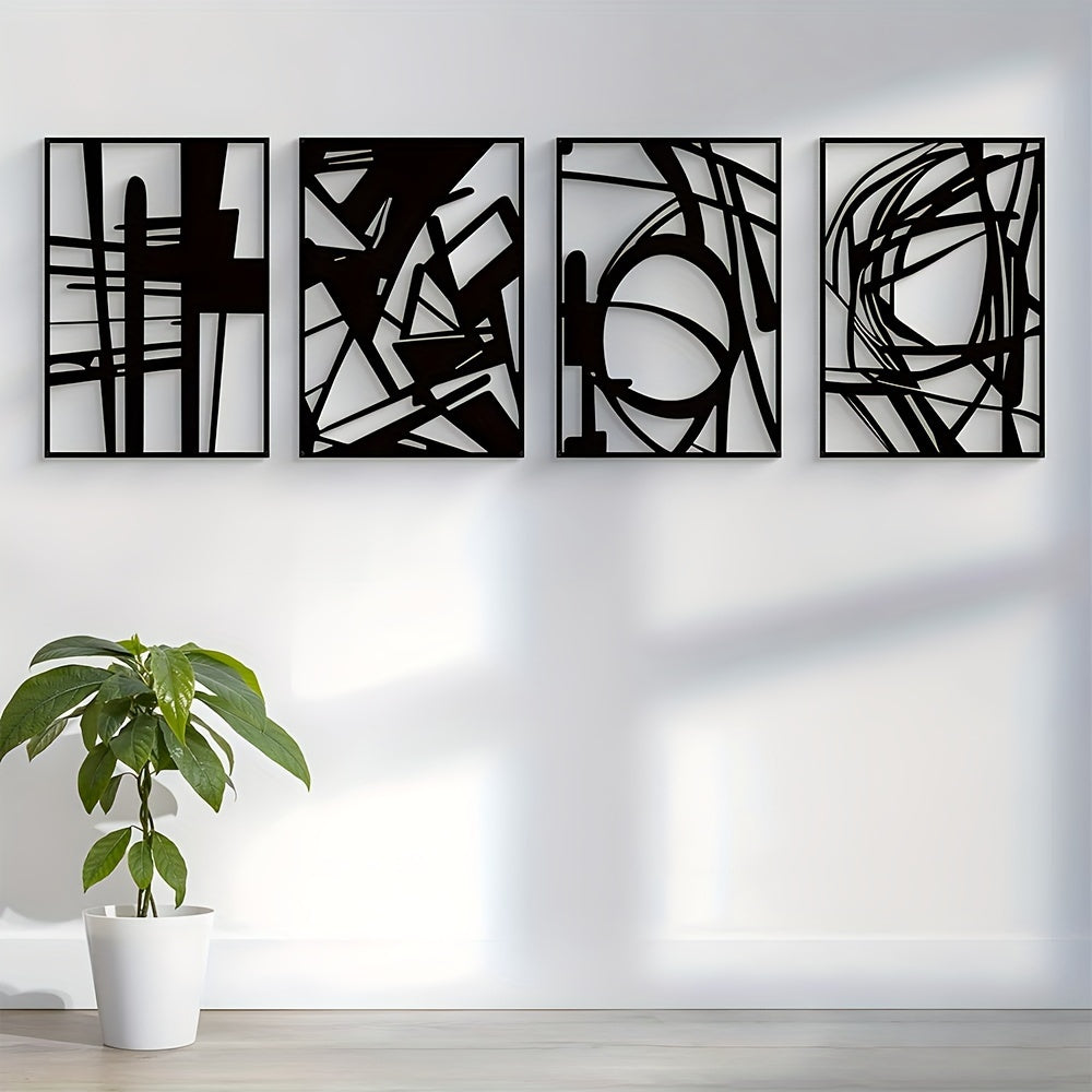 Contemporary Black Abstract Metal Wall Art: Minimalist 3D Texture Sculpture for Elegant Living Spaces