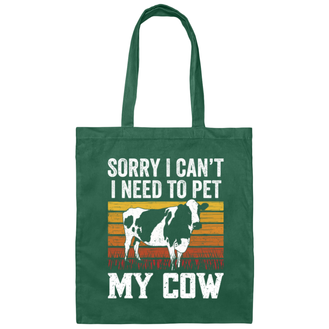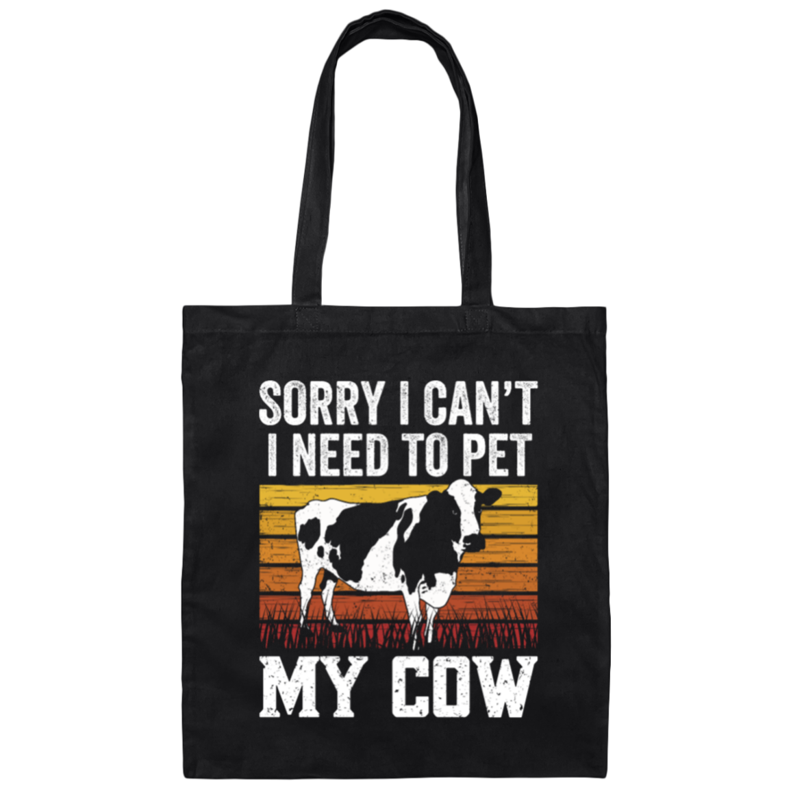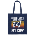 Cow Lover, Sorry I Cannot, I Need To Pet My Cow, Retro Cow Gift, Best Cow Canvas Tote Bag