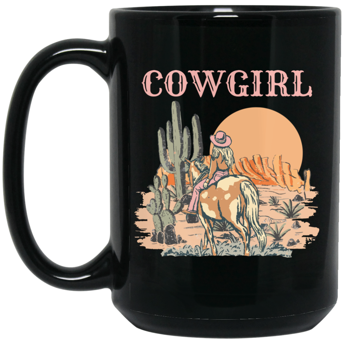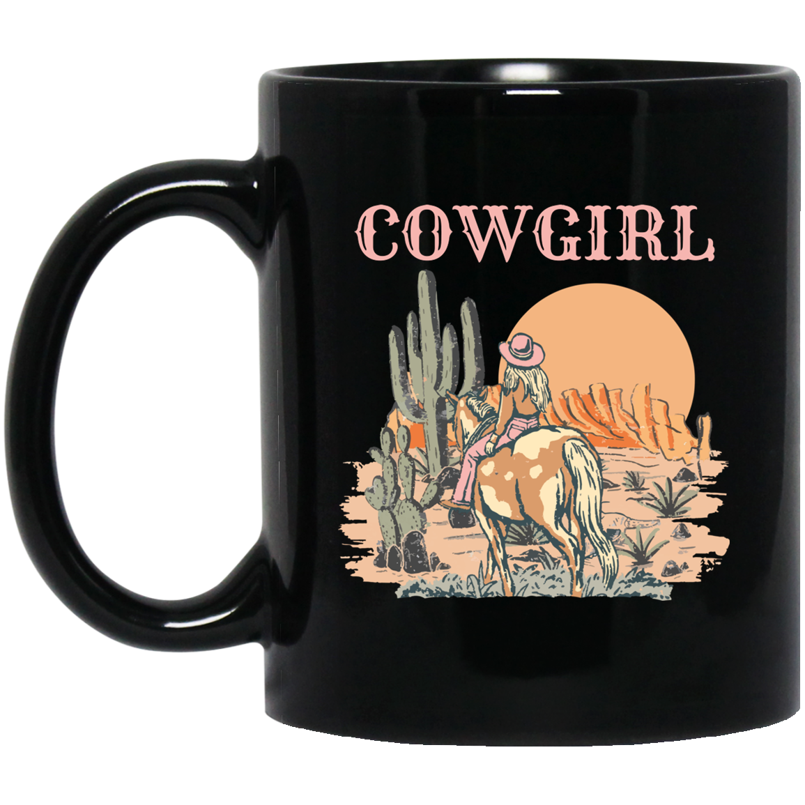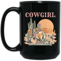 Cowboy Lover Gift, Cowgirl Life In Desert, Long Live Cowgirl Black Mug