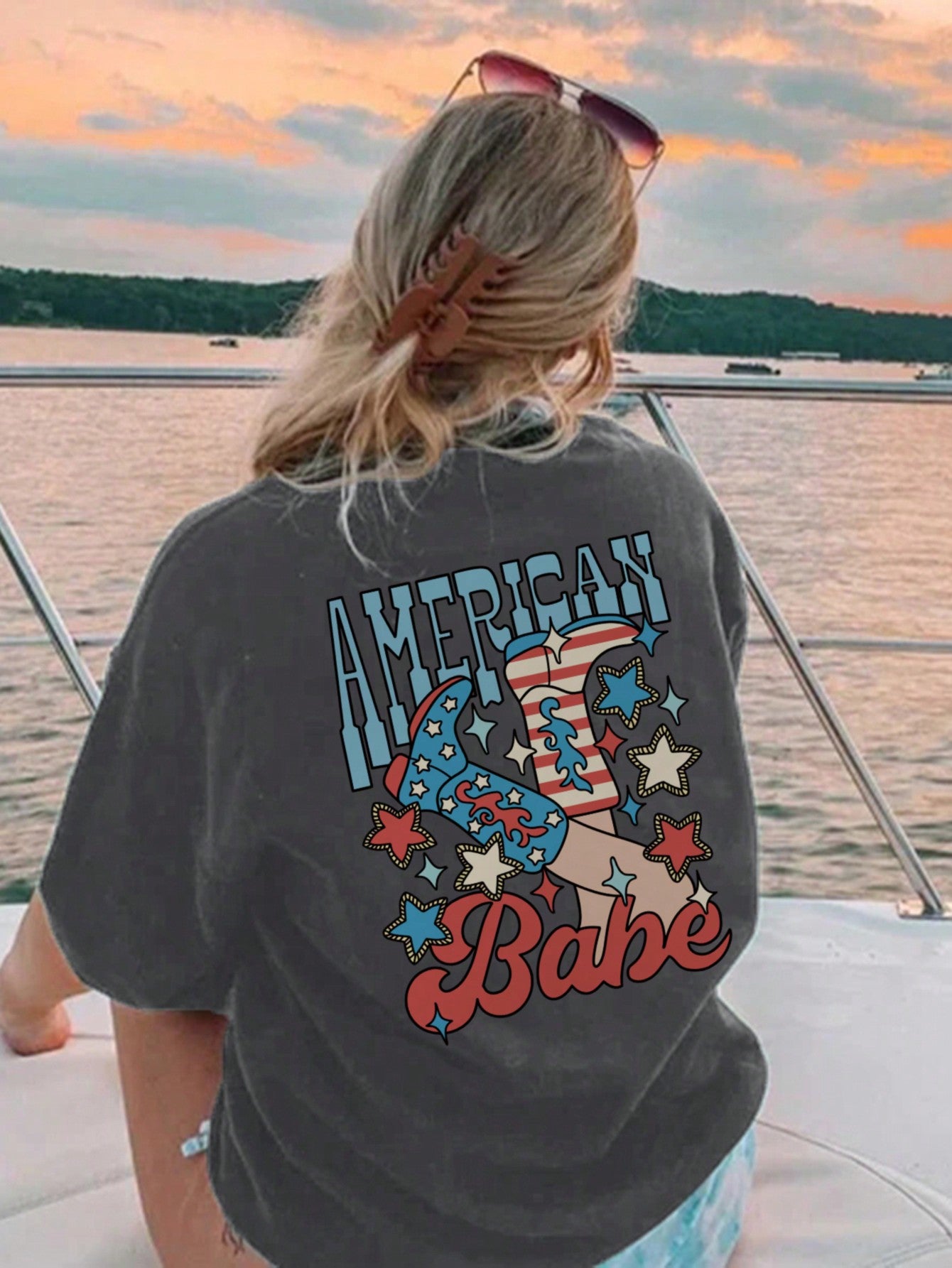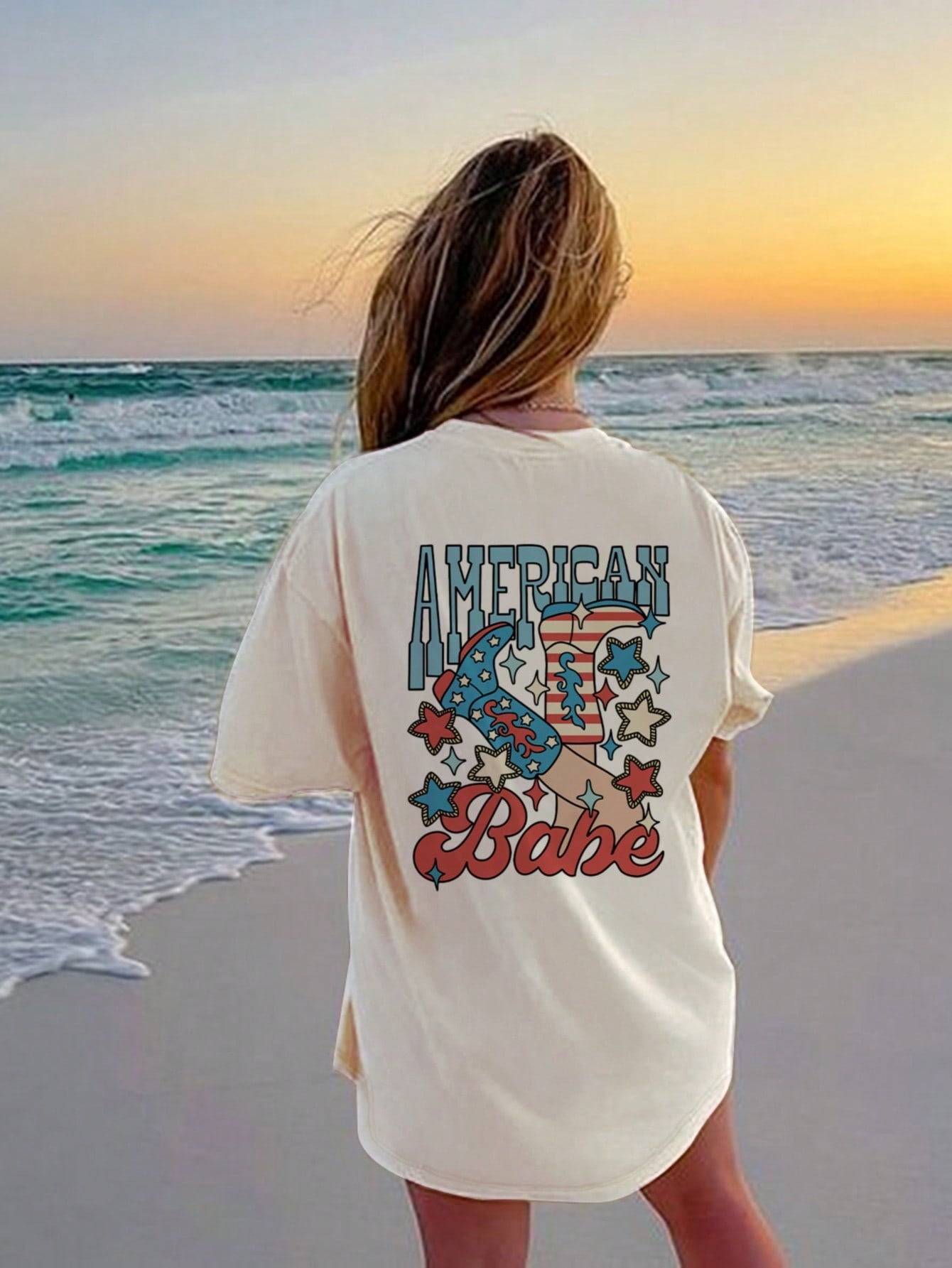 Cowgirl Chic: Loose-Fit T-Shirt with Cowboy Boot Print