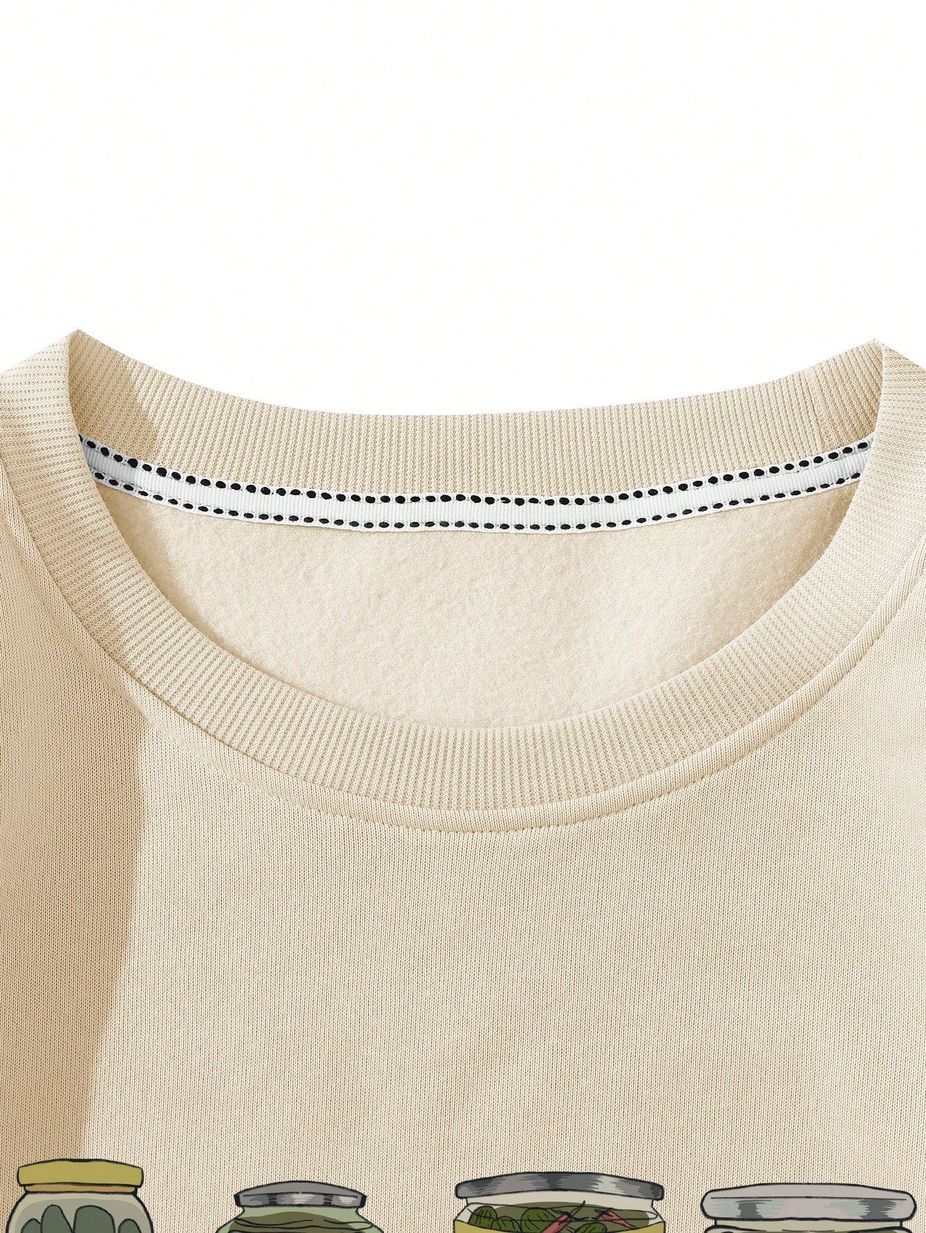 Cozy and Stylish: Women's Letter Cartoon Graphic Thermal Lined Sweatshirt