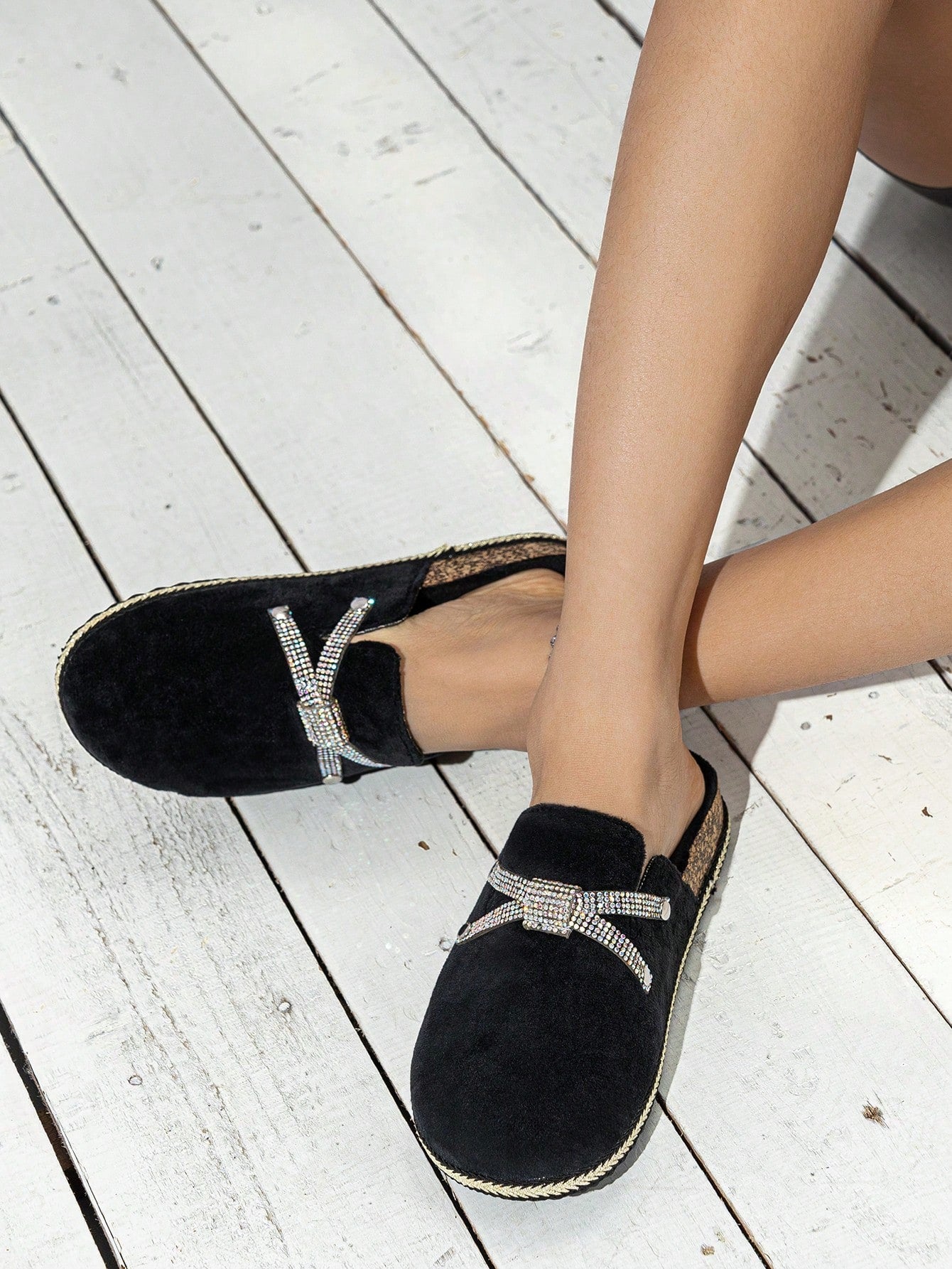Cozy Brown Flower Slippers: Women's Casual Diamond Sequin Sandals