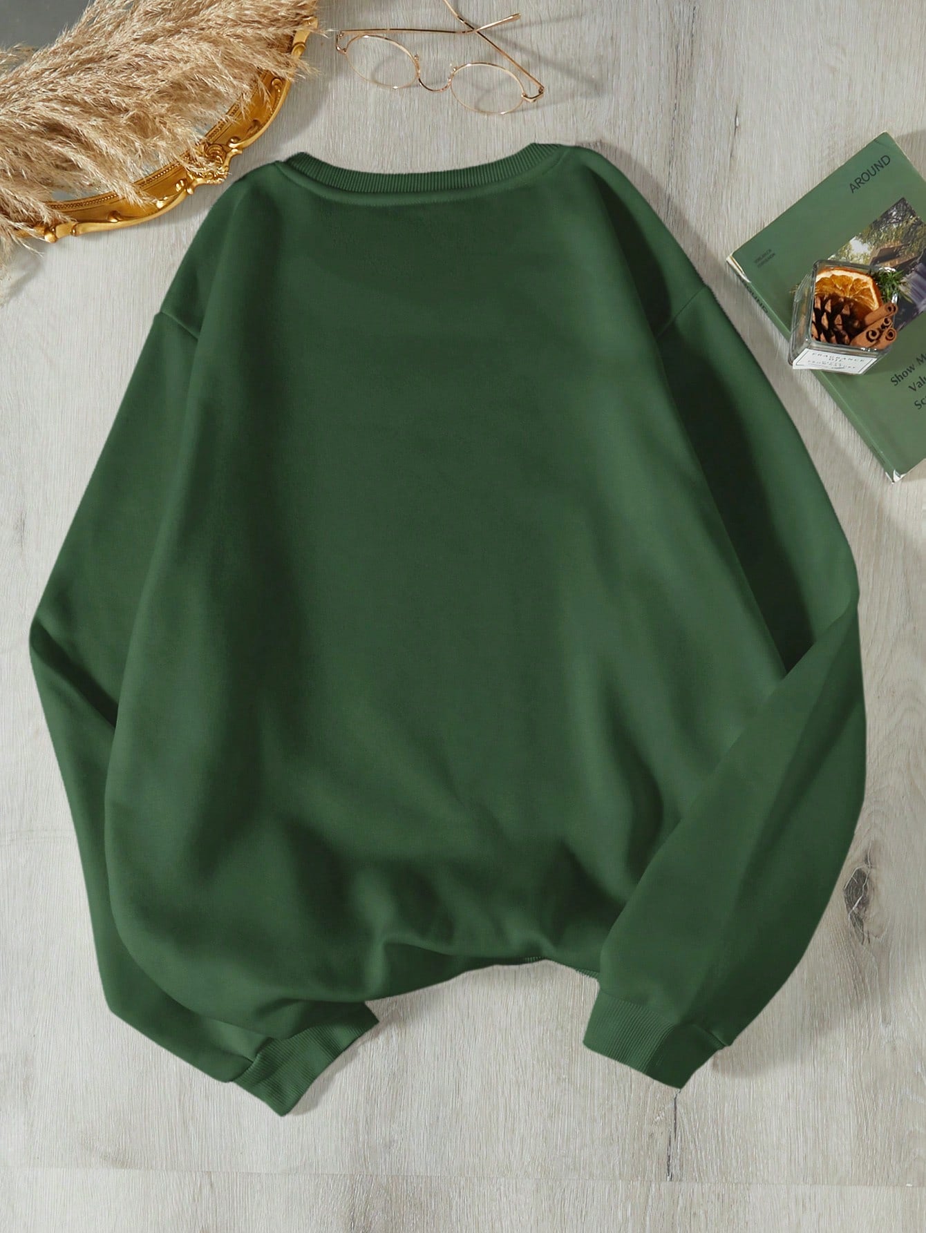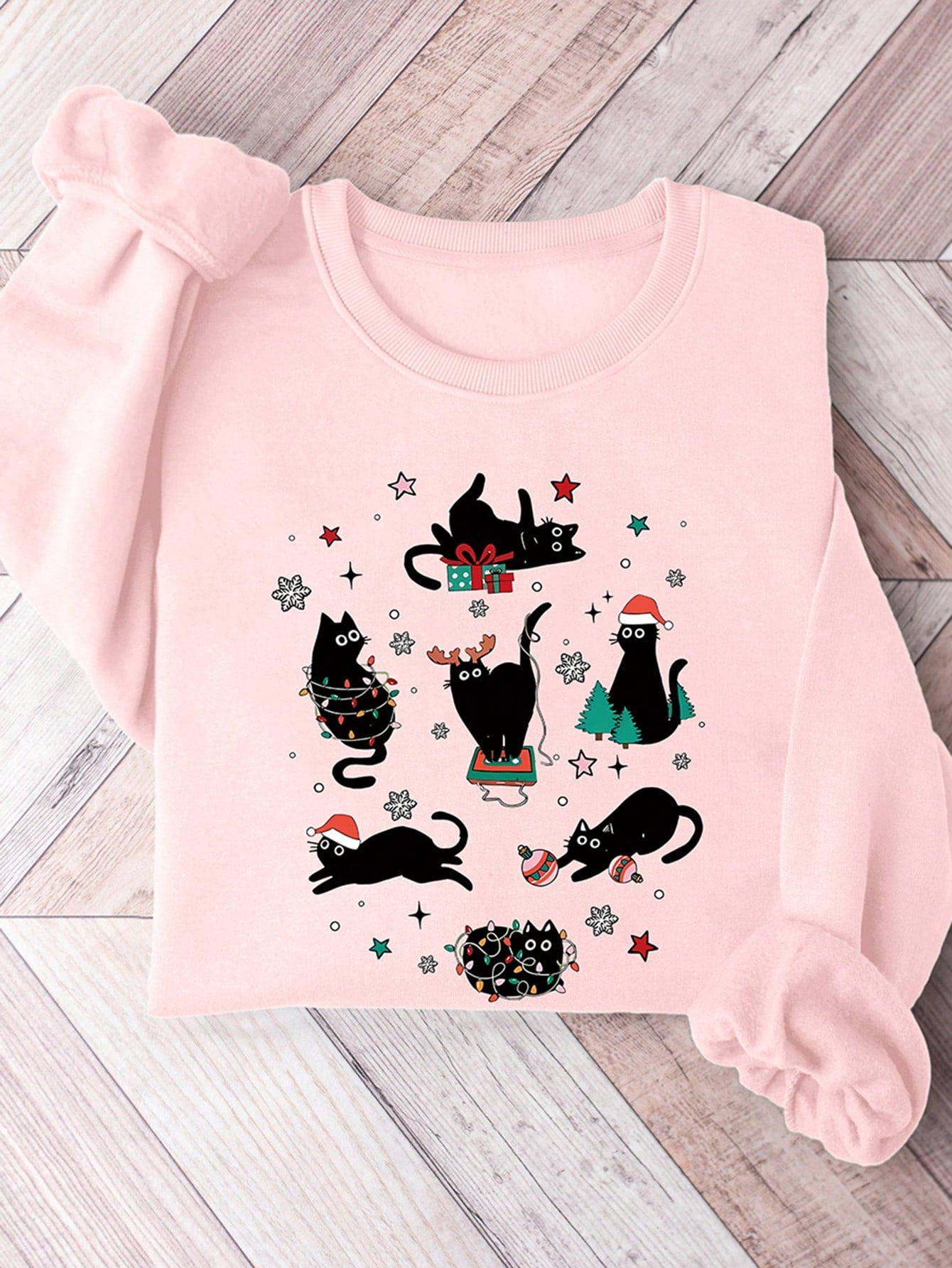 Cozy Casual Christmas Print Fleece-Lined Sweatshirt for Women