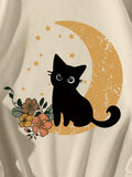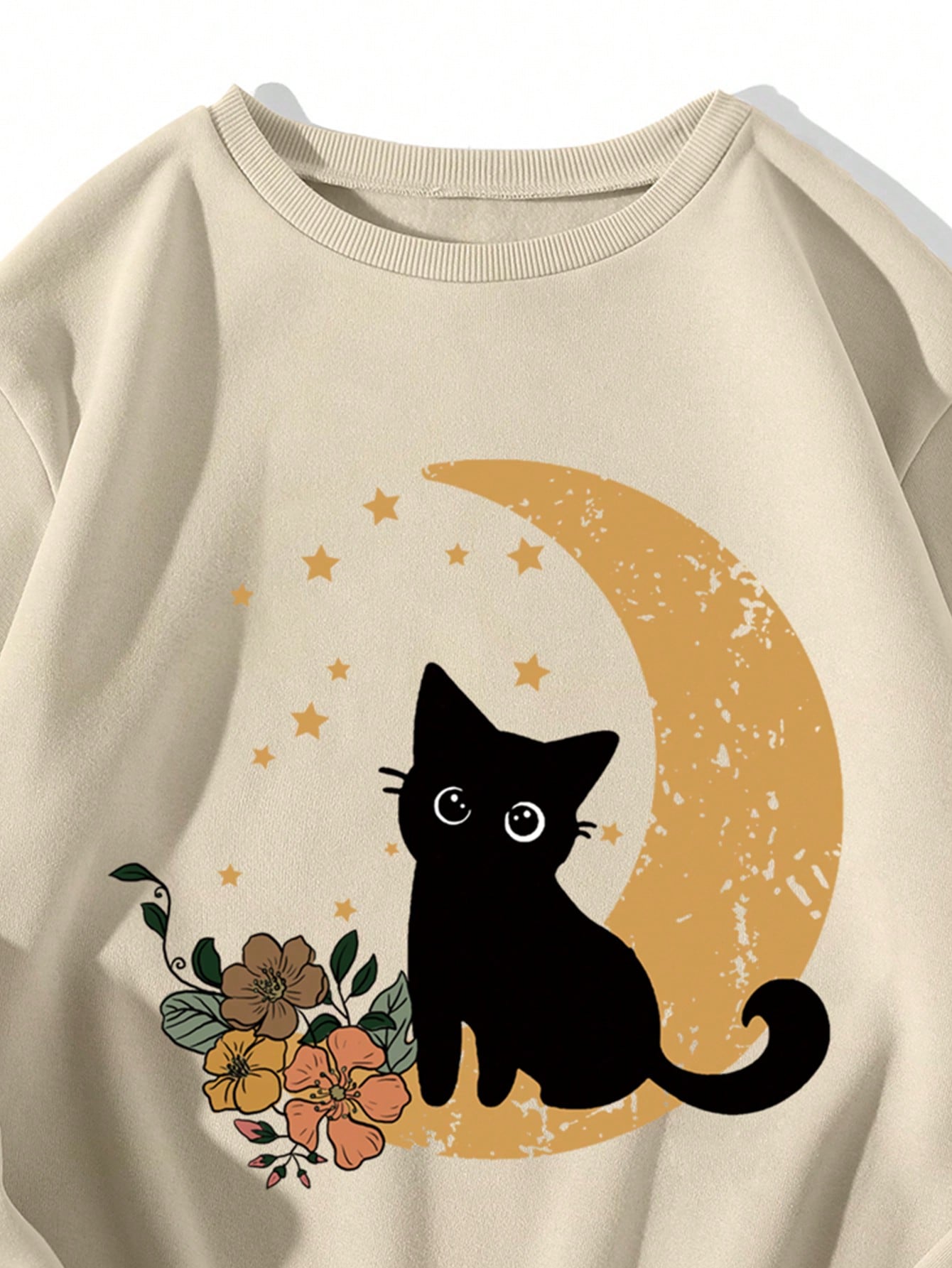 Cozy Cat & Moon Thermal-Lined Sweatshirt - Perfect for Chill Days