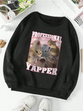 Cozy Cat Print Crew Neck Sweatshirt - Casual Chic for Cat Lovers