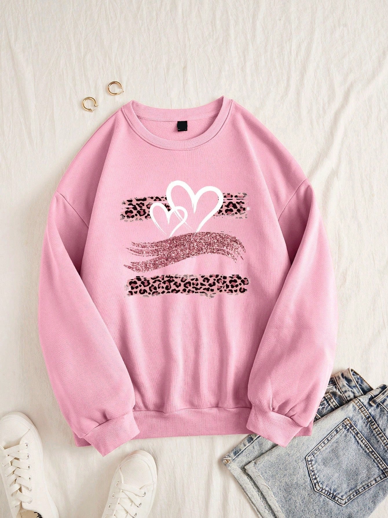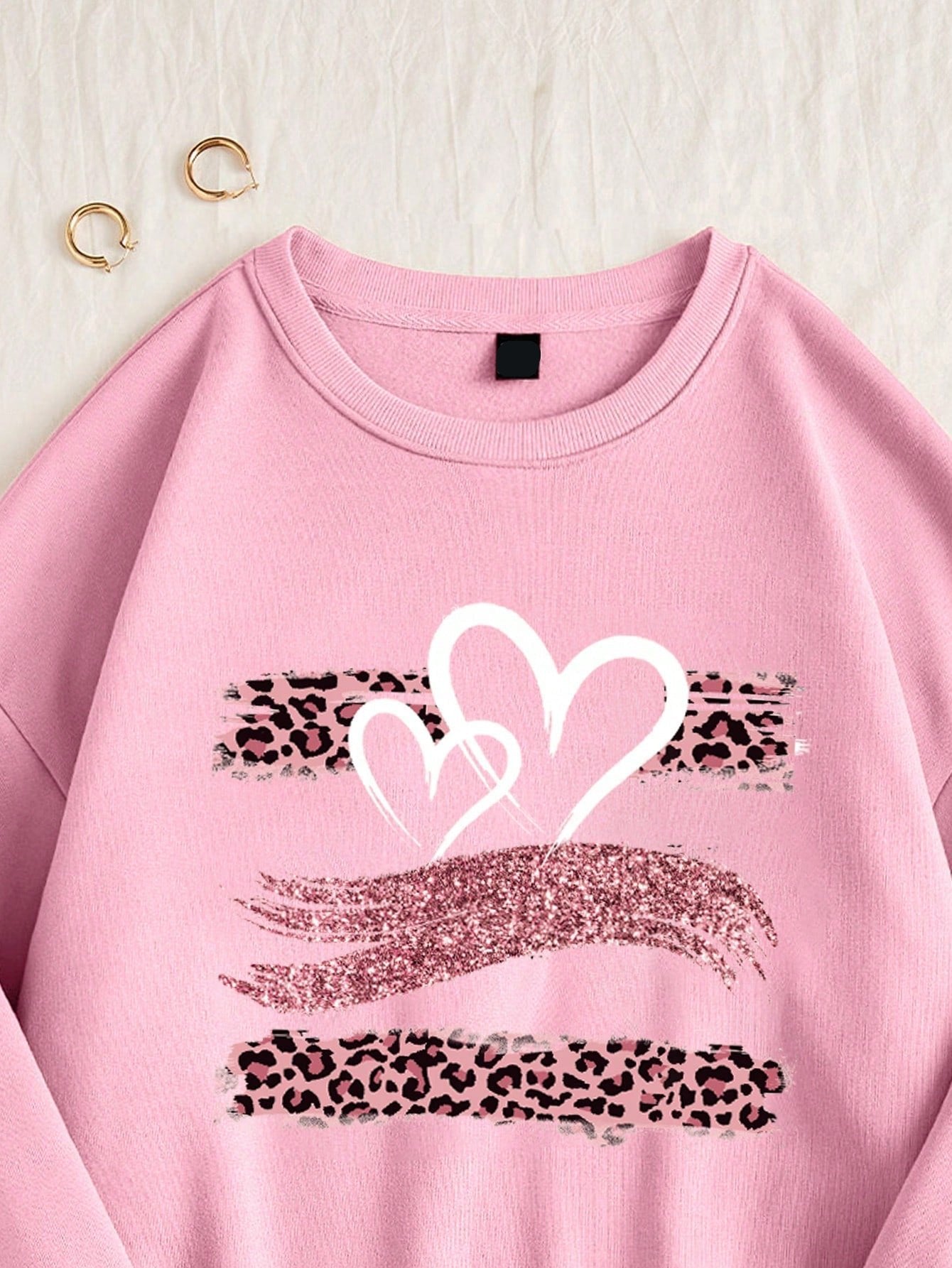 Cozy Chic: Heart & Leopard Print Sweatshirt for Effortless Autumn Style