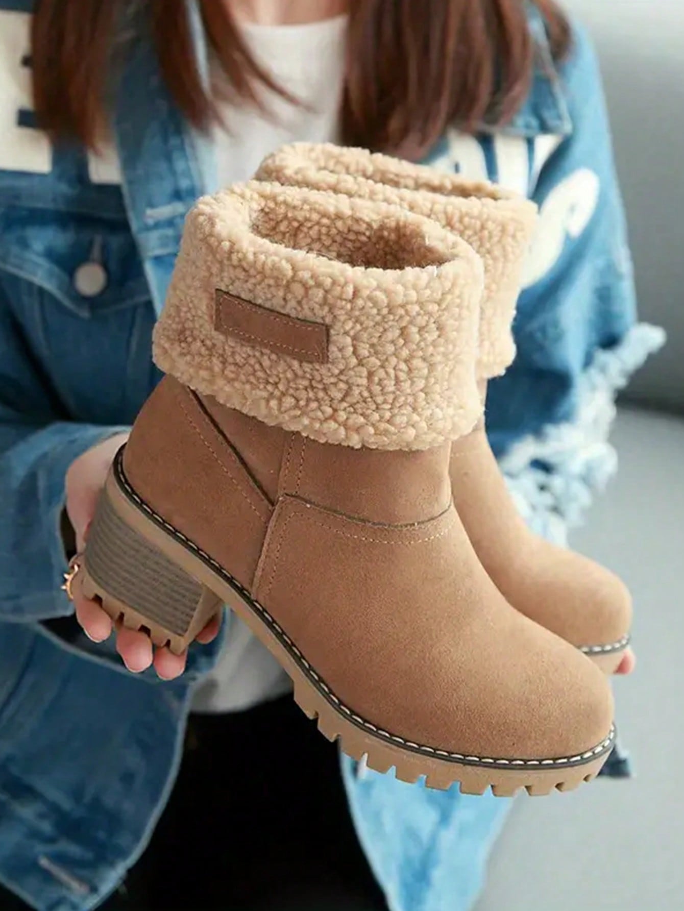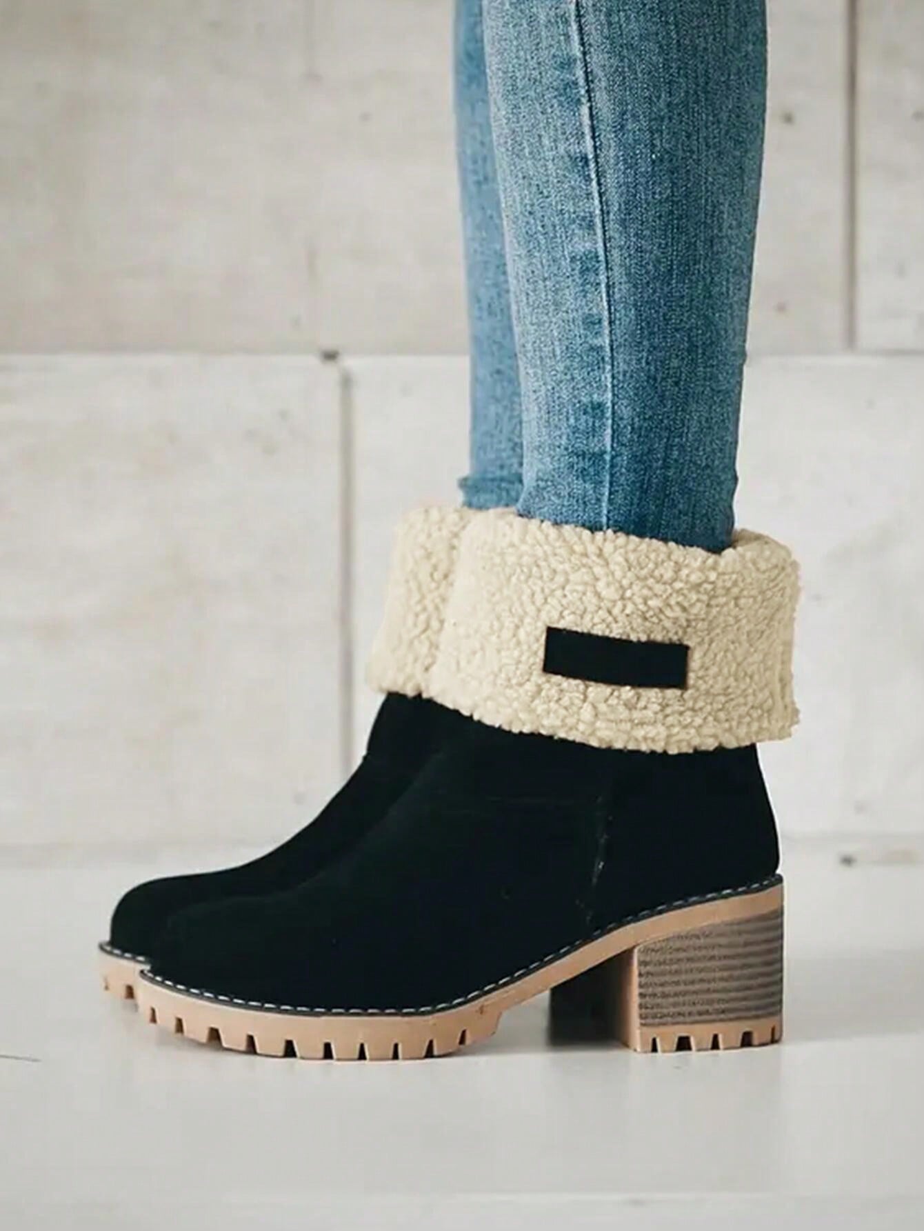 Introducing Cozy Chic, the ultimate snow boot for women. Featuring a 2-in-1 design with a mid-calf height, faux leather exterior, and chunky heel, these boots provide both fashion and function. Stay warm and stylish with the added bonus of a cozy fur lining.