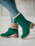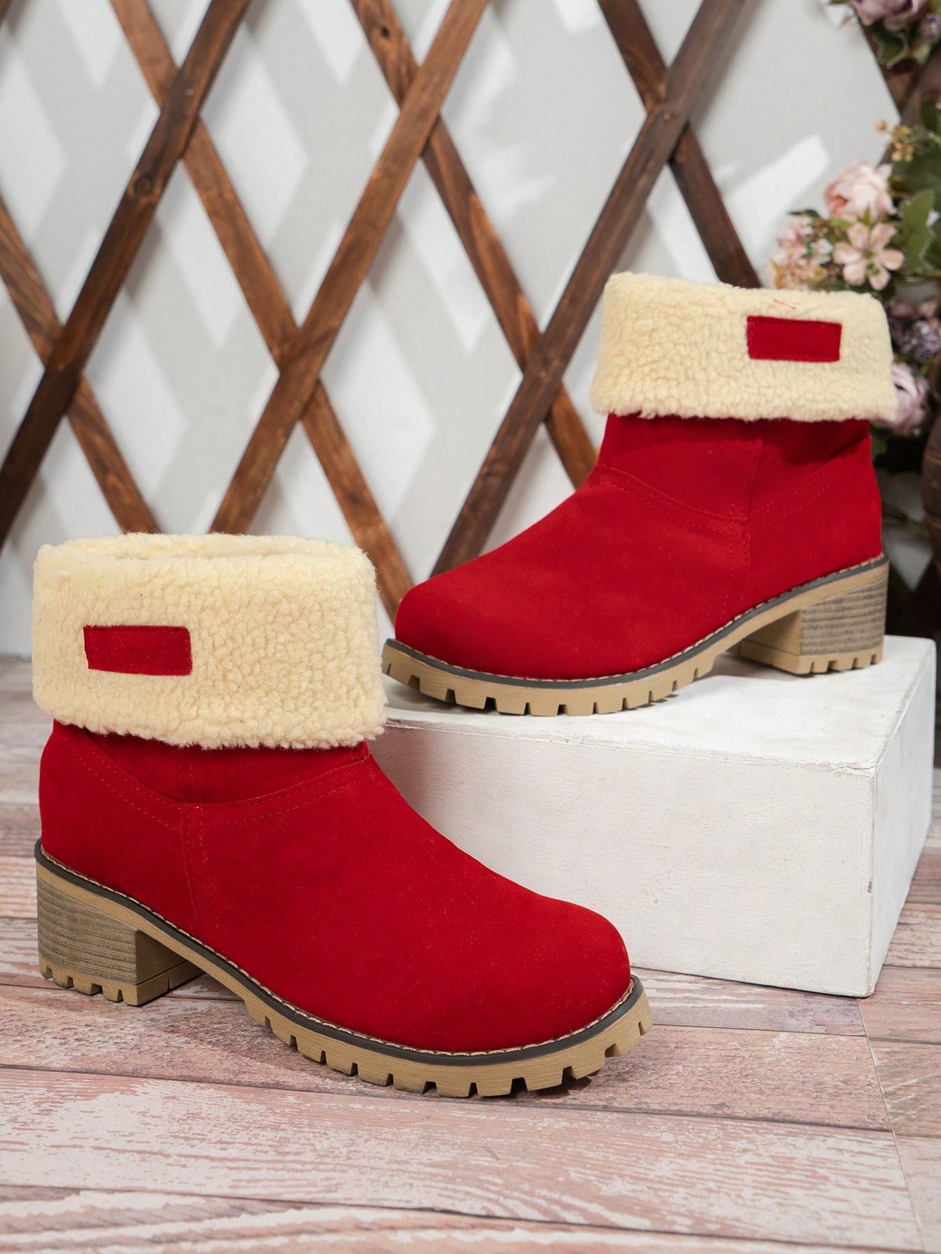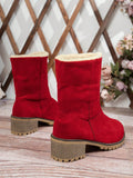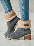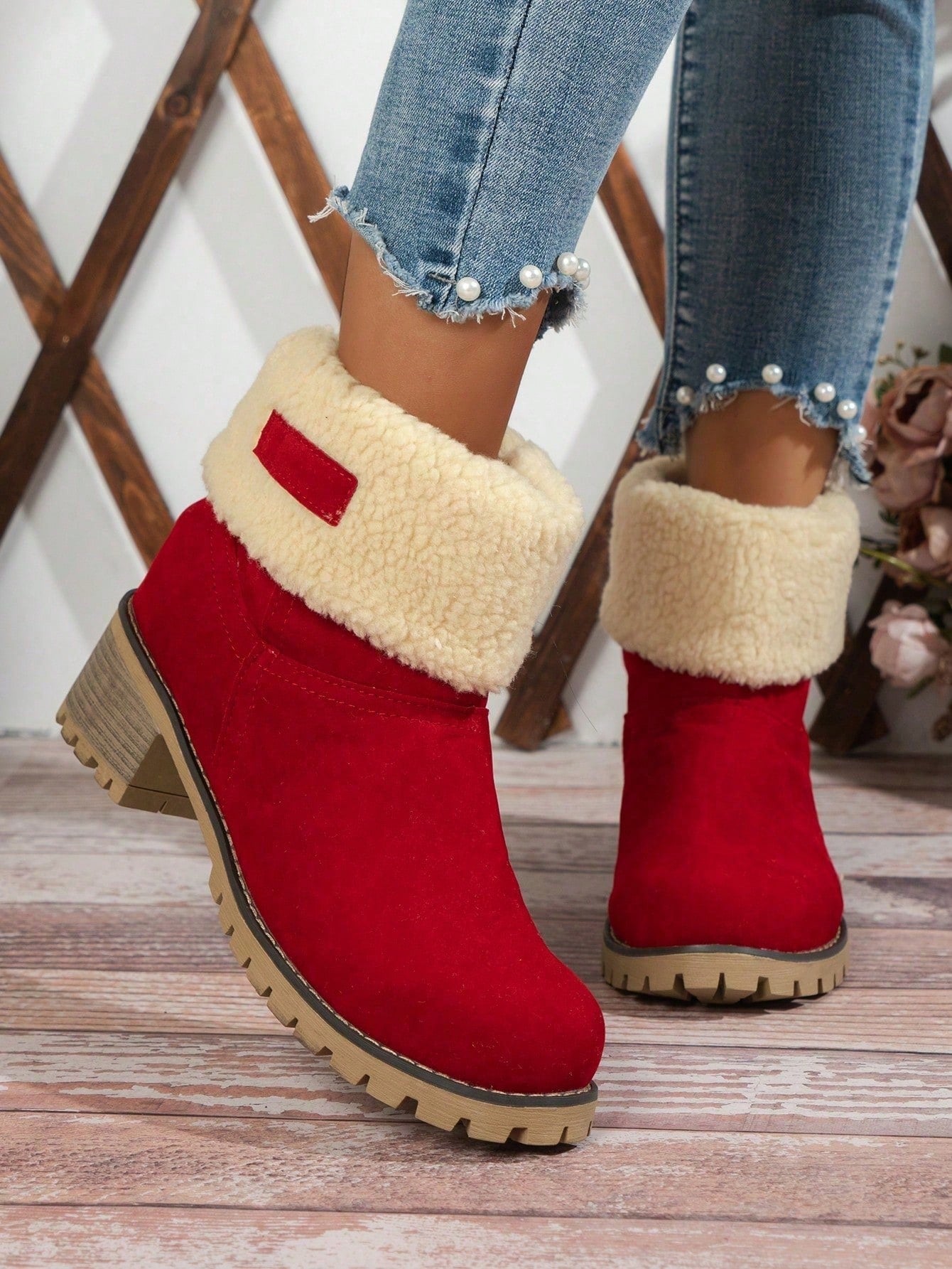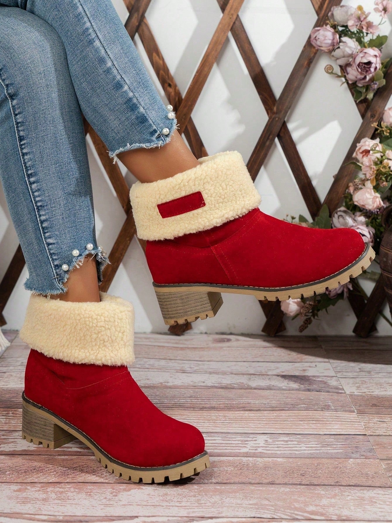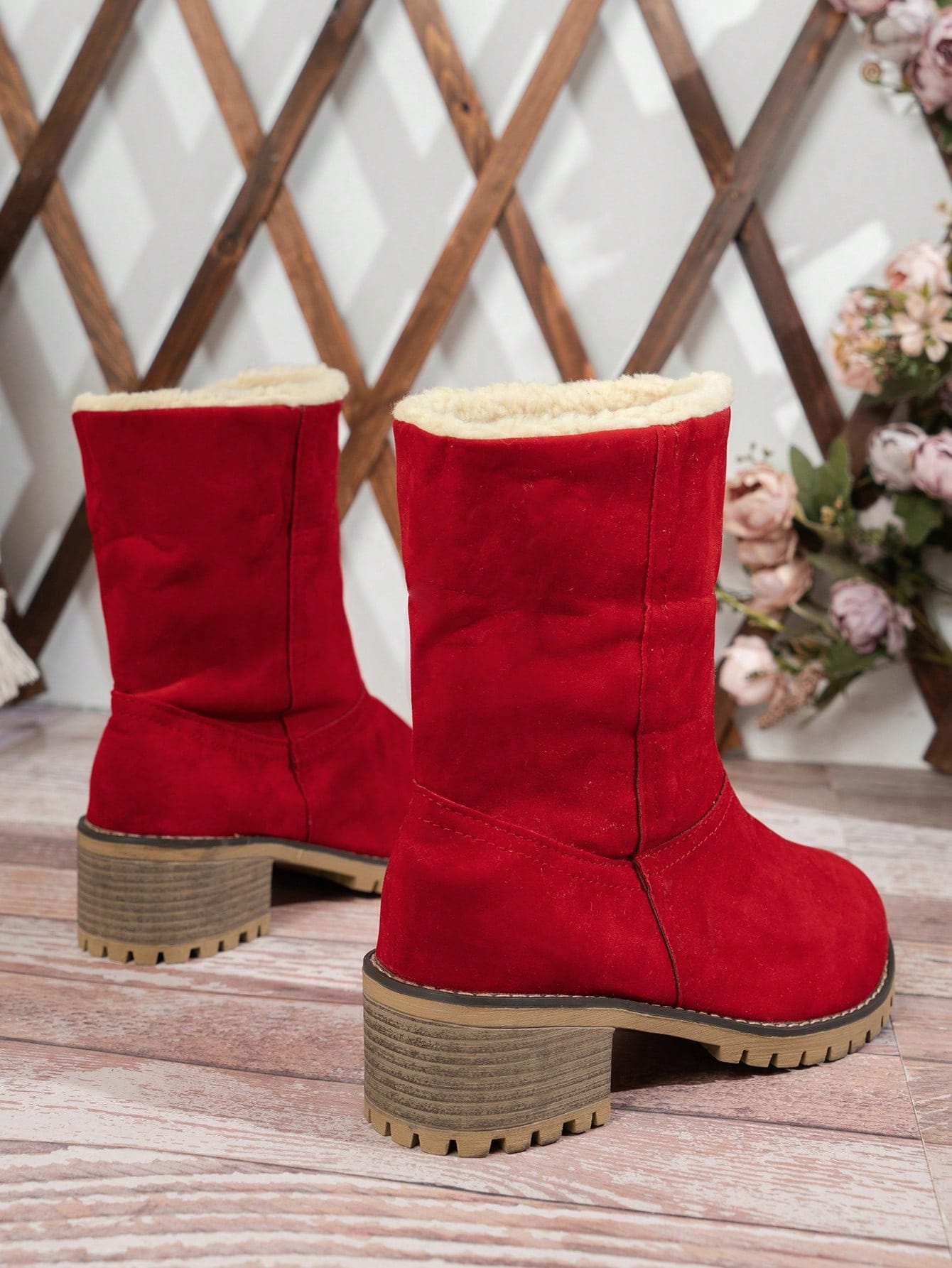Cozy Chic: Women's 2-in-1 Mid-Calf Faux Leather Snow Boots with Chunky Heel and Fur Lining