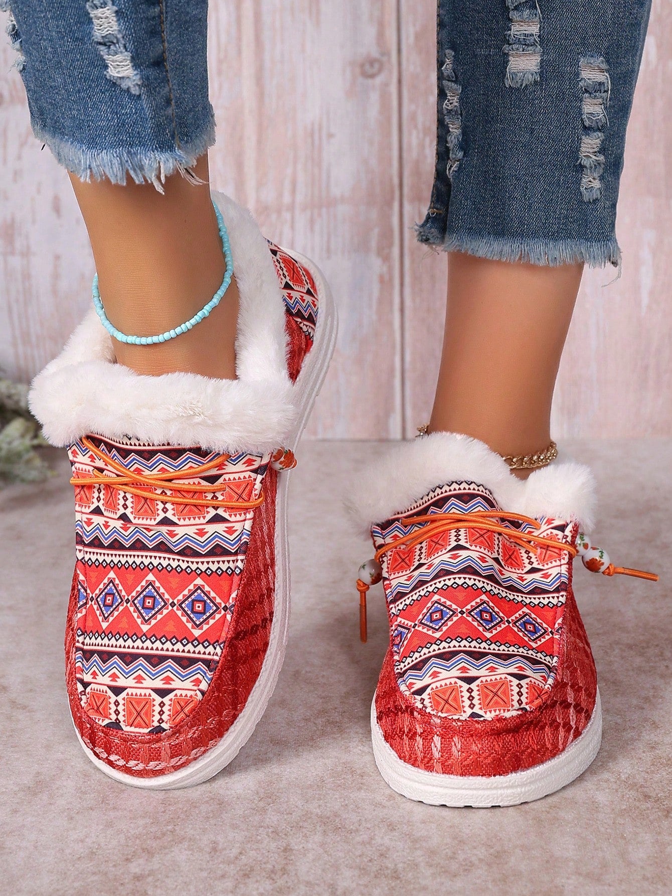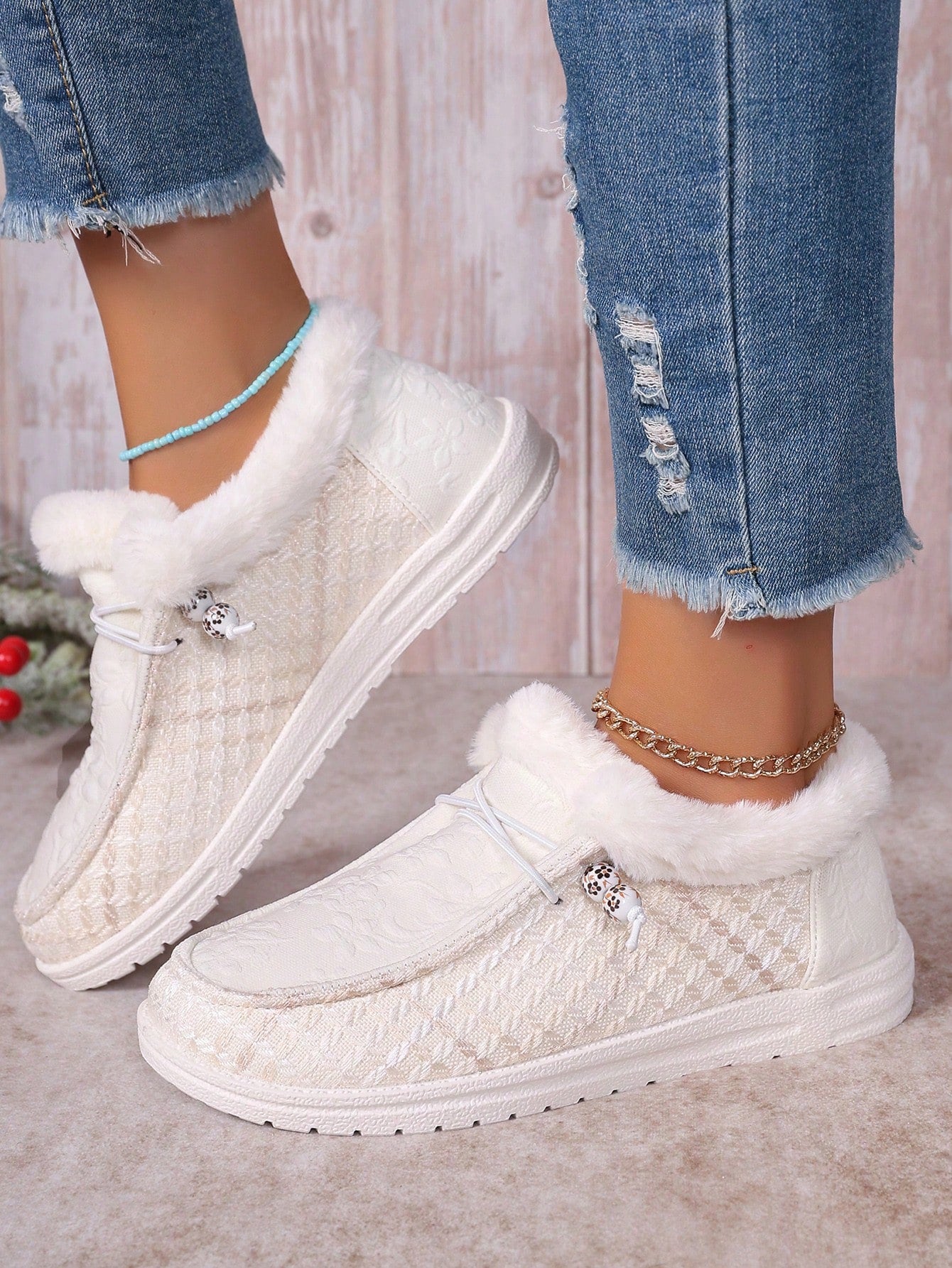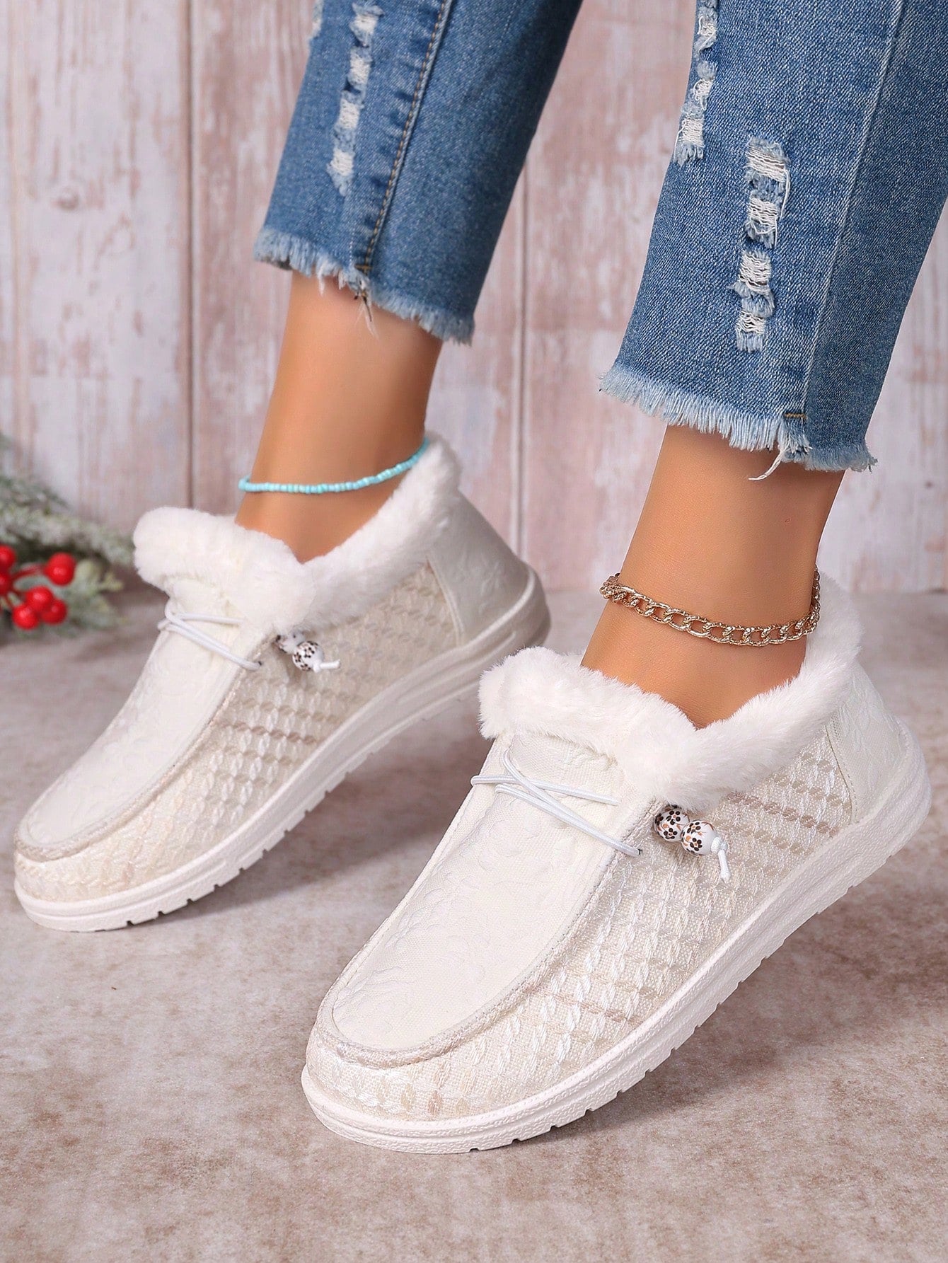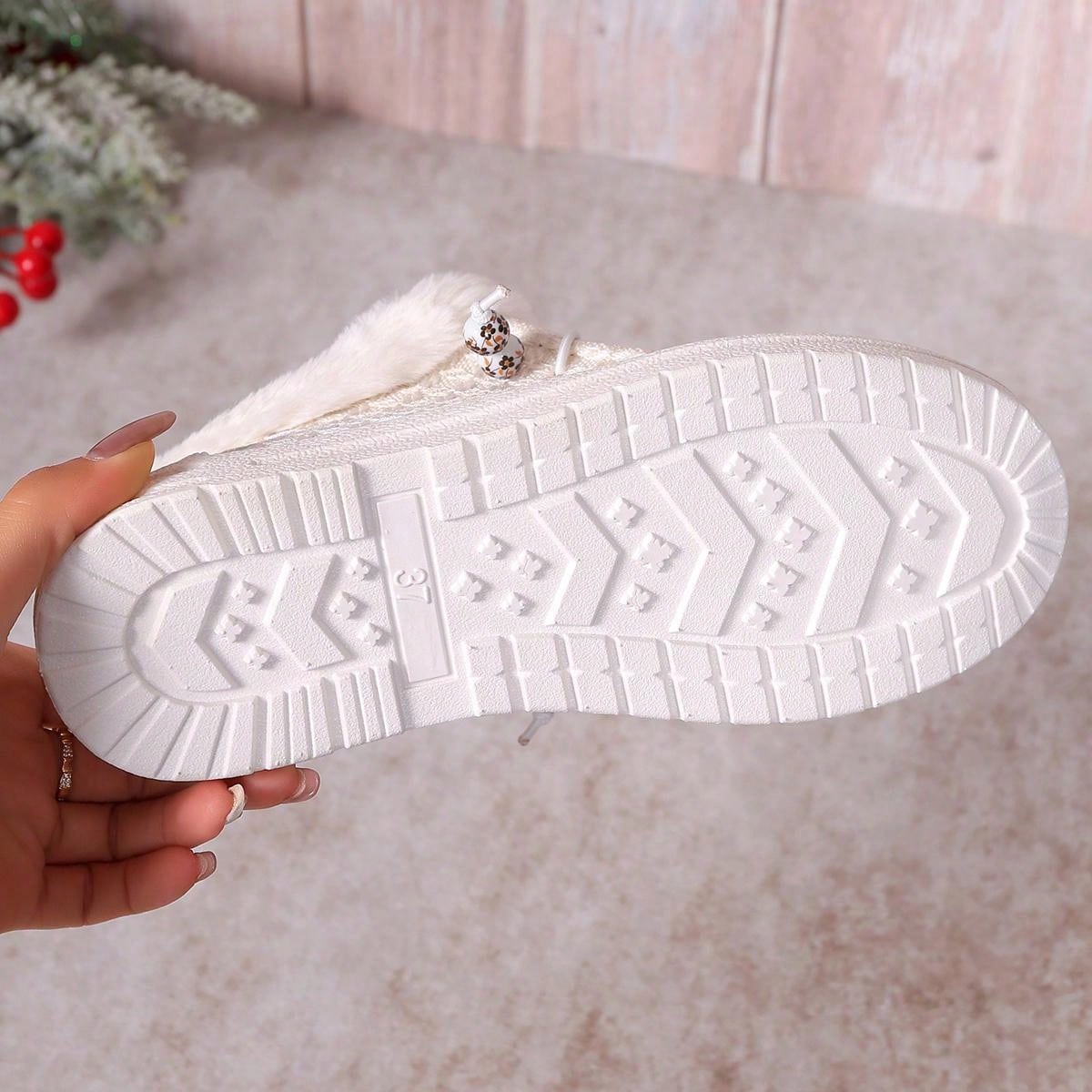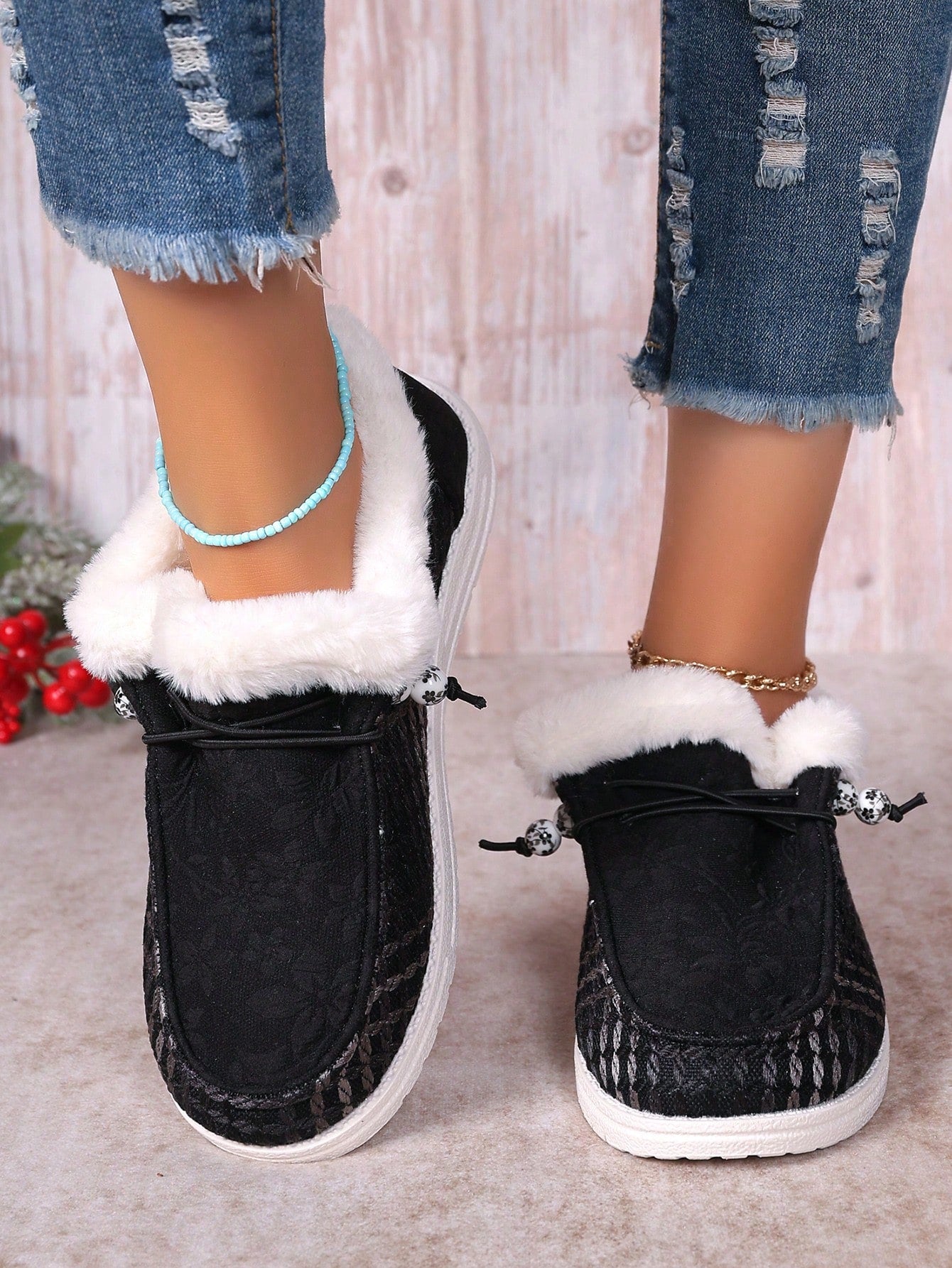 Cozy Chic: Women's Fleece-Lined Snow Boots with Fashion-Forward Beaded Fur Decor