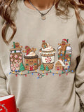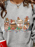 Cozy Christmas Cartoon Fleece Sweatshirt: Fun Holiday Drink Print