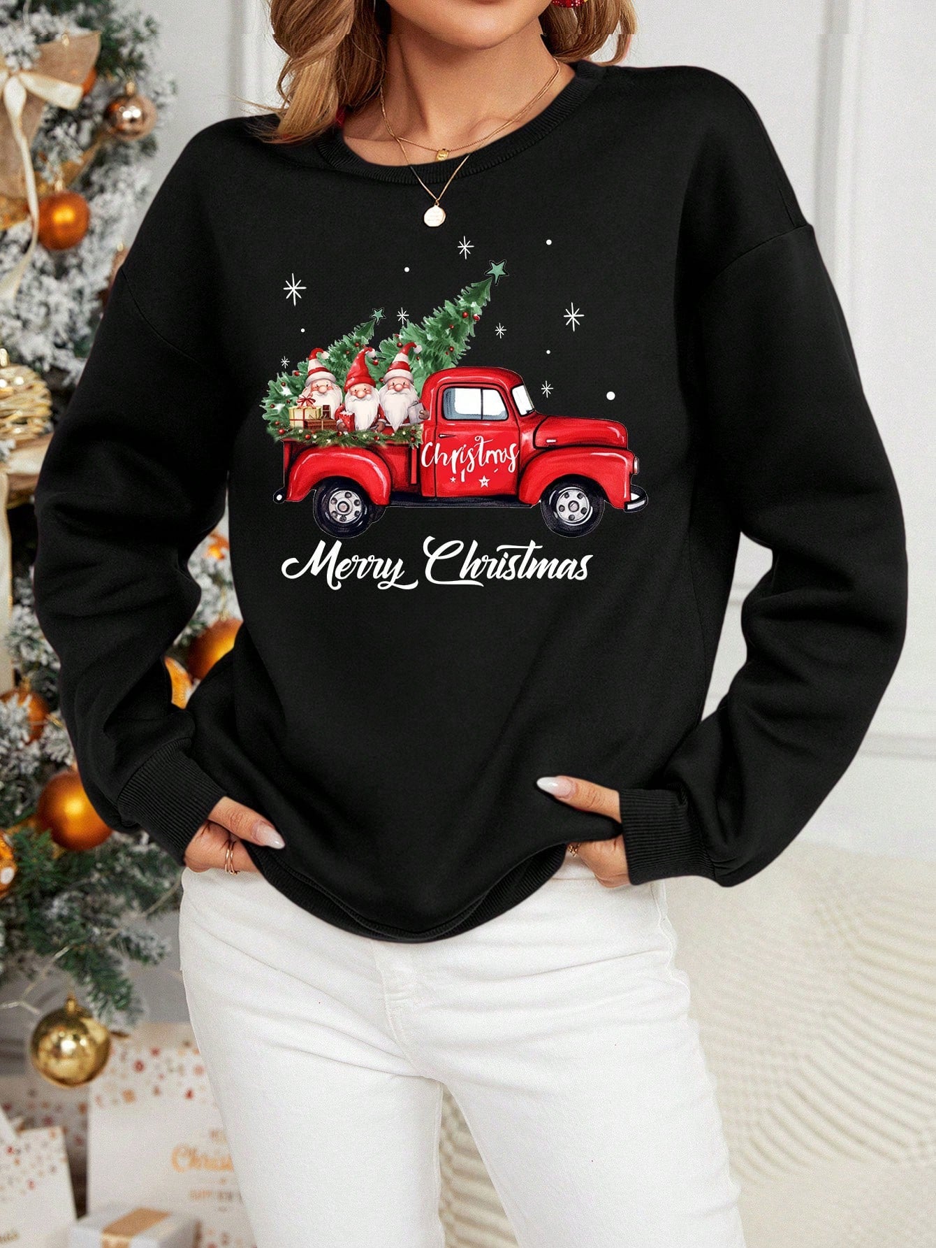 Cozy Christmas Cheer: Hand-Painted Oversized Sweatshirt with Festive Truck Design