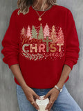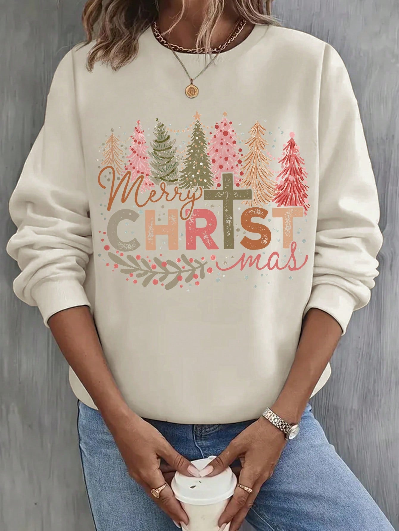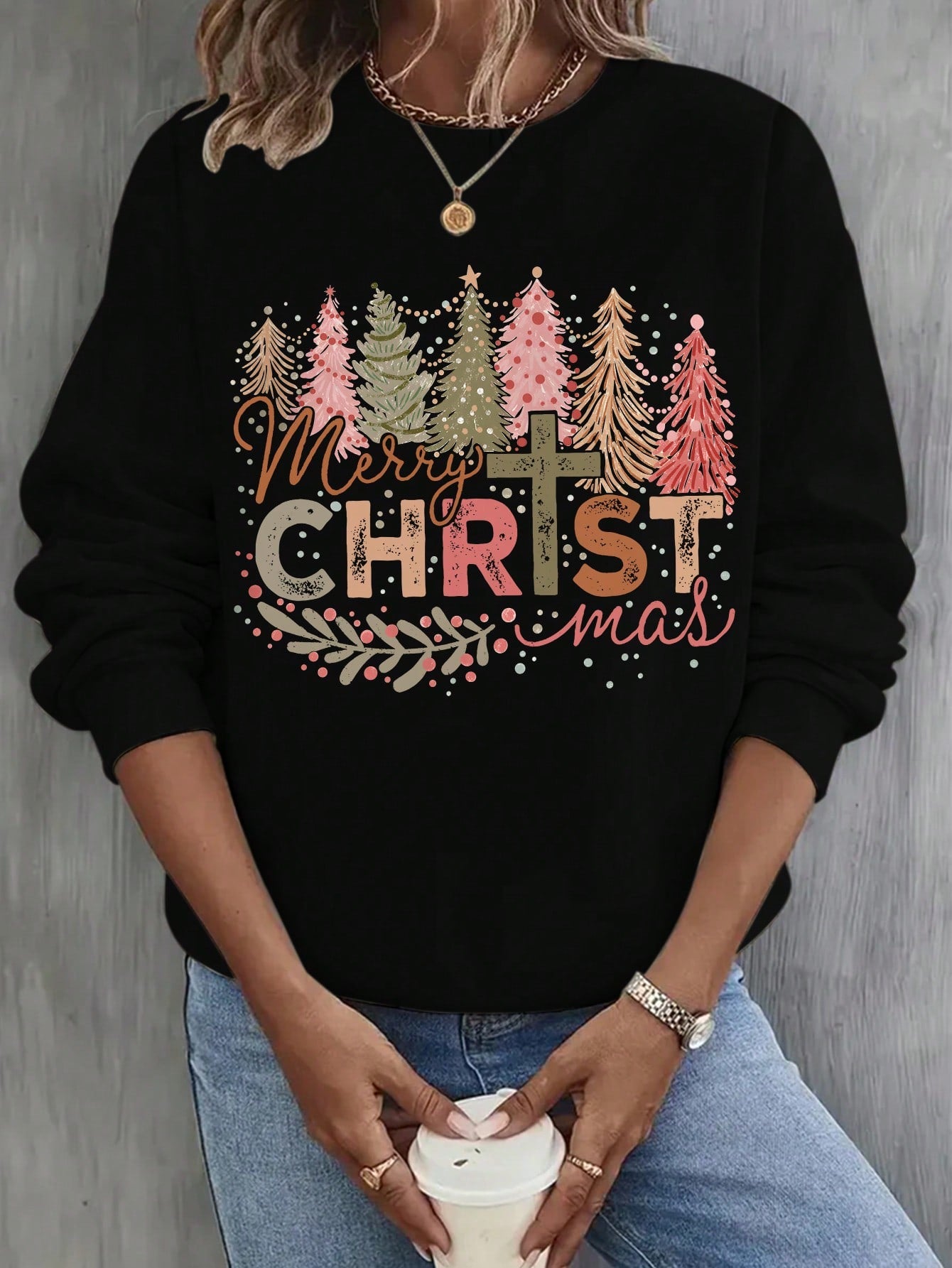 Cozy Christmas Cheer: Women's Trendy Tree Print Sweatshirt