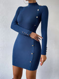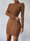 Cozy Elegance: Neck Button Detail Bodycon Sweater Dress