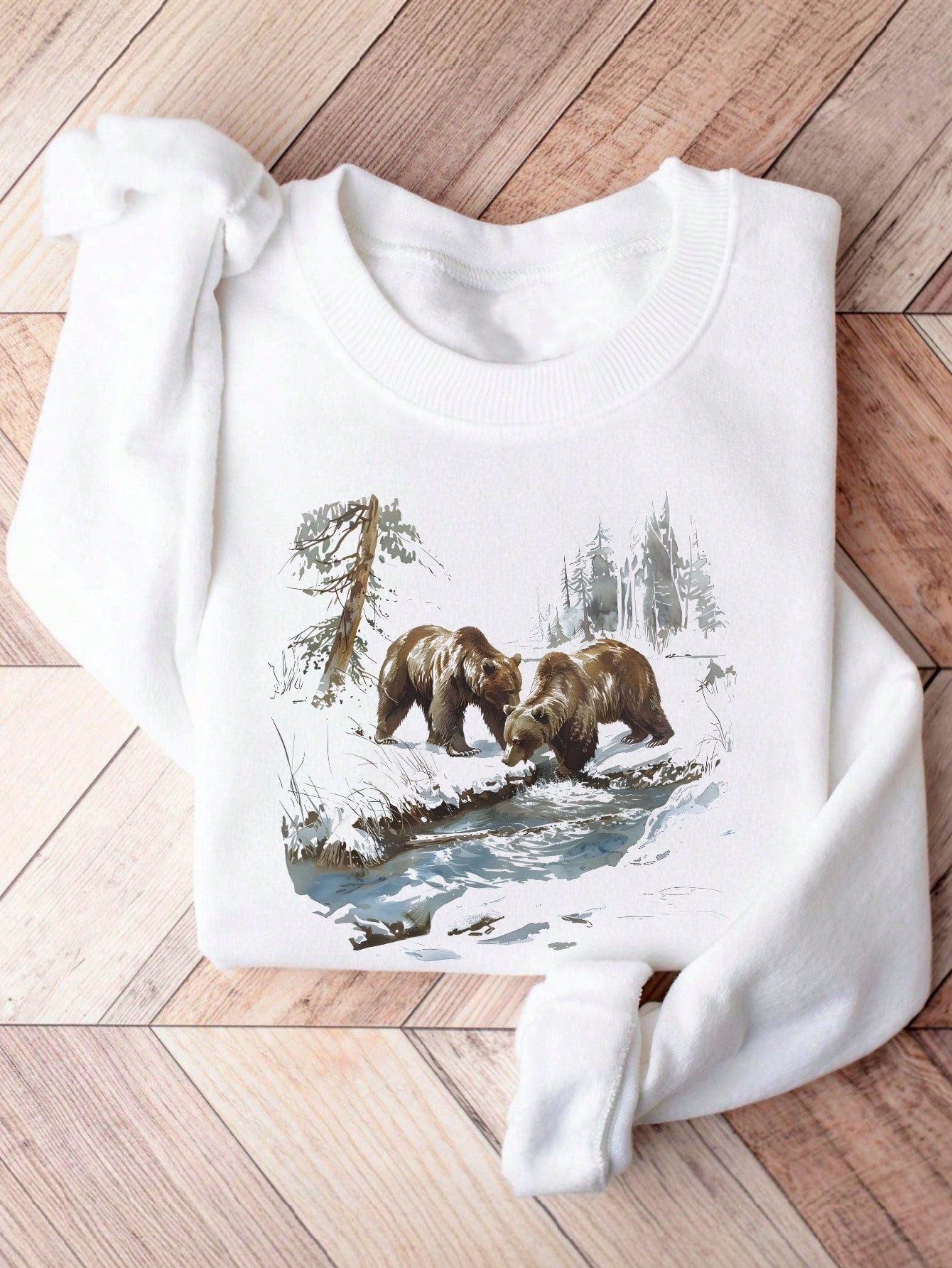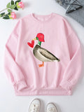 Cozy Heart Duck Graphic Sweatshirt - Loose Fit for Autumn & Winter