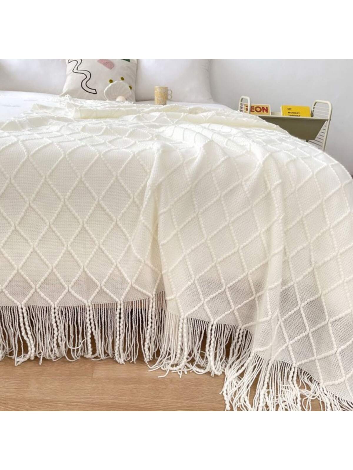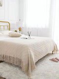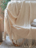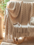Cozy Knitted Blanket with Tassels - Perfect for Office Naps, Summer Days, or Stylish Shawl