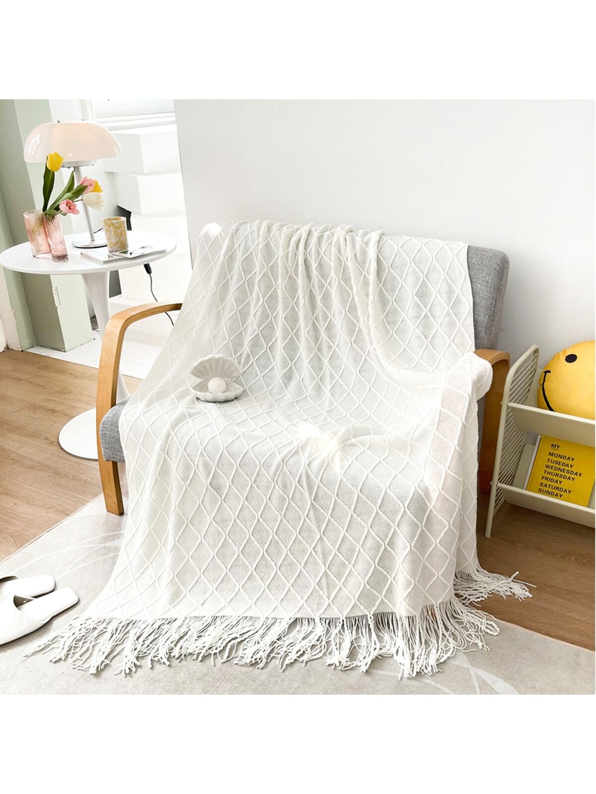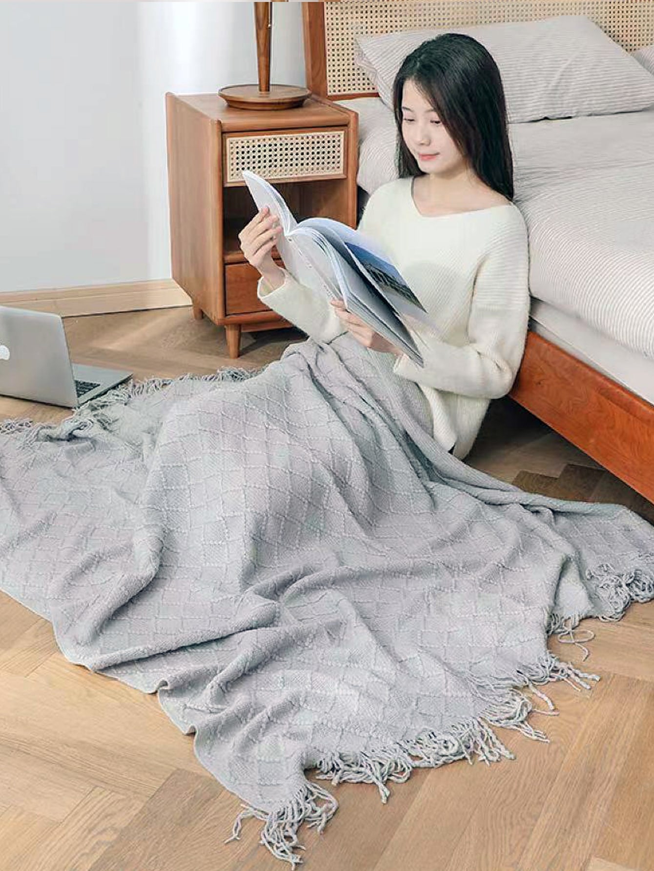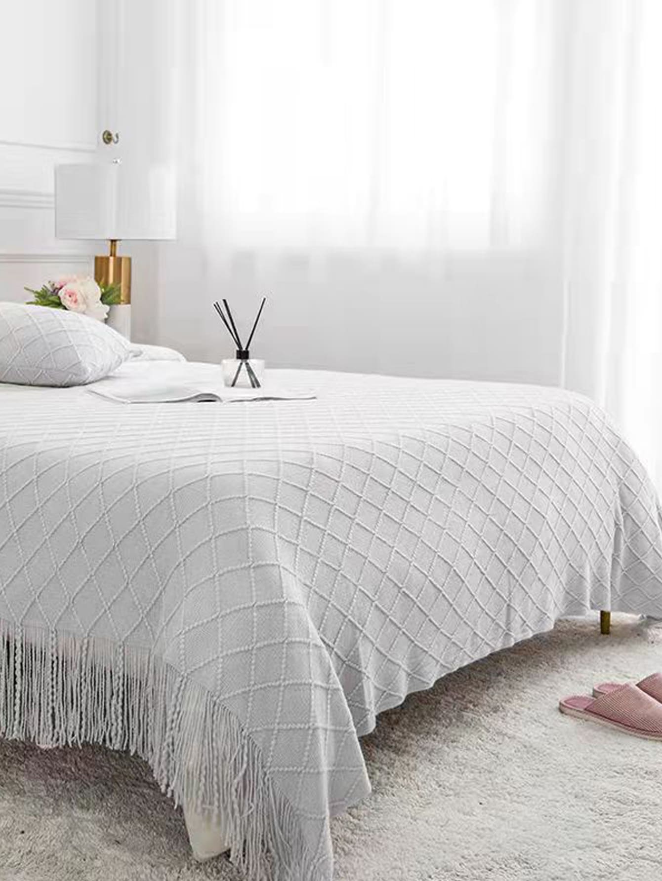 blanket with tassels is the perfect addition to your home or office space. Its soft texture and stylish design make it versatile for use as a blanket, office nap companion, or even a fashionable shawl. Stay warm and stylish with this must-have accessory."