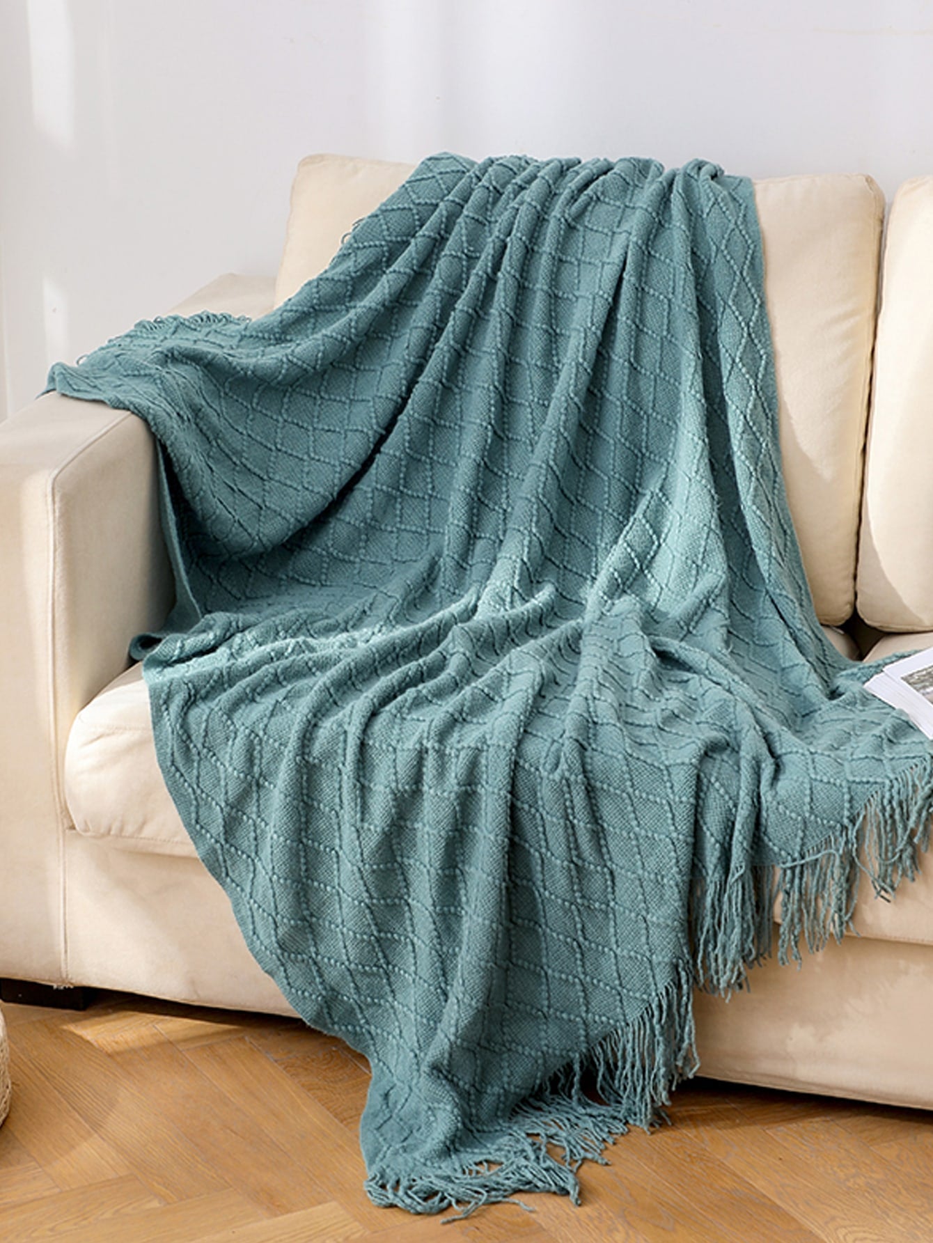 This cozy knitted blanket with tassels is the perfect addition to your home or office space. Its soft texture and stylish design make it versatile for use as a blanket, office nap companion, or even a fashionable shawl. Stay warm and stylish with this must-have accessory.