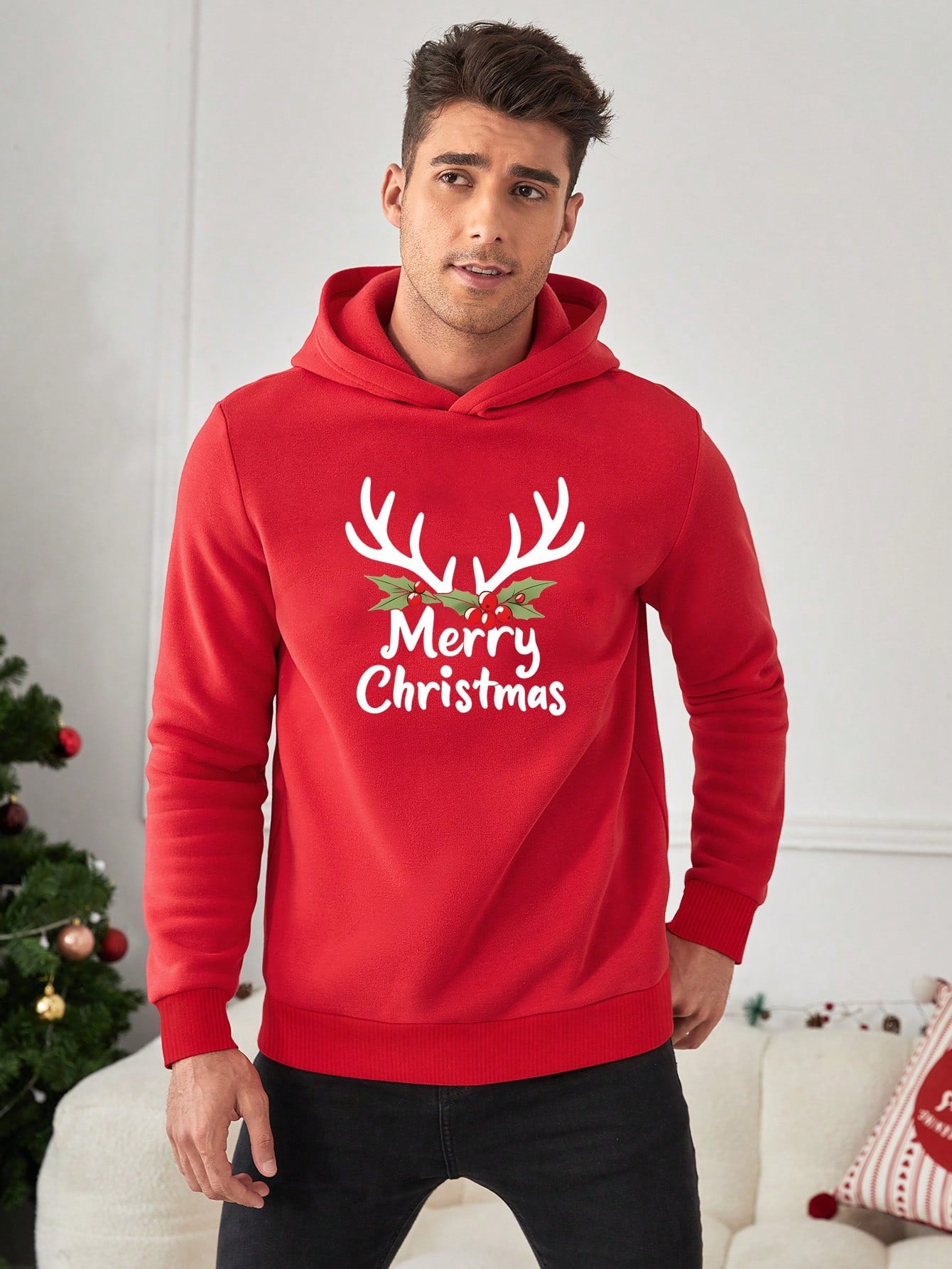 Cozy Men's Red Fleece-Lined Hoodie: Perfect for the Holidays