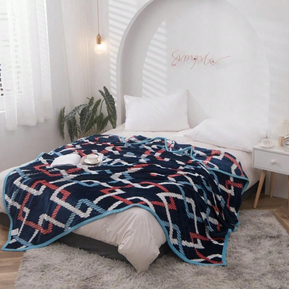 Cozy Multicolor Flannel Rectangular Blanket - Perfect for Bedroom and Home Use