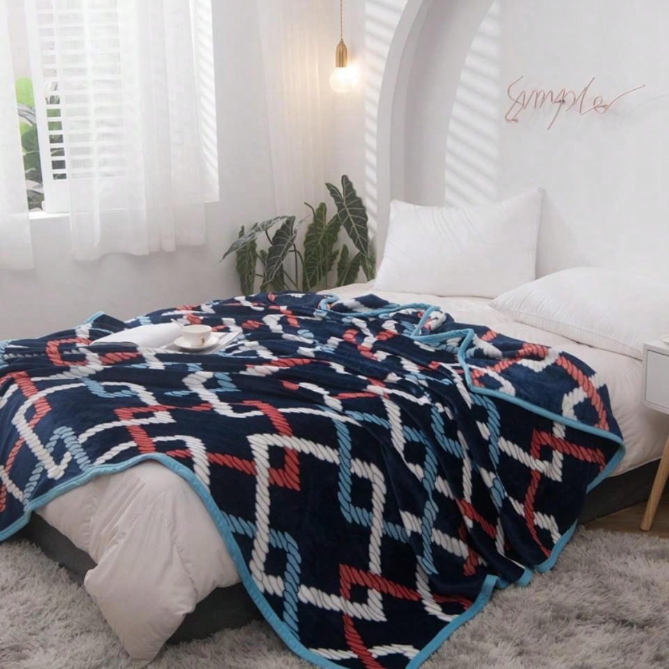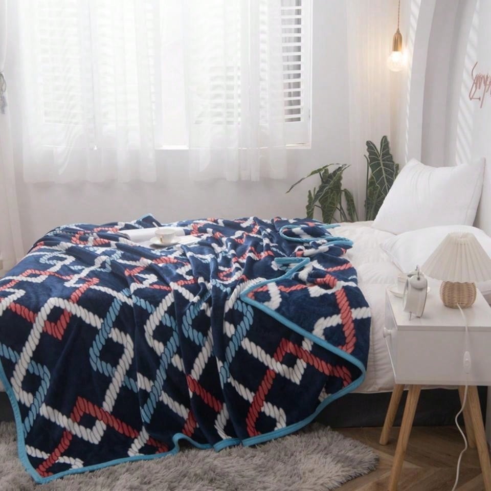 Cozy Multicolor Flannel Rectangular Blanket - Perfect for Bedroom and Home Use